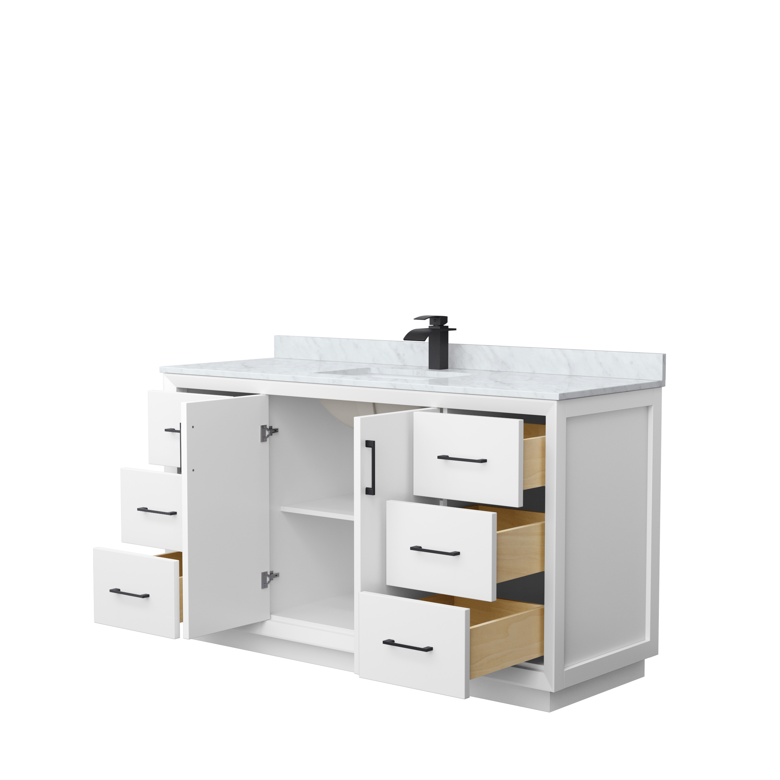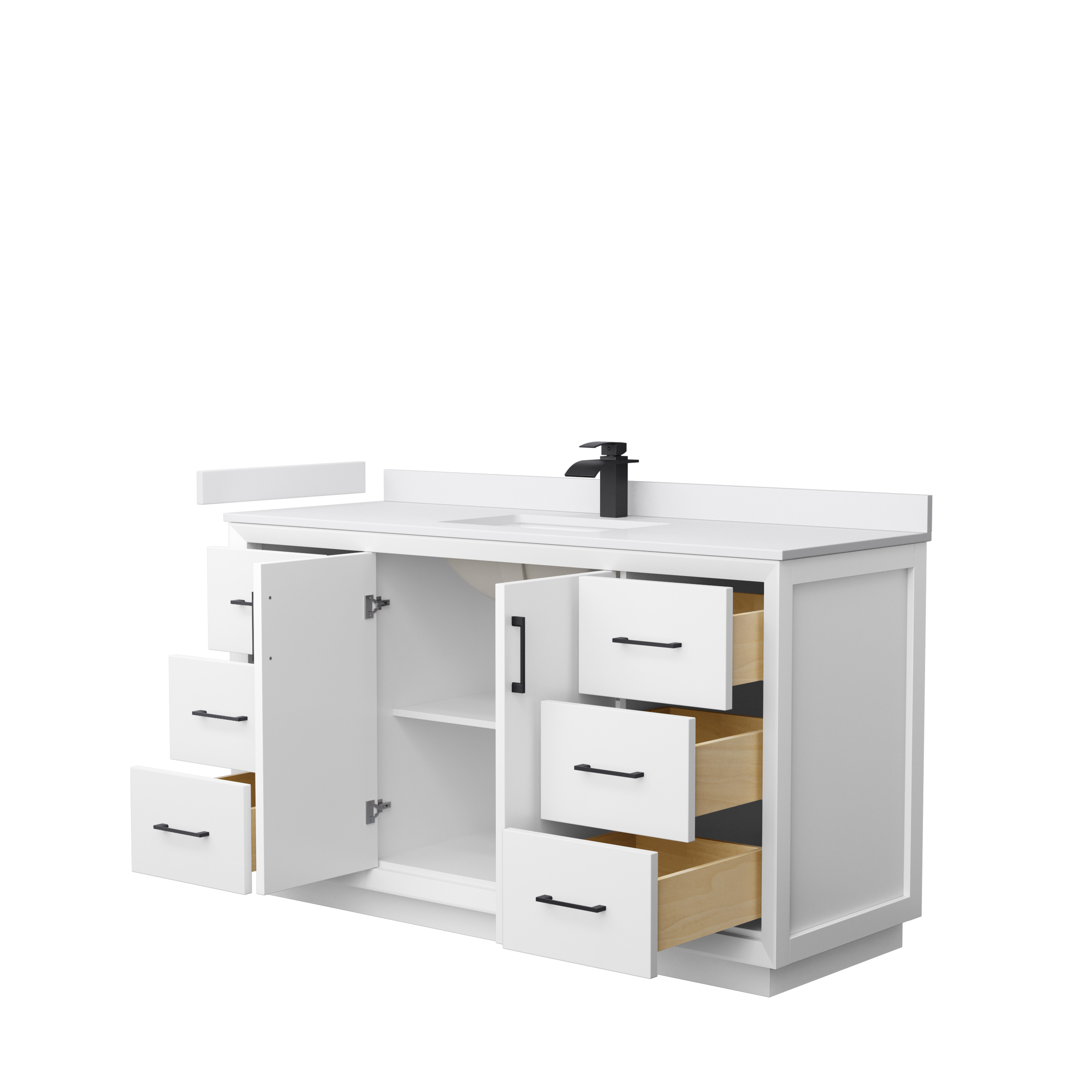 Perfect for a modern update, the Strada bathroom vanity features clean and understated contemporary lines that highlight the elegance and simplicity of this transitional vanity by Wyndham Collection. It comes well equipped with soft-close doors and drawers, ample storage space, 110V power and USB outlets, adjustable shelves, and a cutout back for easy access to plumbing and electrical.