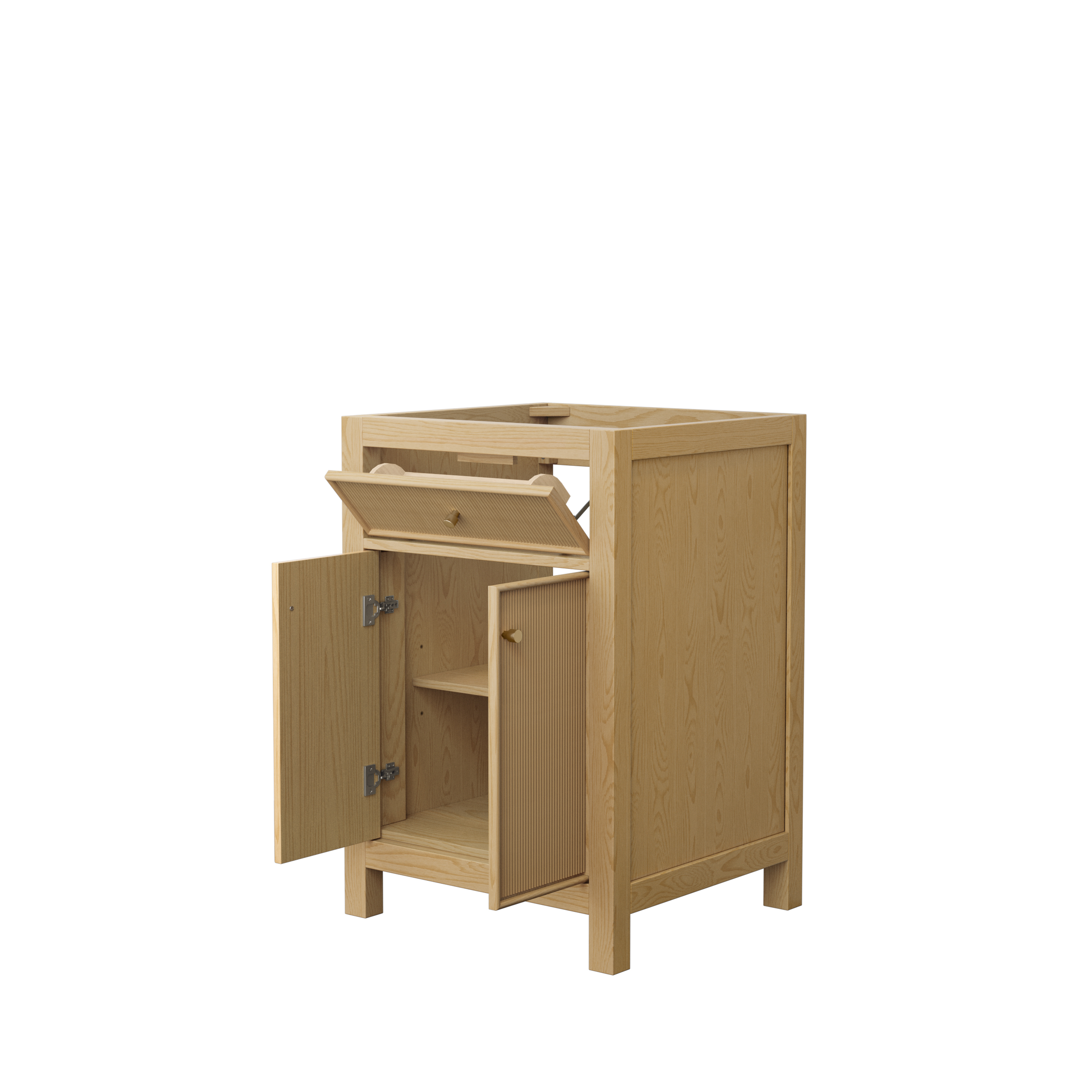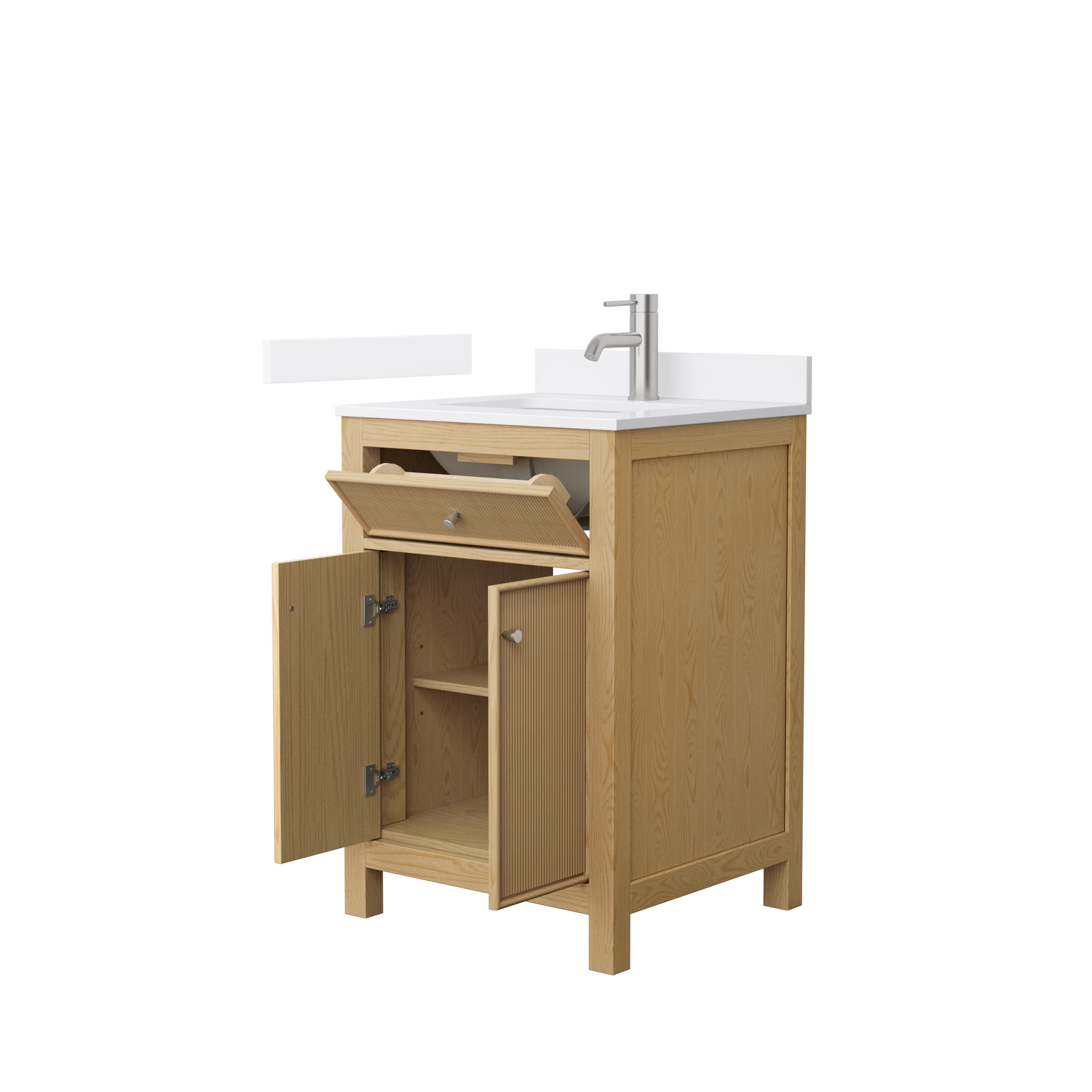 The Pendry wood veneered bathroom vanity collection beautifully blends natural country warmth with contemporary sophistication, creating a perfect centerpiece for any bathroom. Crafted from rich, natural wood veneers, it boasts a warm finish that highlights its organic grain and adds a cozy, inviting touch. Clean lines and minimalist hardware lend it a modern edge, while the soft-close drawers and doors ensure a quiet, seamless experience. Thoughtfully designed with ample counter and storage space to keep essentials neatly organized. This vanity is a harmonious mix of practicality and style, perfect for enhancing the character and functionality of your bathroom.