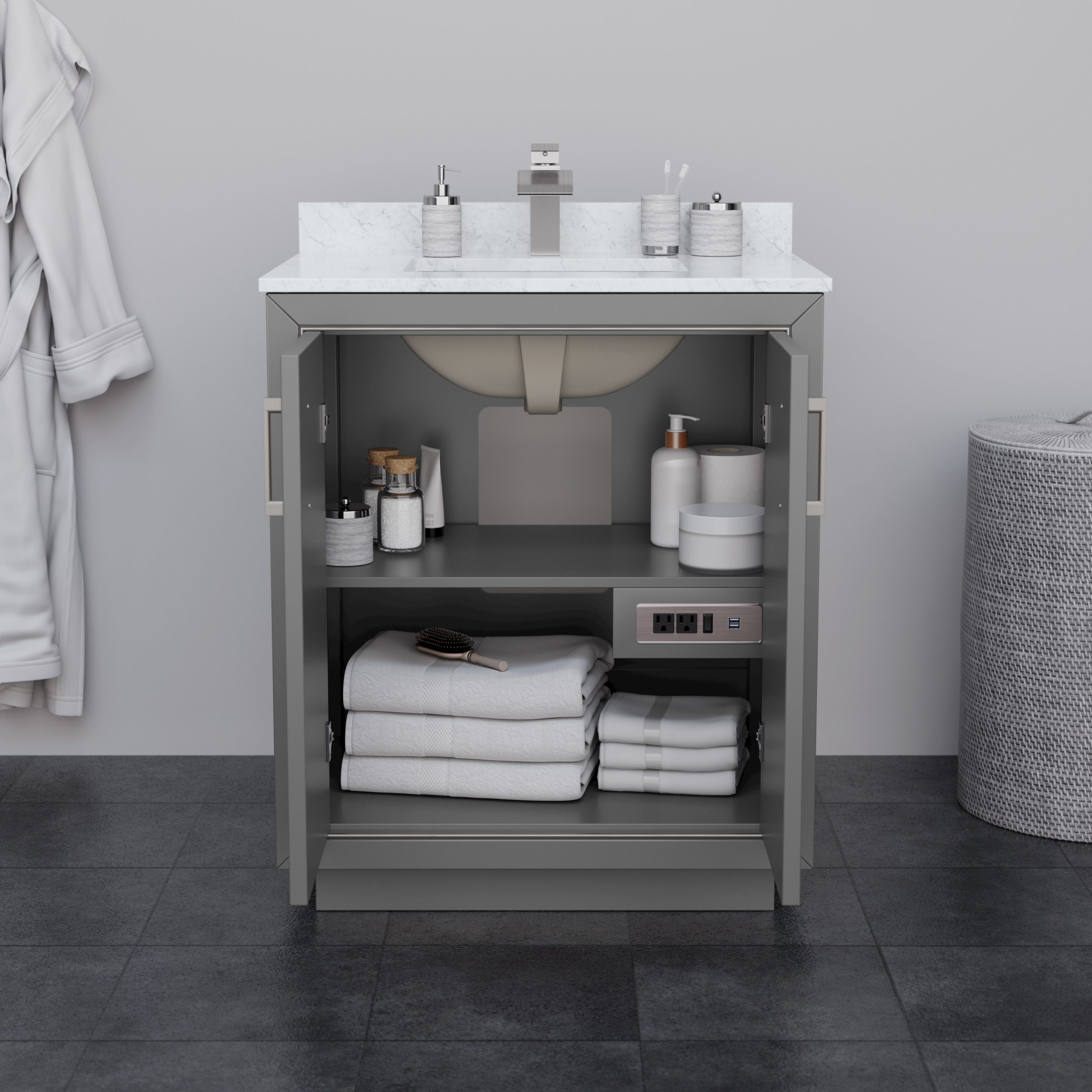 Ideal for the modern home, Icon vanities by Wyndham Collection are a cool, contemporary take on modern bathroom design, an exercise in elegance and style. Beautiful inset metal trim accents this stunning collection, which offers many choices and sizes of vanity and trim color to suit your taste. Interior details feature a power outlet with USB ports, adjustable shelves, and a cutout back for easy access to plumbing and electrical. Icon collection is available in multiple sizes and will work with a wide variety of different styles and decors.