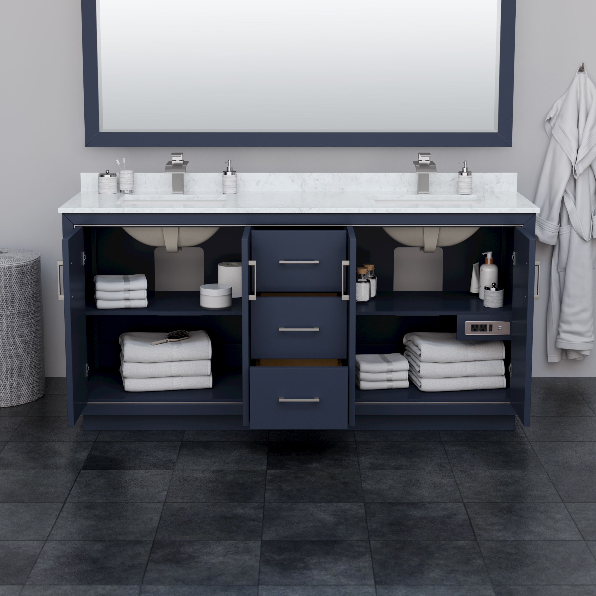 Ideal for the modern home, Icon vanities by Wyndham Collection are a cool, contemporary take on modern bathroom design, an exercise in elegance and style. Beautiful inset metal trim accents this stunning collection, which offers many choices and sizes of vanity and trim color to suit your taste. Interior details feature a power outlet with USB ports, adjustable shelves, and a cutout back for easy access to plumbing and electrical. Icon collection is available in multiple sizes and will work with a wide variety of different styles and decors.