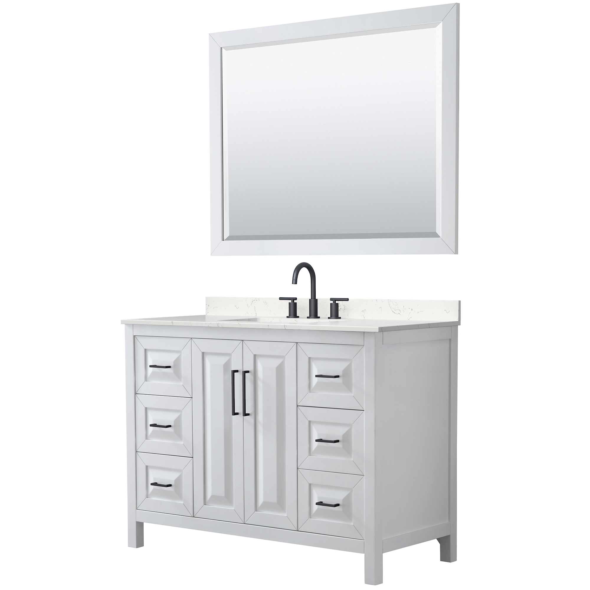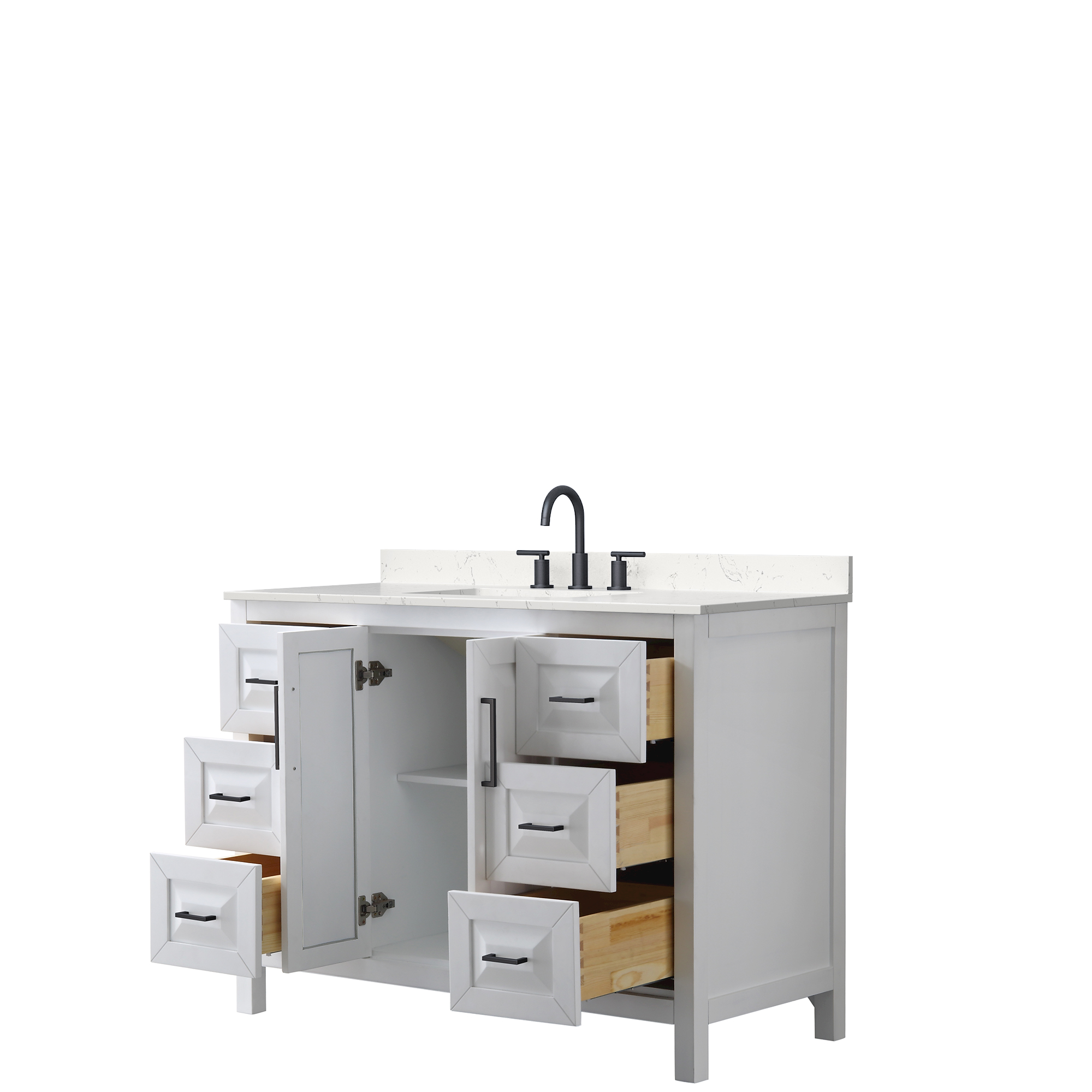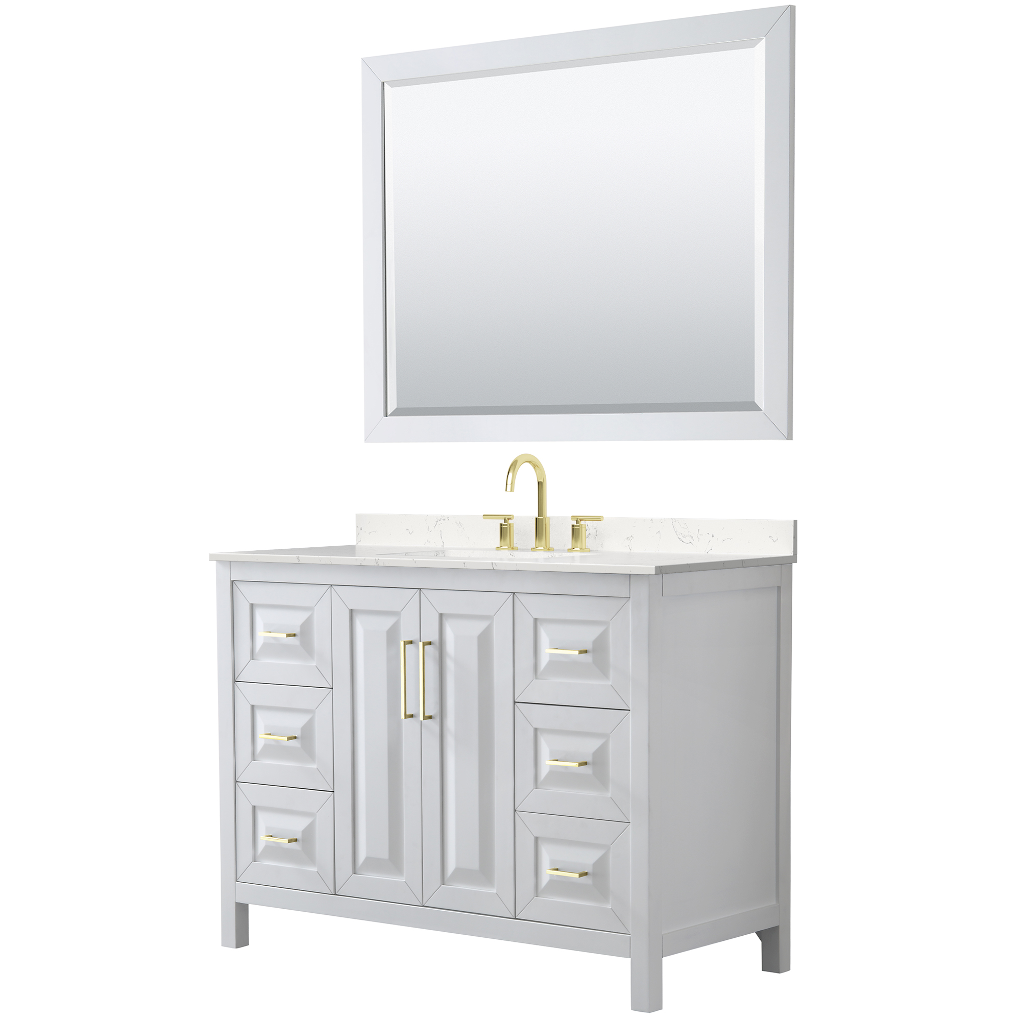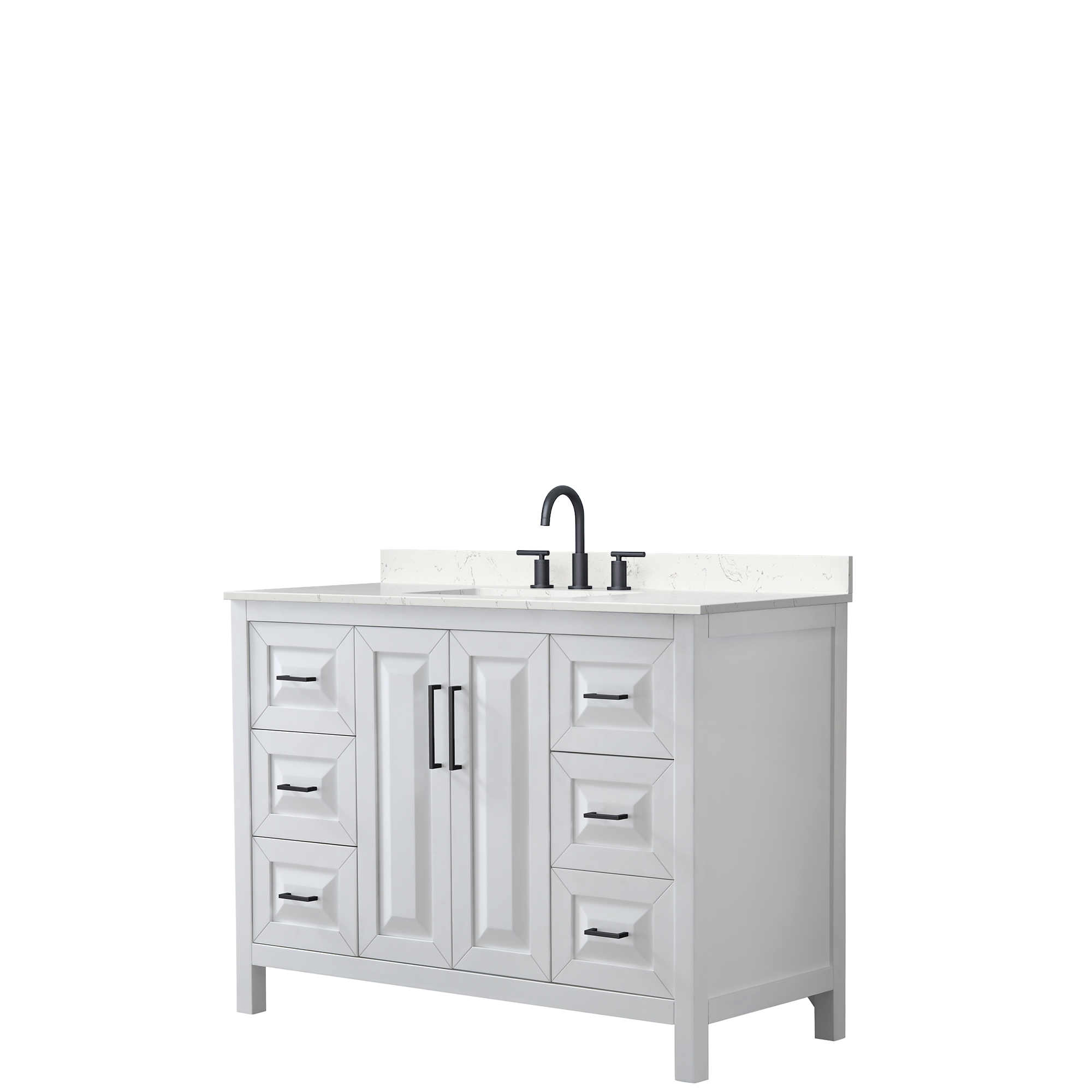 The beautiful Daria collection vanities stand out in any bathroom with strong, clean lines, raised panels and elegant counters with square sinks. There's plenty of cabinet space, the fully extending drawers are dovetail construction, and matte black, polished chrome, or brushed gold finish detailing completes the look. Daria vanities deftly combine the function of today with a nod to the elegance of the past. It's the new modern - classic styling with a contemporary twist.