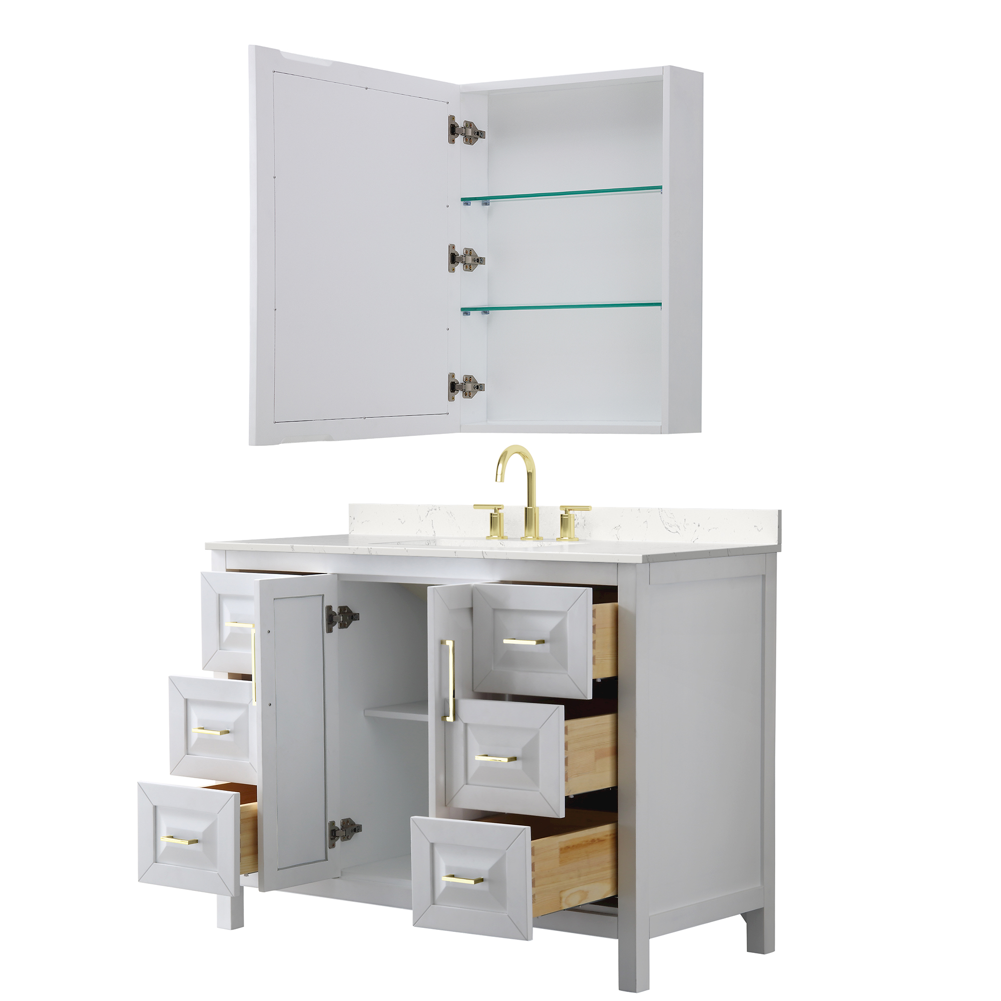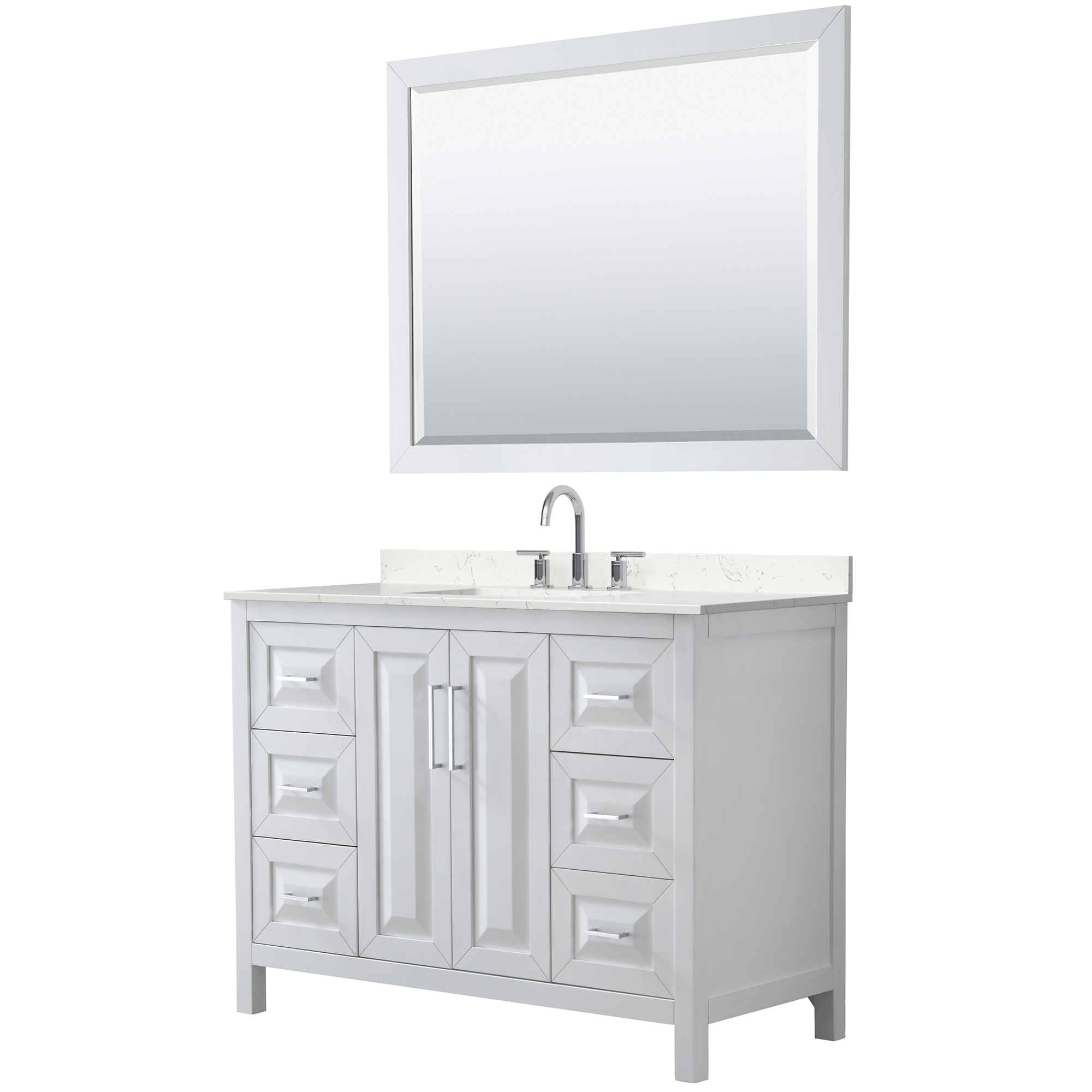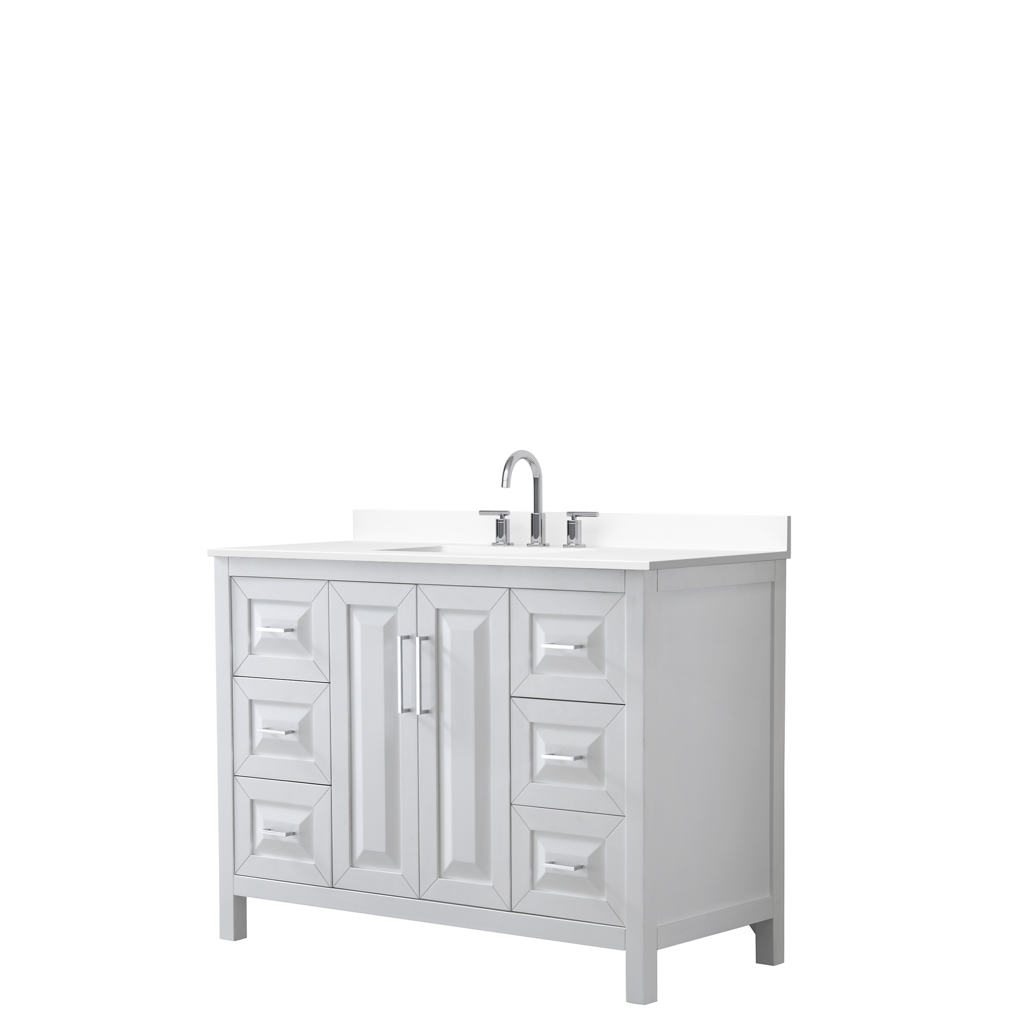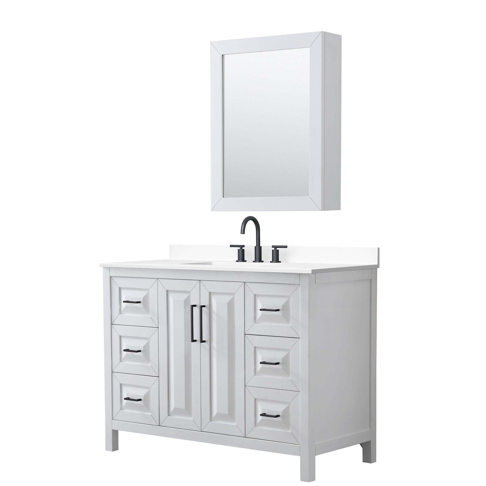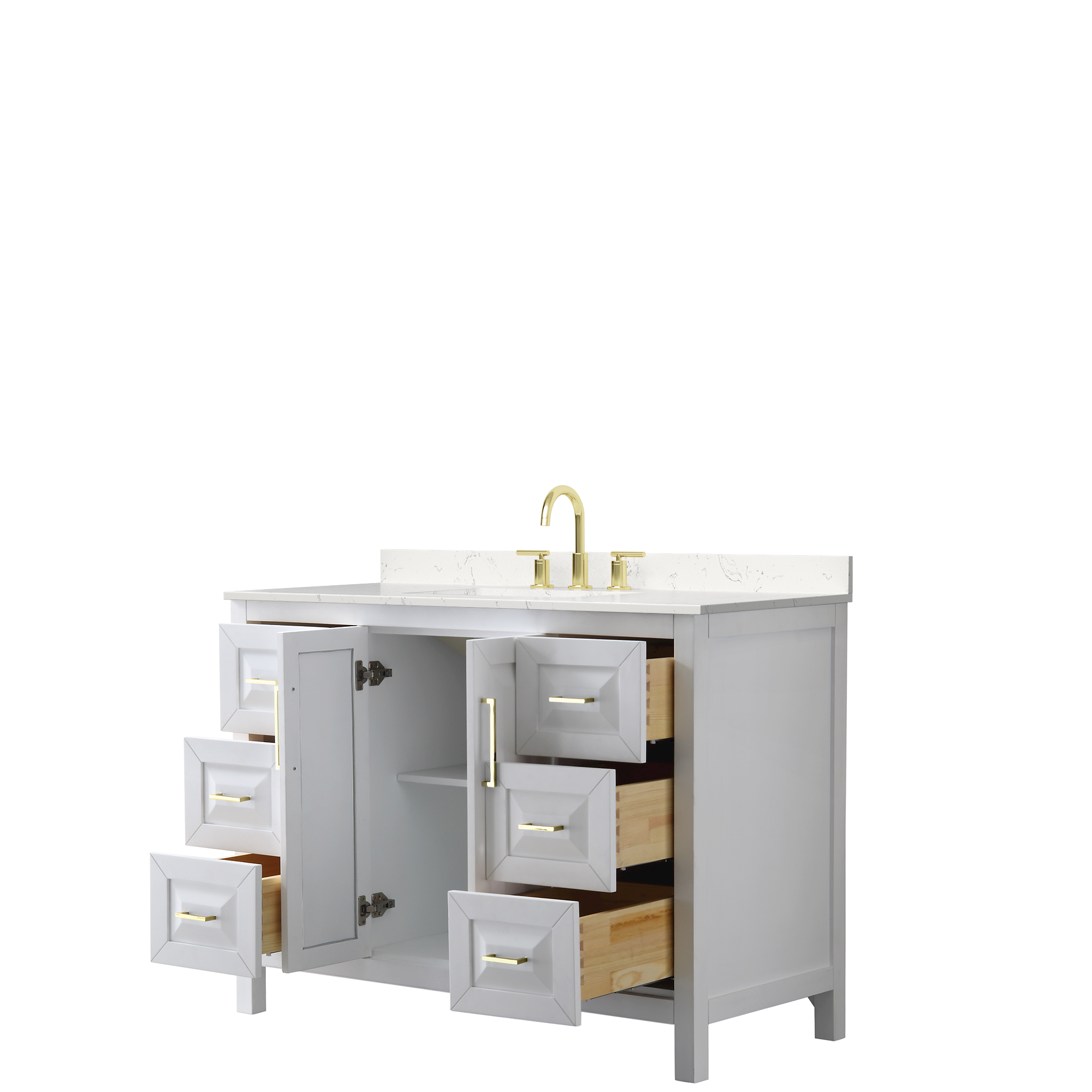 The beautiful Daria collection vanities stand out in any bathroom with strong, clean lines, raised panels and elegant counters with square sinks. There's plenty of cabinet space, the fully extending drawers are dovetail construction, and matte black, polished chrome, or brushed gold finish detailing completes the look. Daria vanities deftly combine the function of today with a nod to the elegance of the past. It's the new modern - classic styling with a contemporary twist.