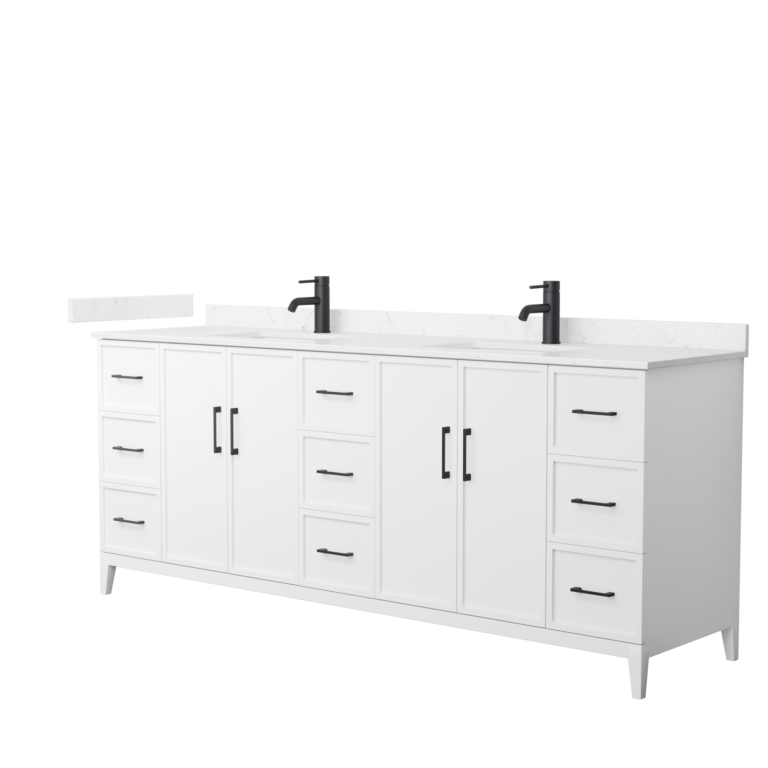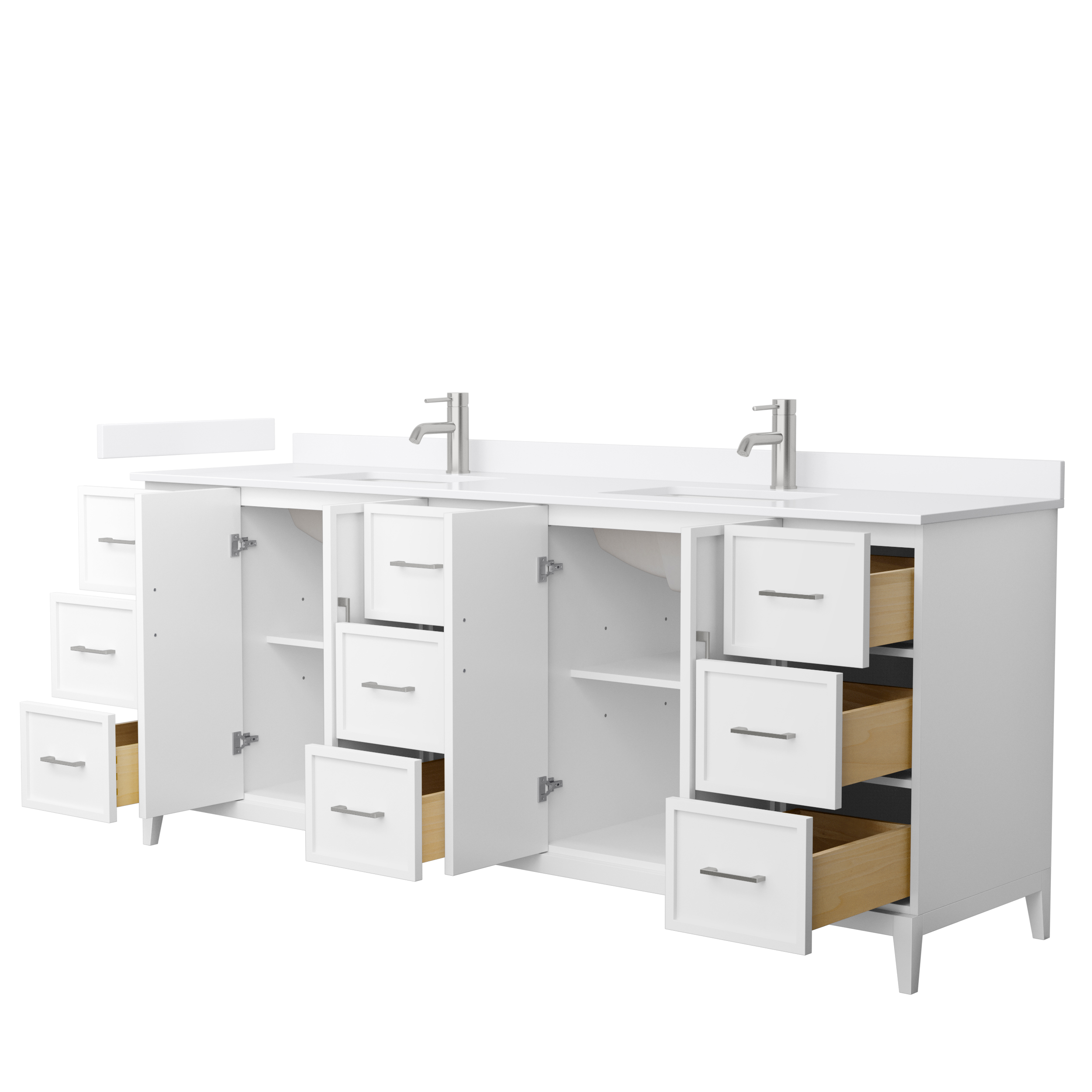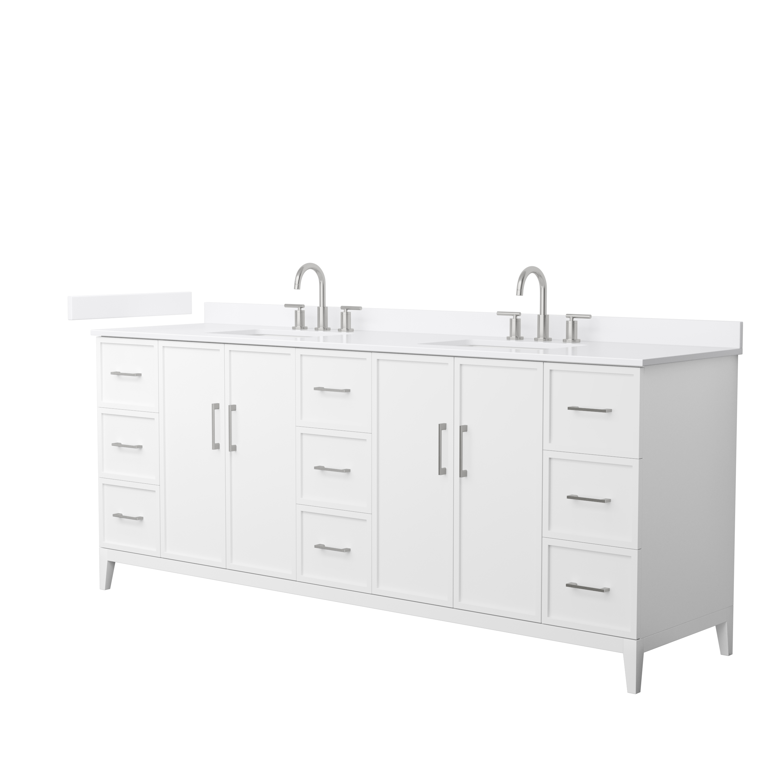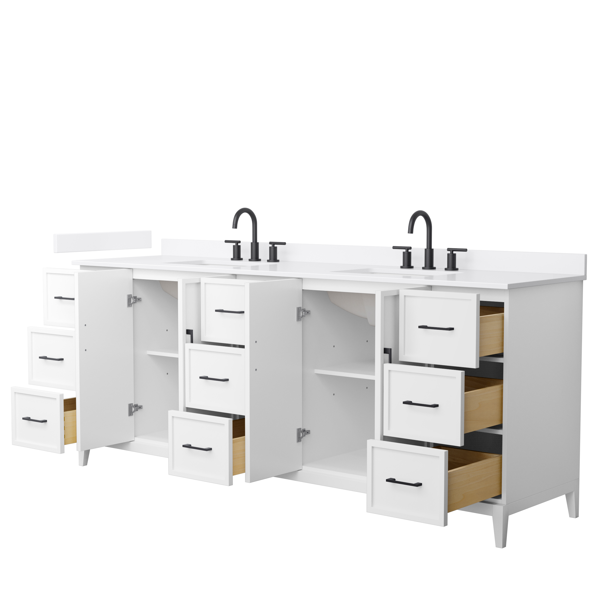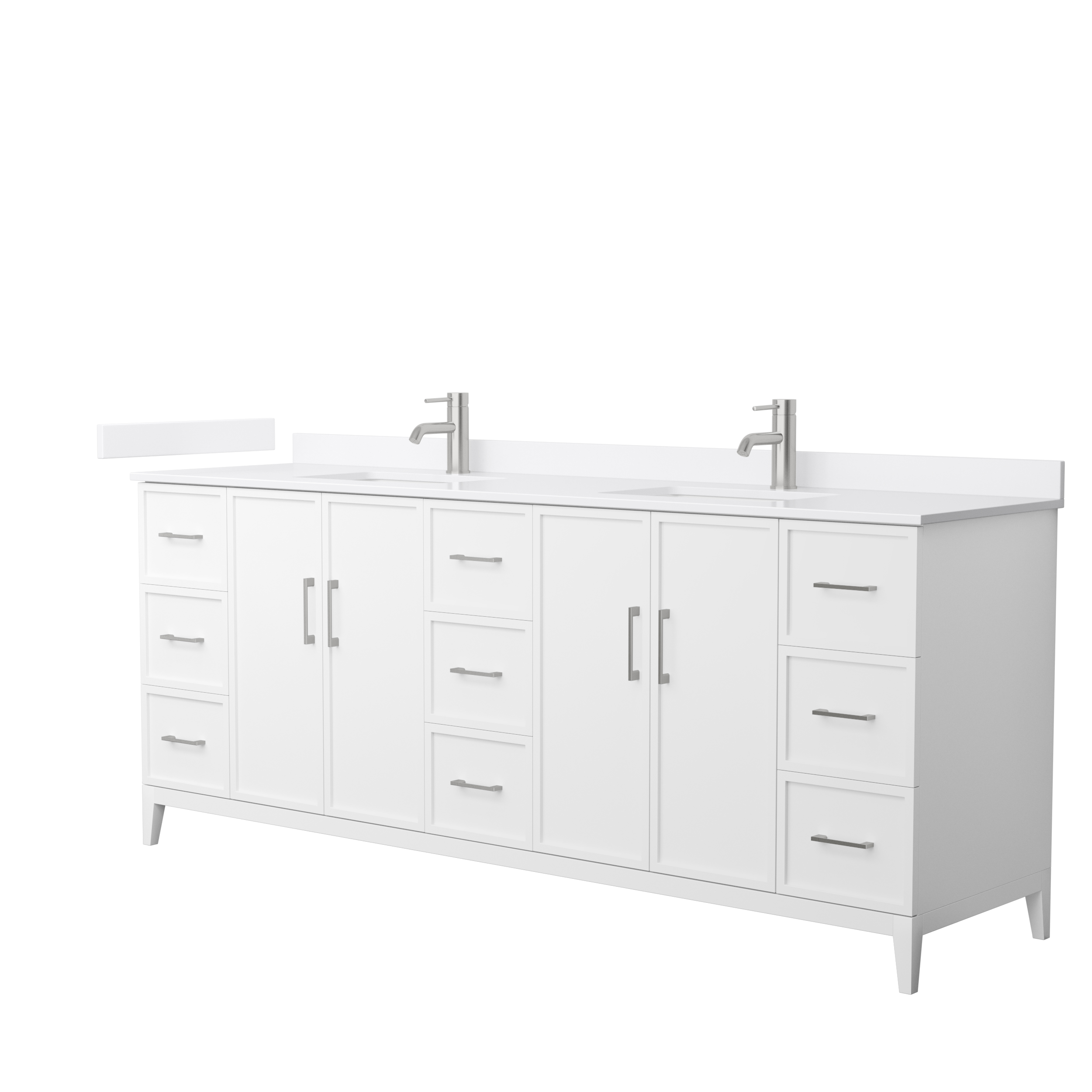 This transitional bathroom vanity exudes sleek sophistication with its clean lines and minimalist slim shaker design. The Elan vanity is crafted from high-quality materials like solid wood and plywood, with counters in multiple material options. Quartz and cultured stone counters include a back-and side-splash. Finished painted or in rift-cut white oak veneer, it seamlessly combines beauty and real-life usefulness. Its integrated, soft-closing drawers (featuring 3D adjustable glides) and doors offer ample storage space for toiletries, towels, and other essentials, keeping the space clutter-free. The sleek, angular hardware contributes to the overall aesthetic, creating a stylish focal point in the bathroom. Elevate your bathroom haven without compromising form or function.