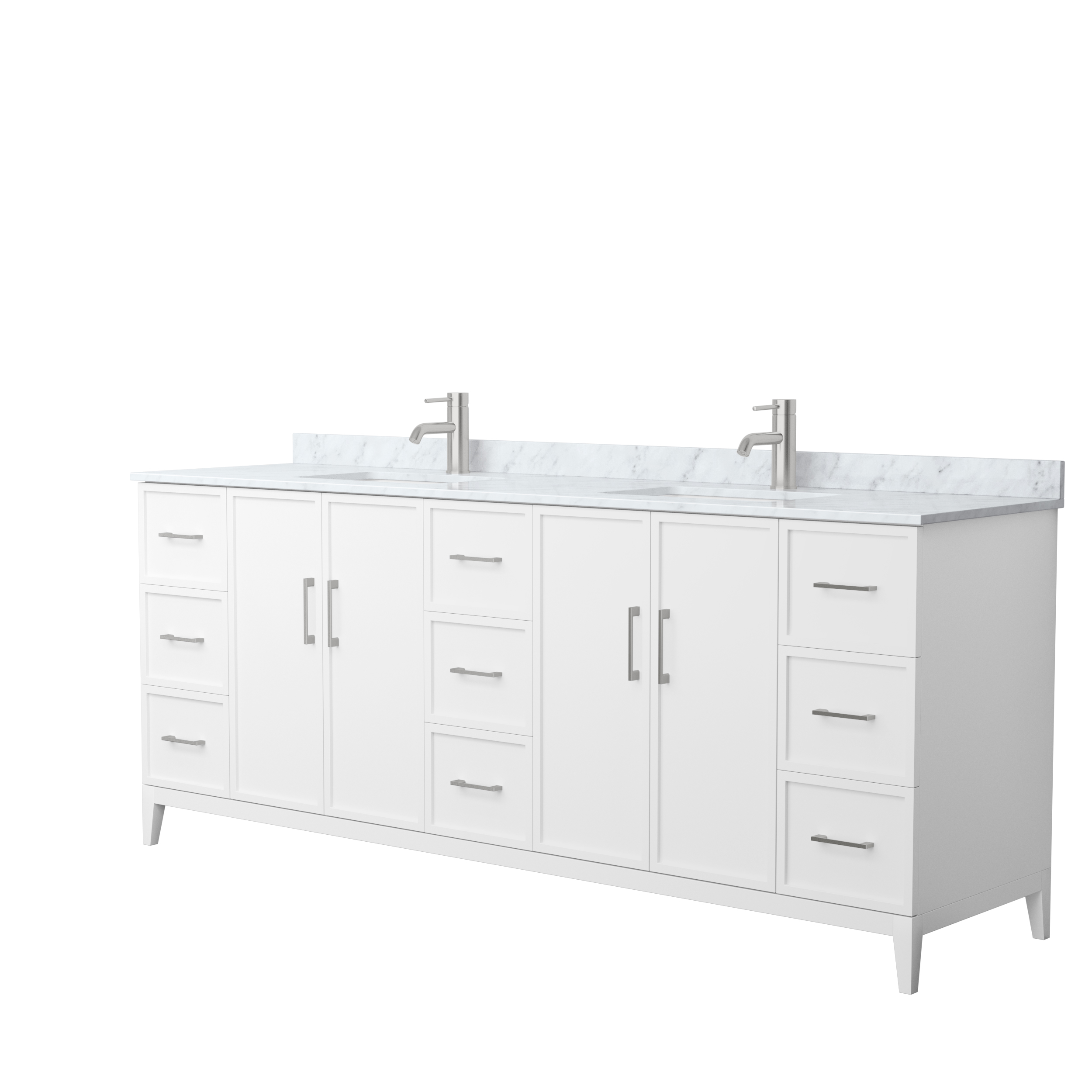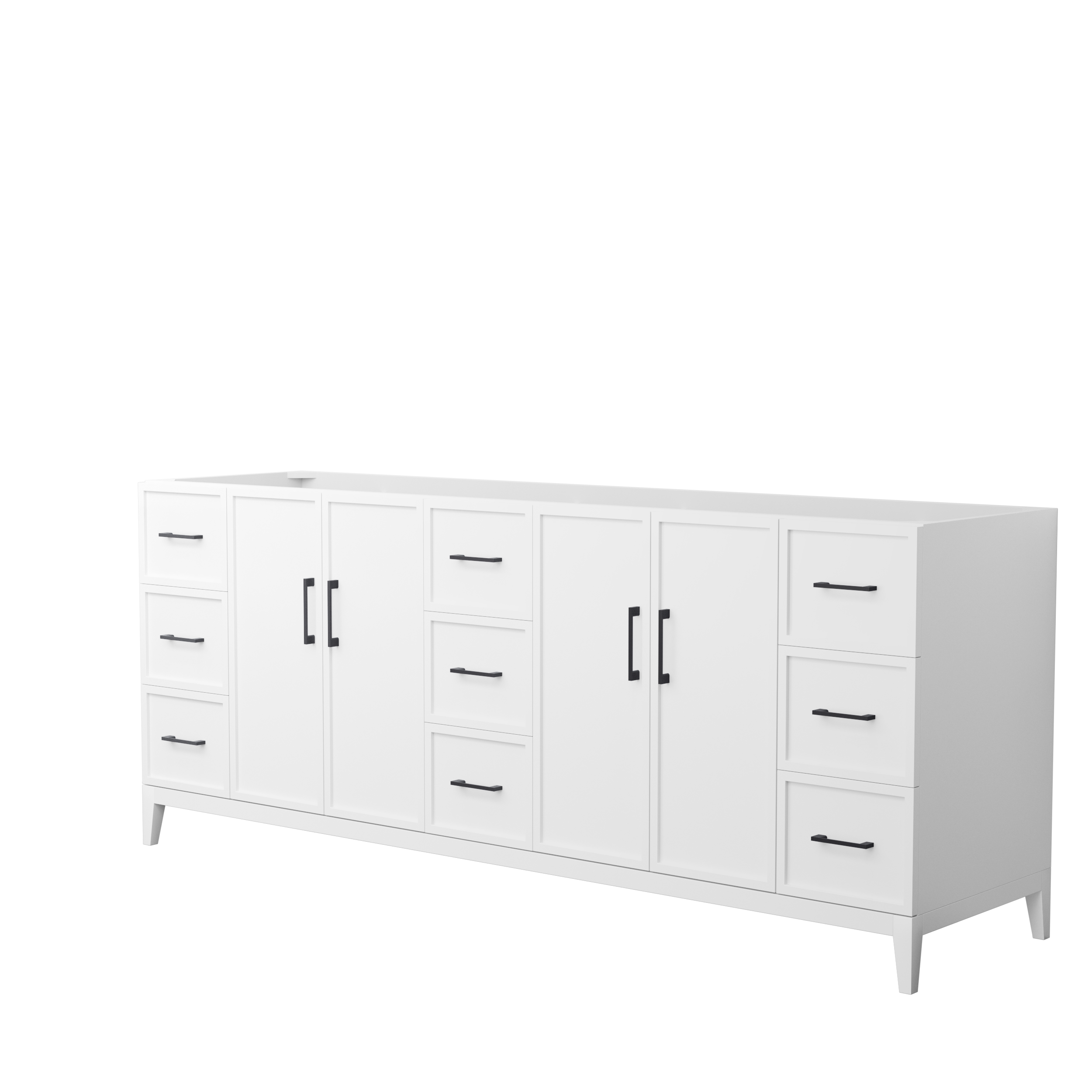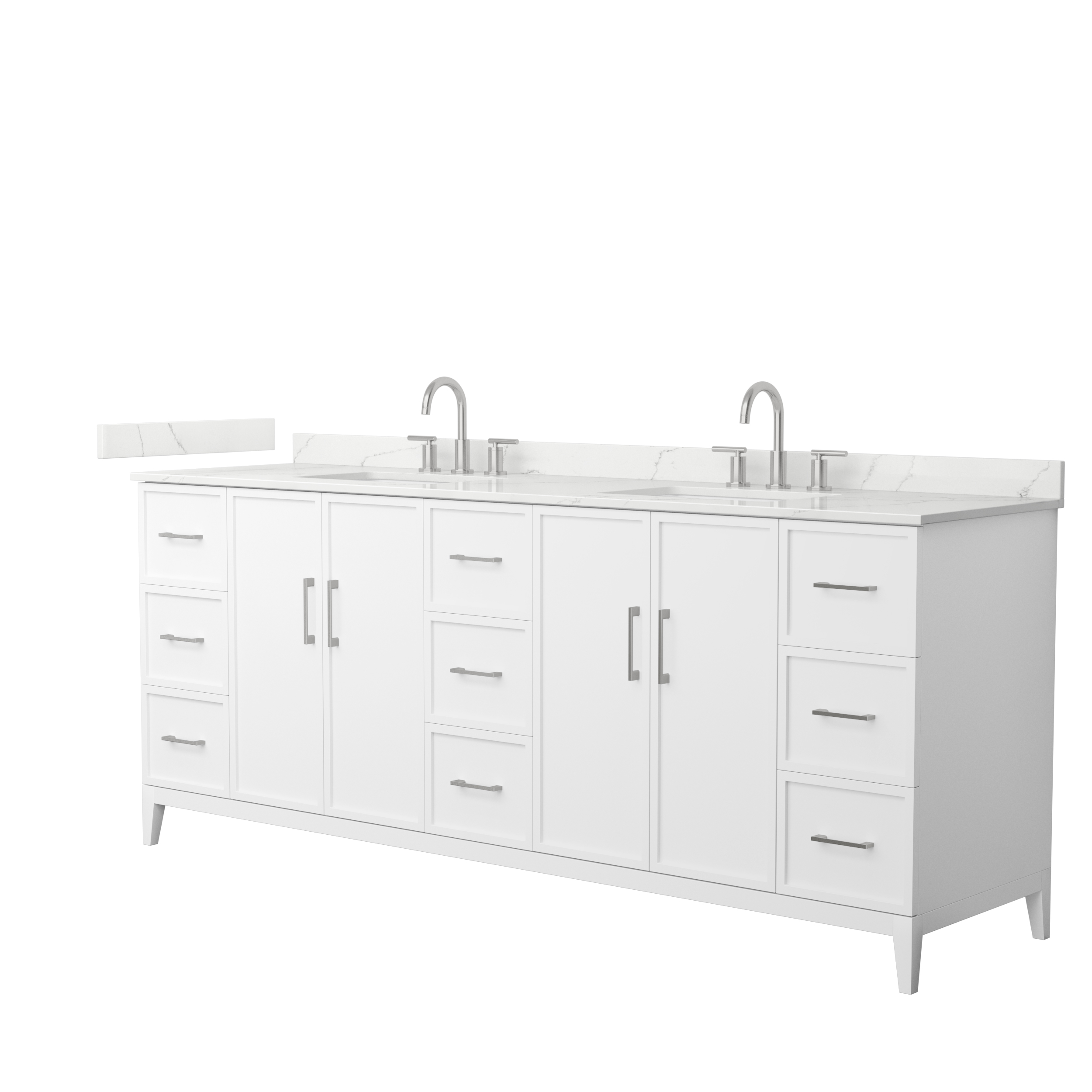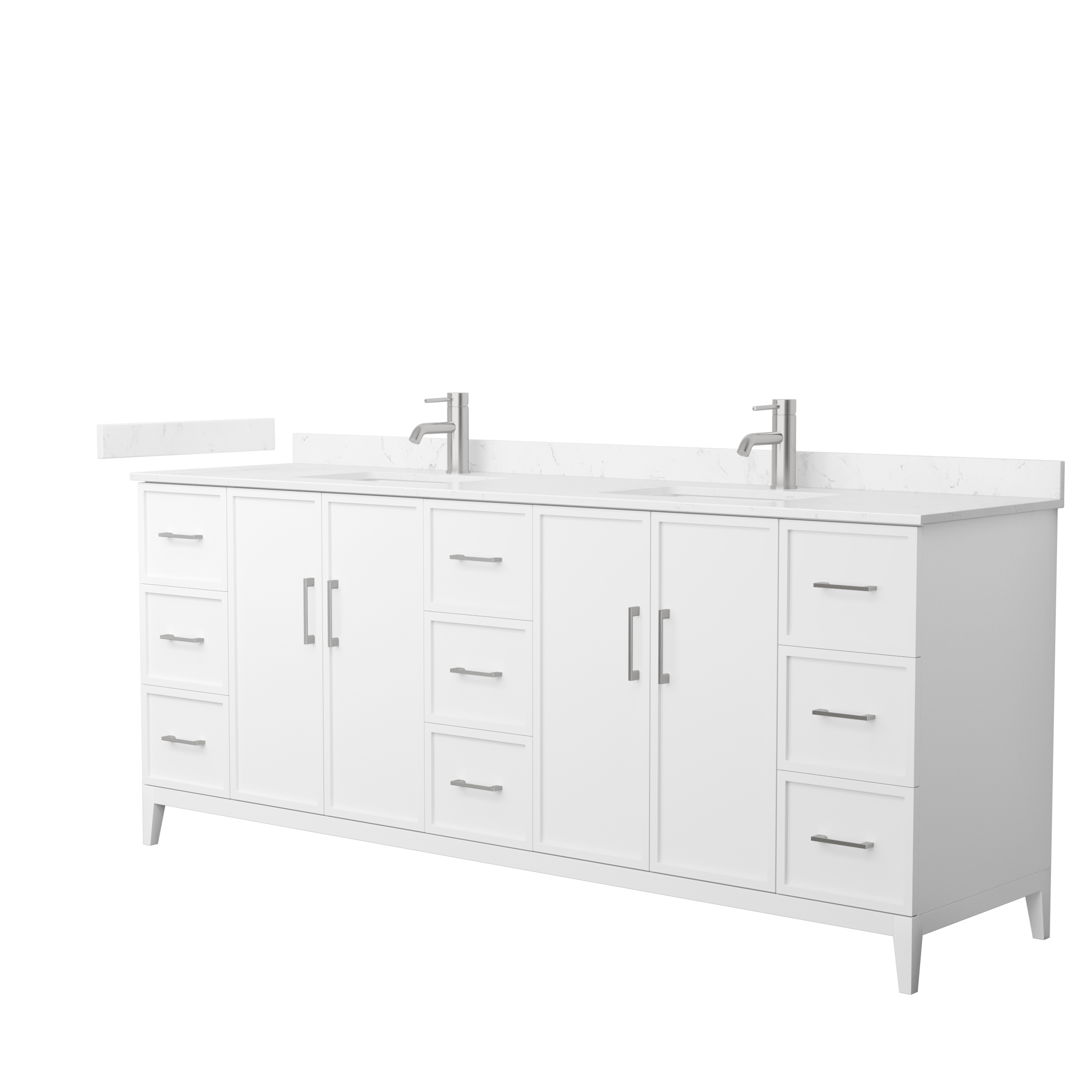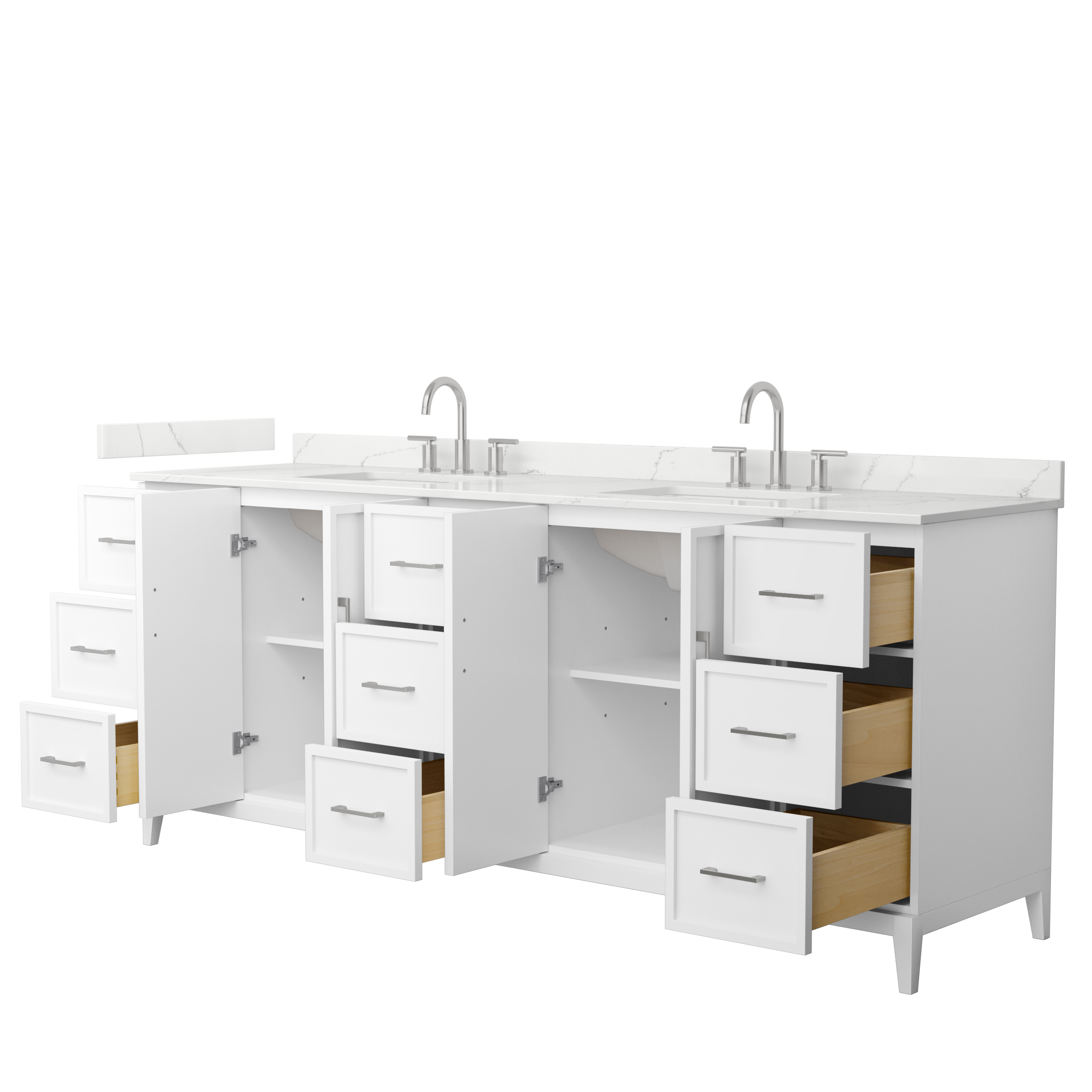 This transitional bathroom vanity exudes sleek sophistication with its clean lines and minimalist slim shaker design. The Elan vanity is crafted from high-quality materials like solid wood and plywood, with counters in multiple material options. Quartz and cultured stone counters include a back-and side-splash. Finished painted or in rift-cut white oak veneer, it seamlessly combines beauty and real-life usefulness. Its integrated, soft-closing drawers (featuring 3D adjustable glides) and doors offer ample storage space for toiletries, towels, and other essentials, keeping the space clutter-free. The sleek, angular hardware contributes to the overall aesthetic, creating a stylish focal point in the bathroom. Elevate your bathroom haven without compromising form or function.