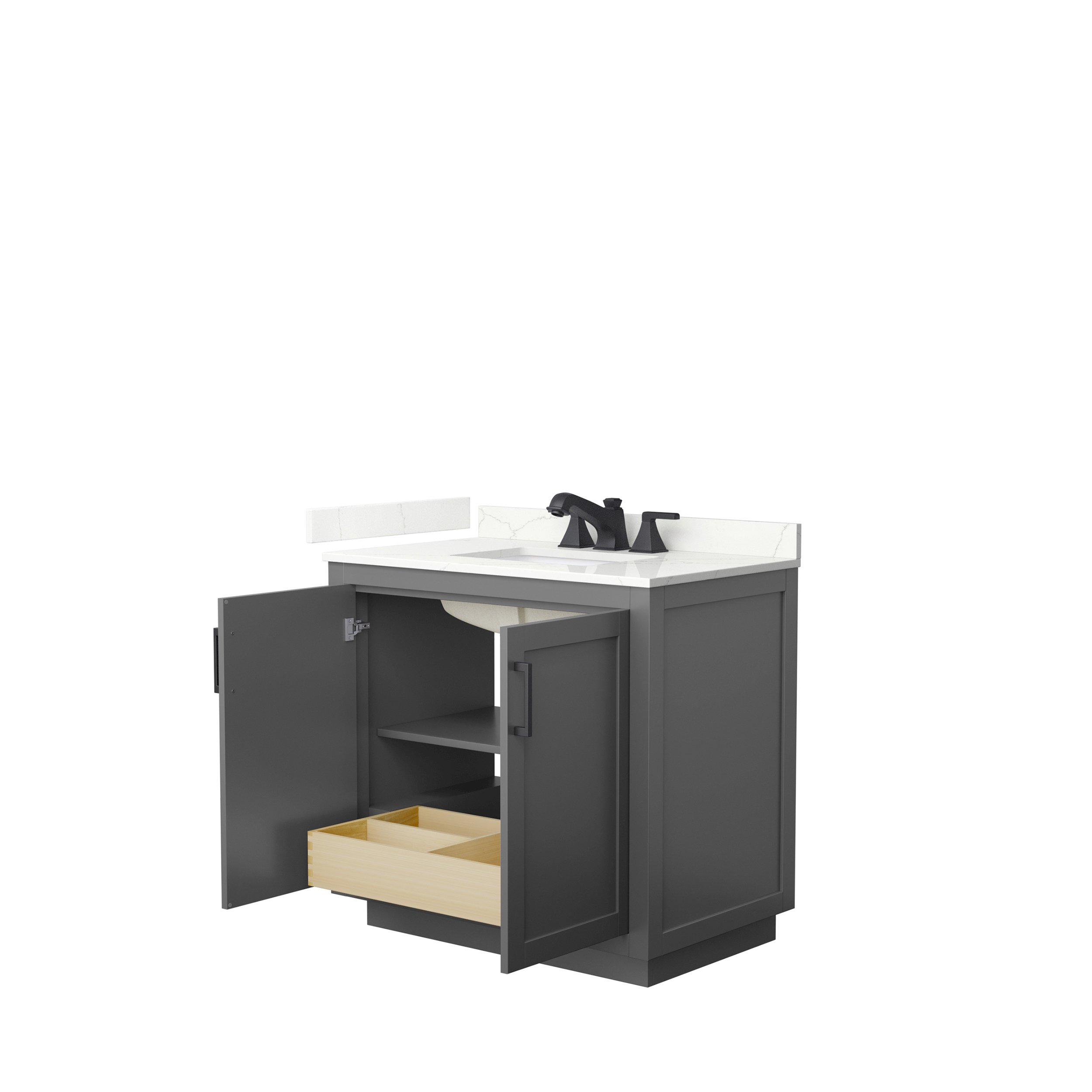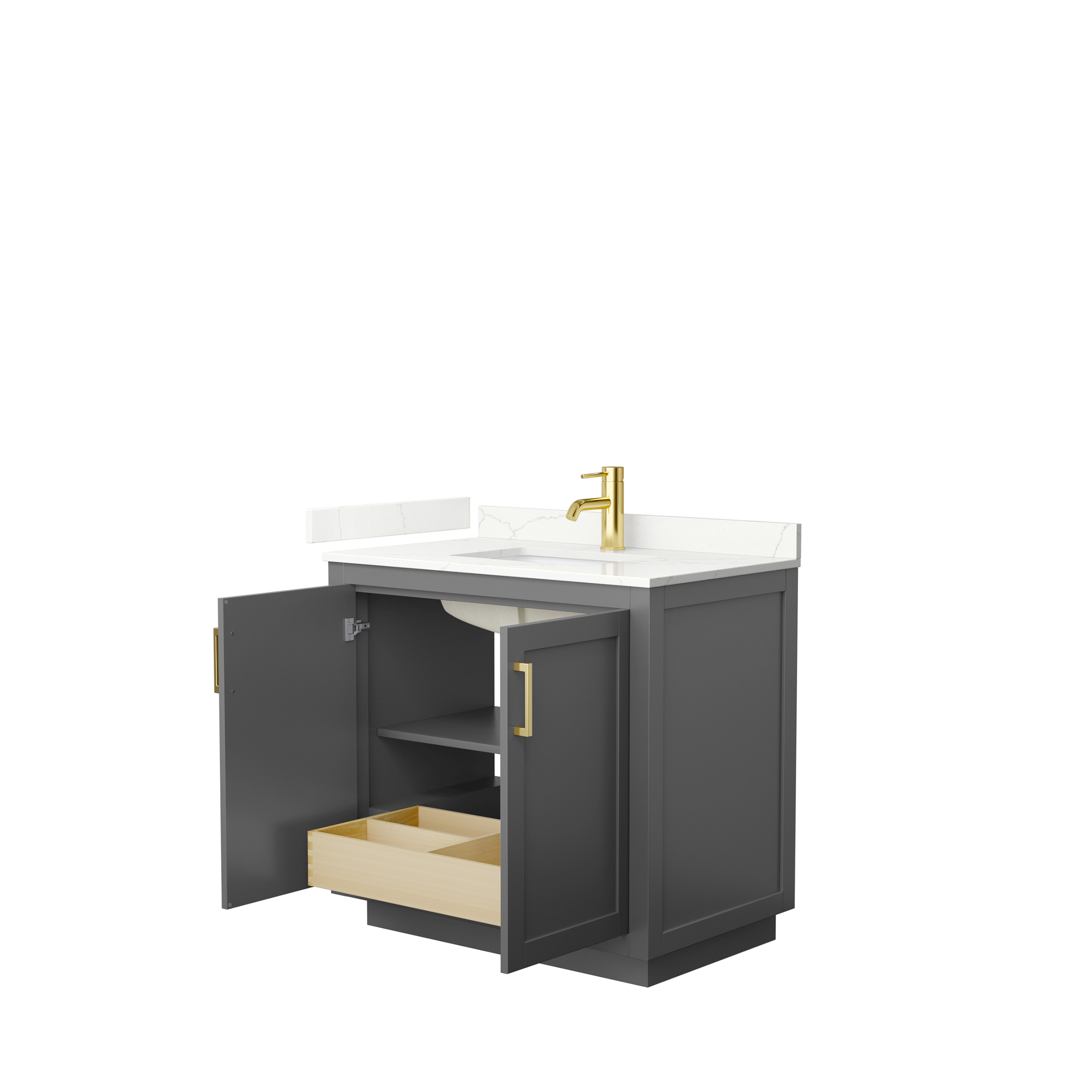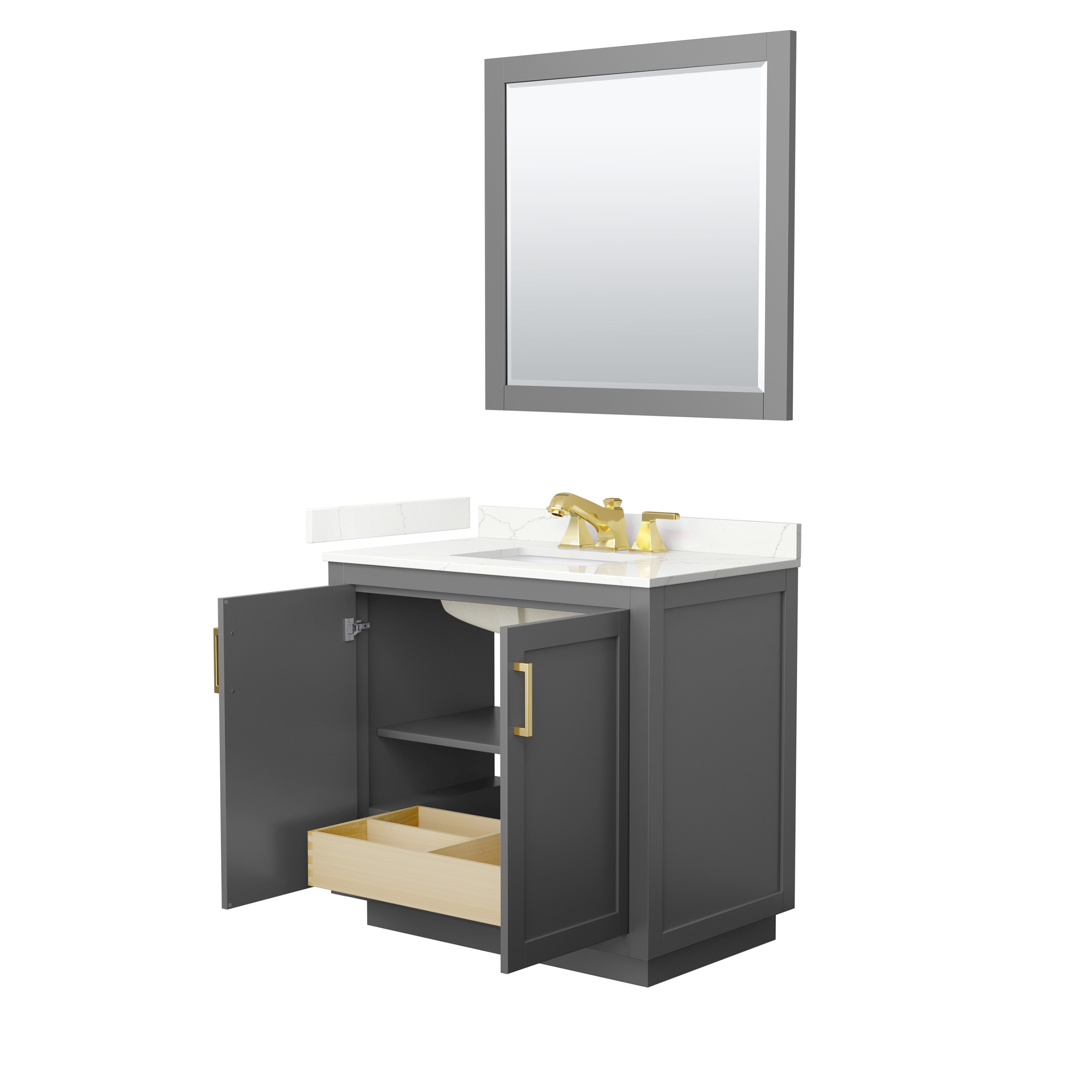 Sleek and Chic are the best words to describe this European shaker vanity, a piece that bridges modern and contemporary. The Miranda vanity is manufactured in high quality durable materials and finished to the exacting standards you've come to expect from the Wyndham Collection. With function as important as form, the elegant design focuses on ample storage and counter space, a choice of three handle colors, and dovetail drawers. Available with your choice of beautiful Quartz, Carrara Marble, or Cultured Marble counter.