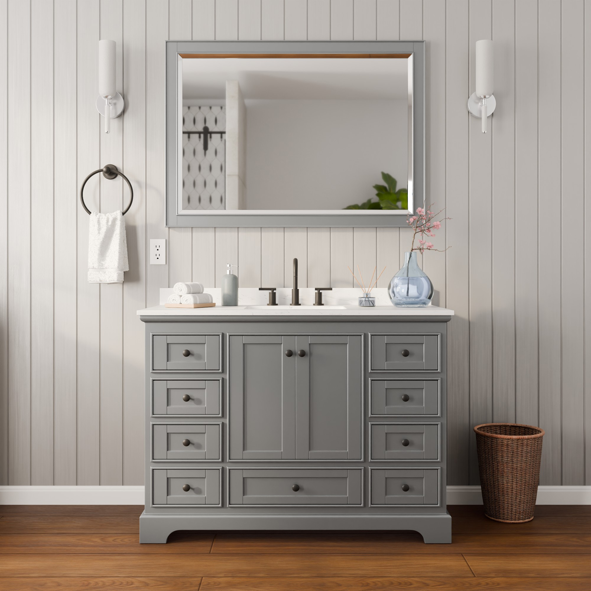 Deborah Single Bathroom Vanity (48" Dark Gray Model), Drag to Rotate
