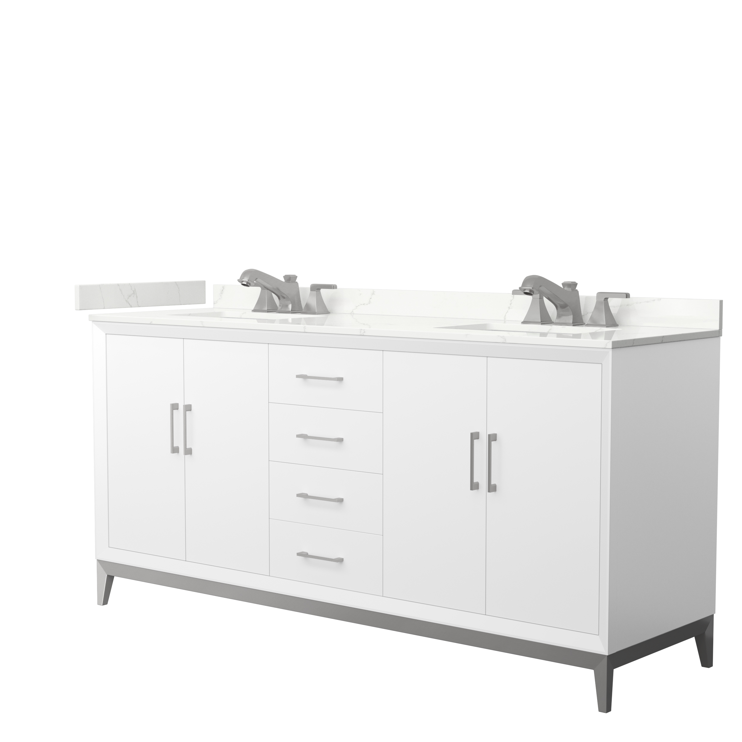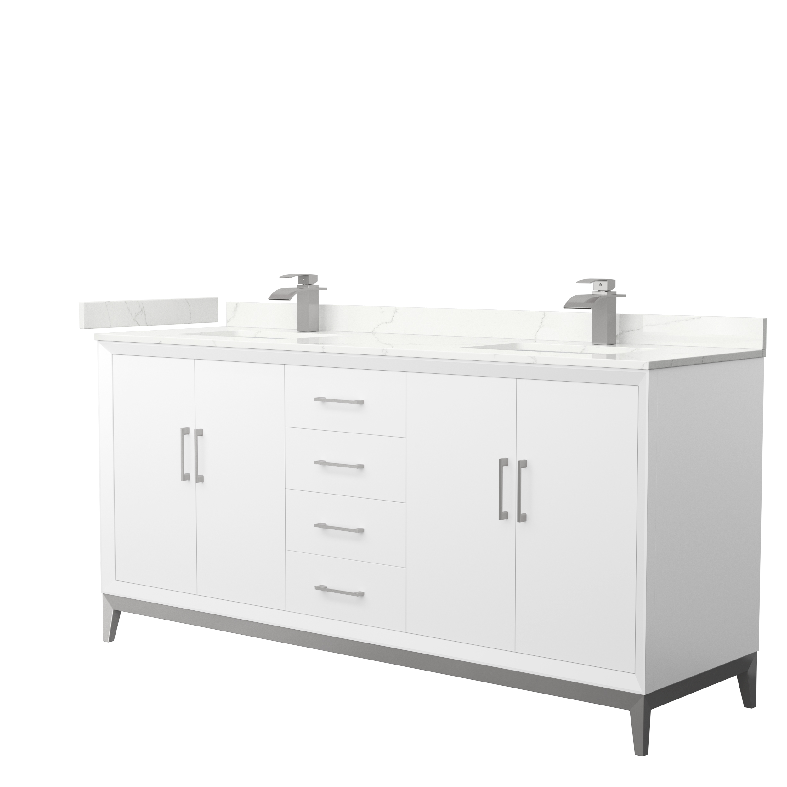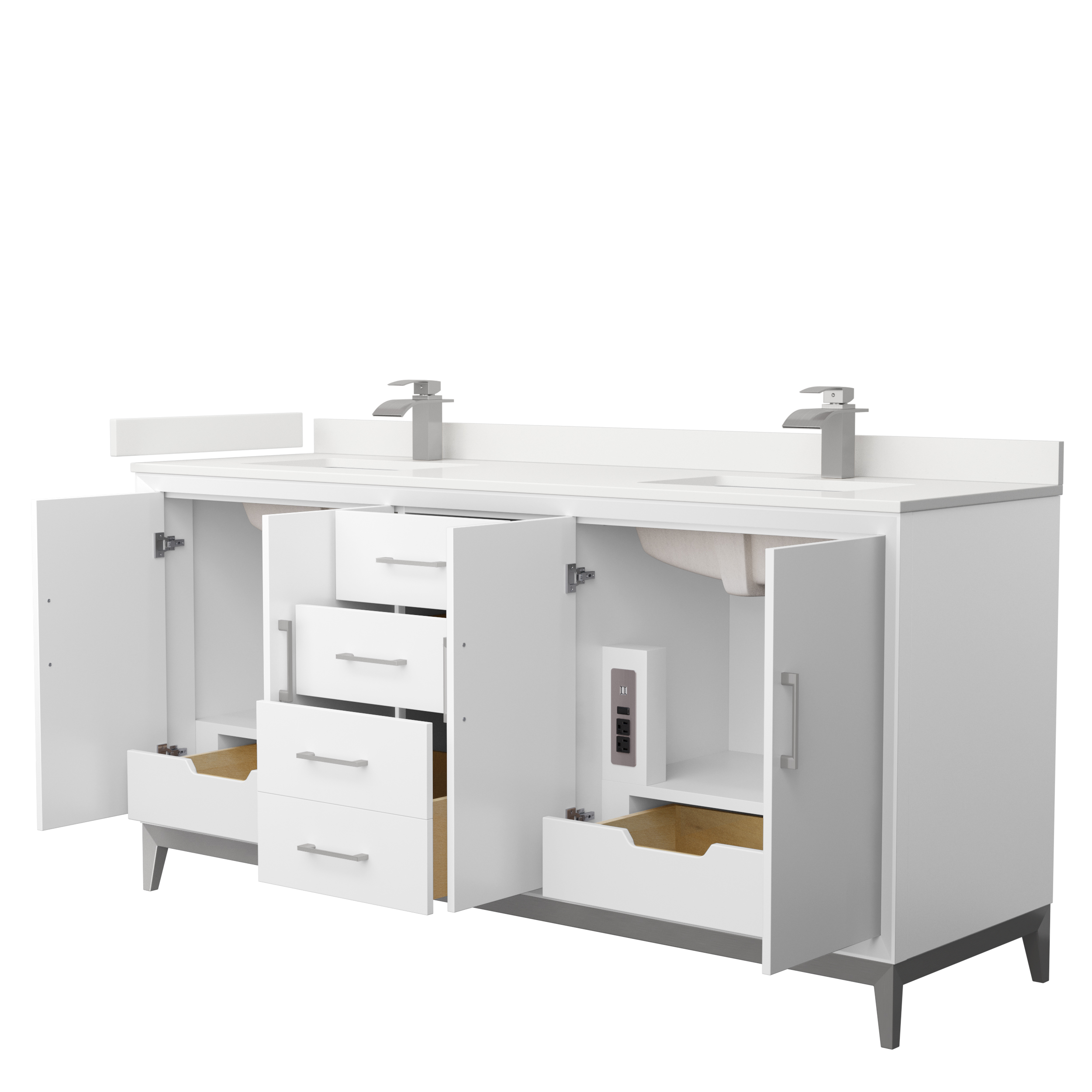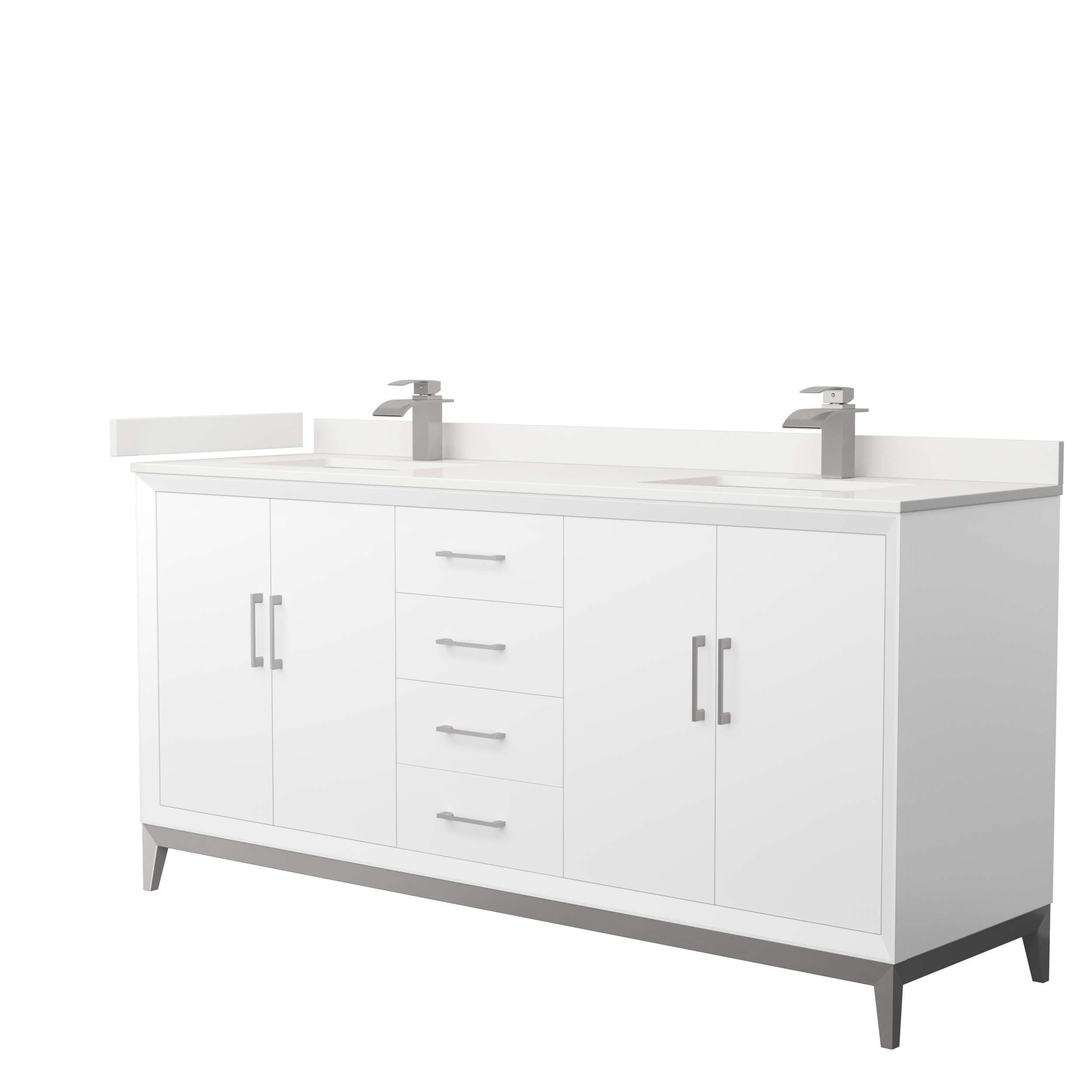Classic luxury with clean and contemporary styling are the hallmarks of the beautiful Amici vanity collection, perfect for any contemporary or modern home decor. Offered in a range of sizes so you're sure to find the perfect fit. There's plenty of storage space, soft-close doors and drawers, internal drawers and the convenience of a 110v outlet and USB charger just inside the door. Offered with available Quartz, Carrara marble, or cultured stone counters.