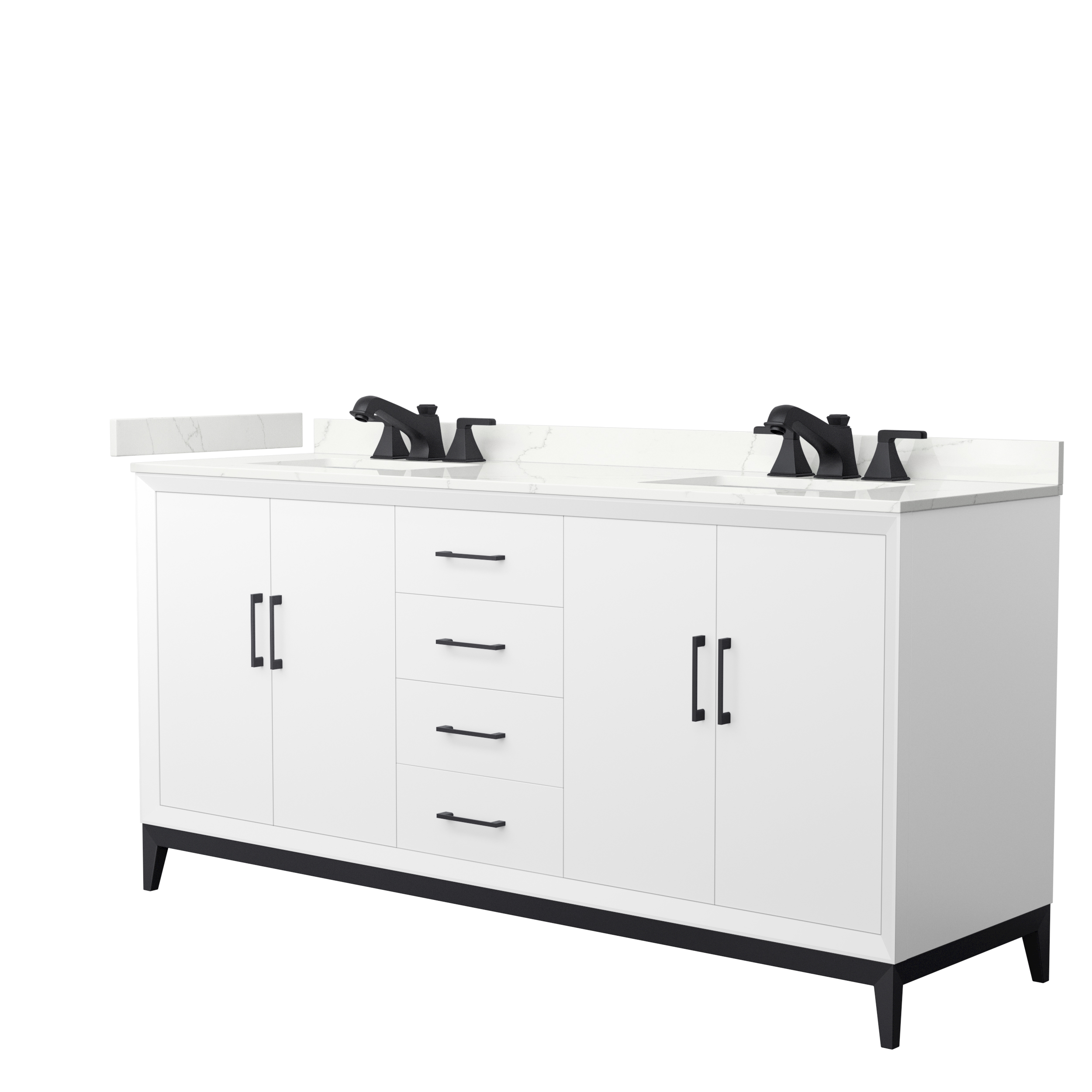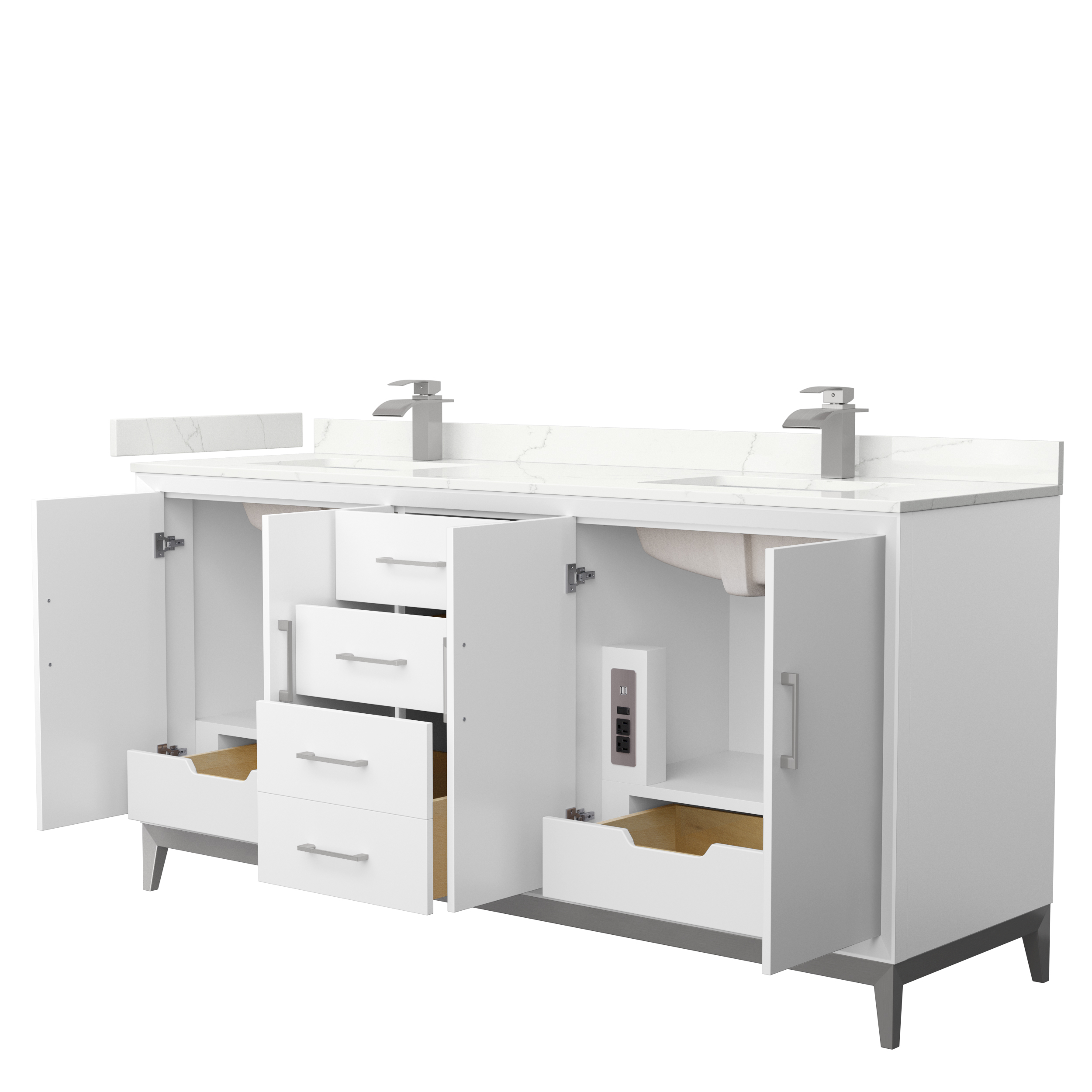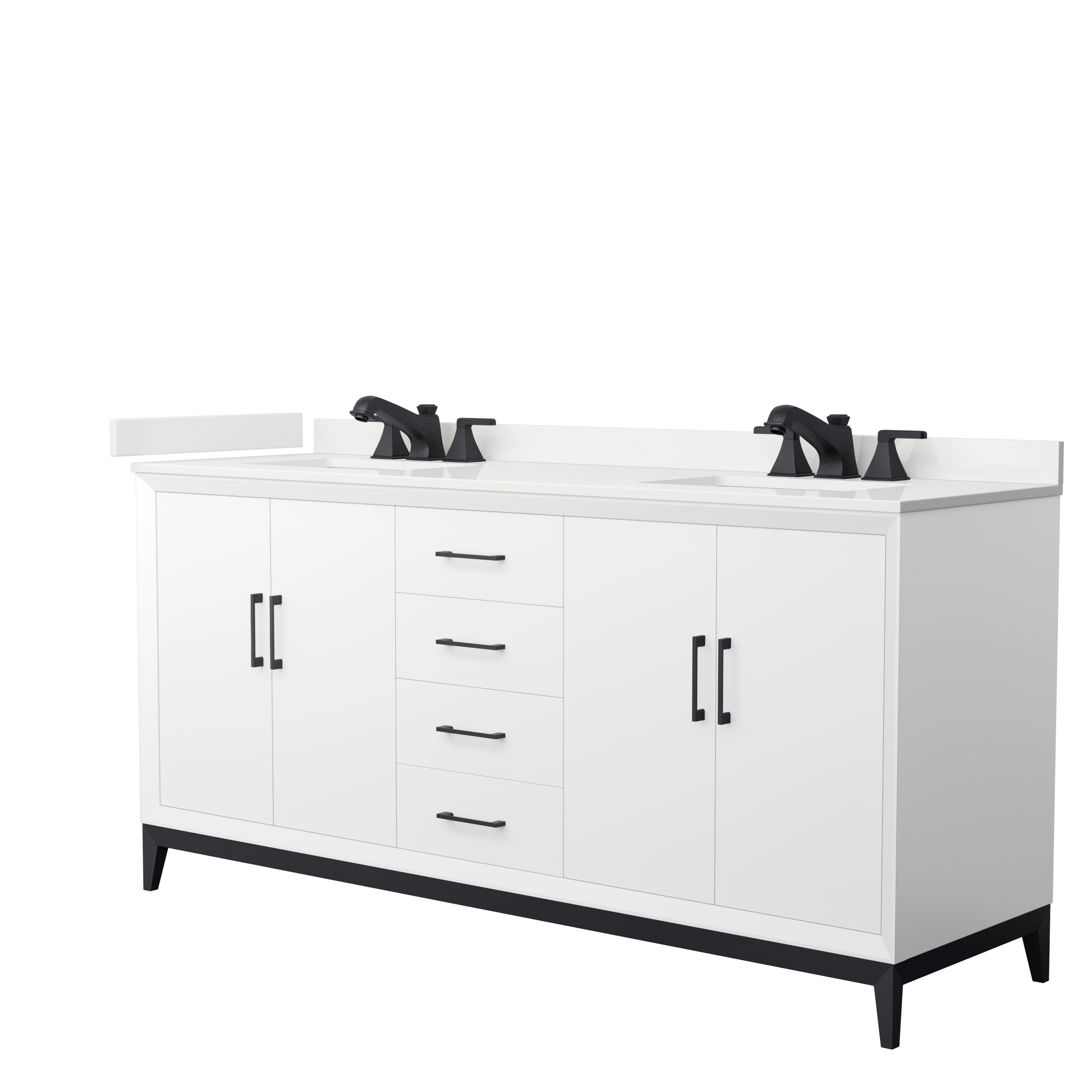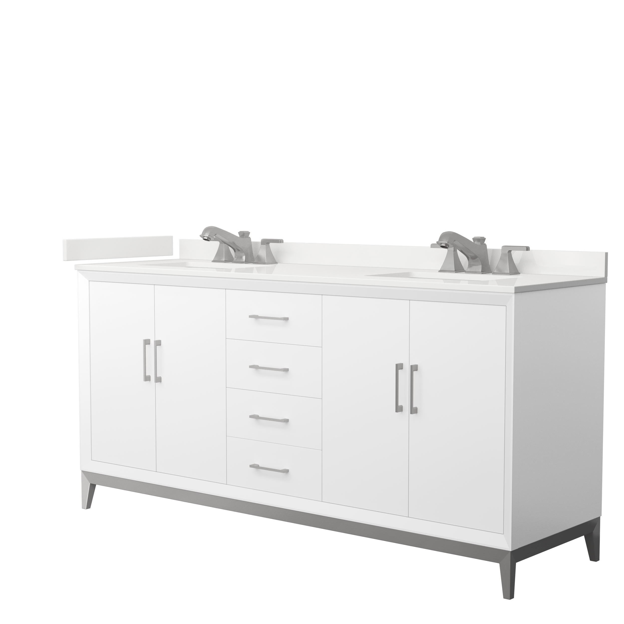 Classic luxury with clean and contemporary styling are the hallmarks of the beautiful Amici vanity collection, perfect for any contemporary or modern home decor. Offered in a range of sizes so you're sure to find the perfect fit. There's plenty of storage space, soft-close doors and drawers, internal drawers and the convenience of a 110v outlet and USB charger just inside the door. Offered with available Quartz, Carrara marble, or cultured stone counters.