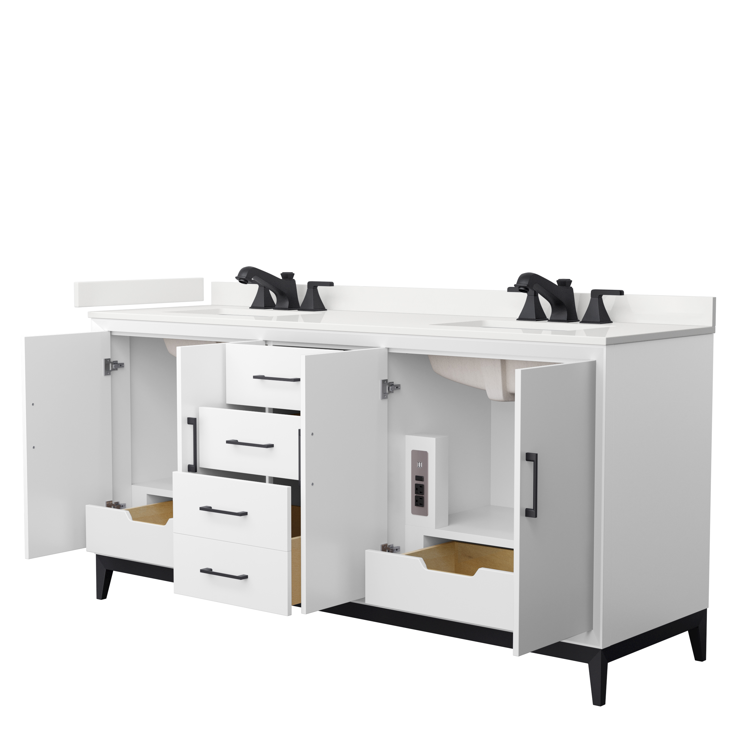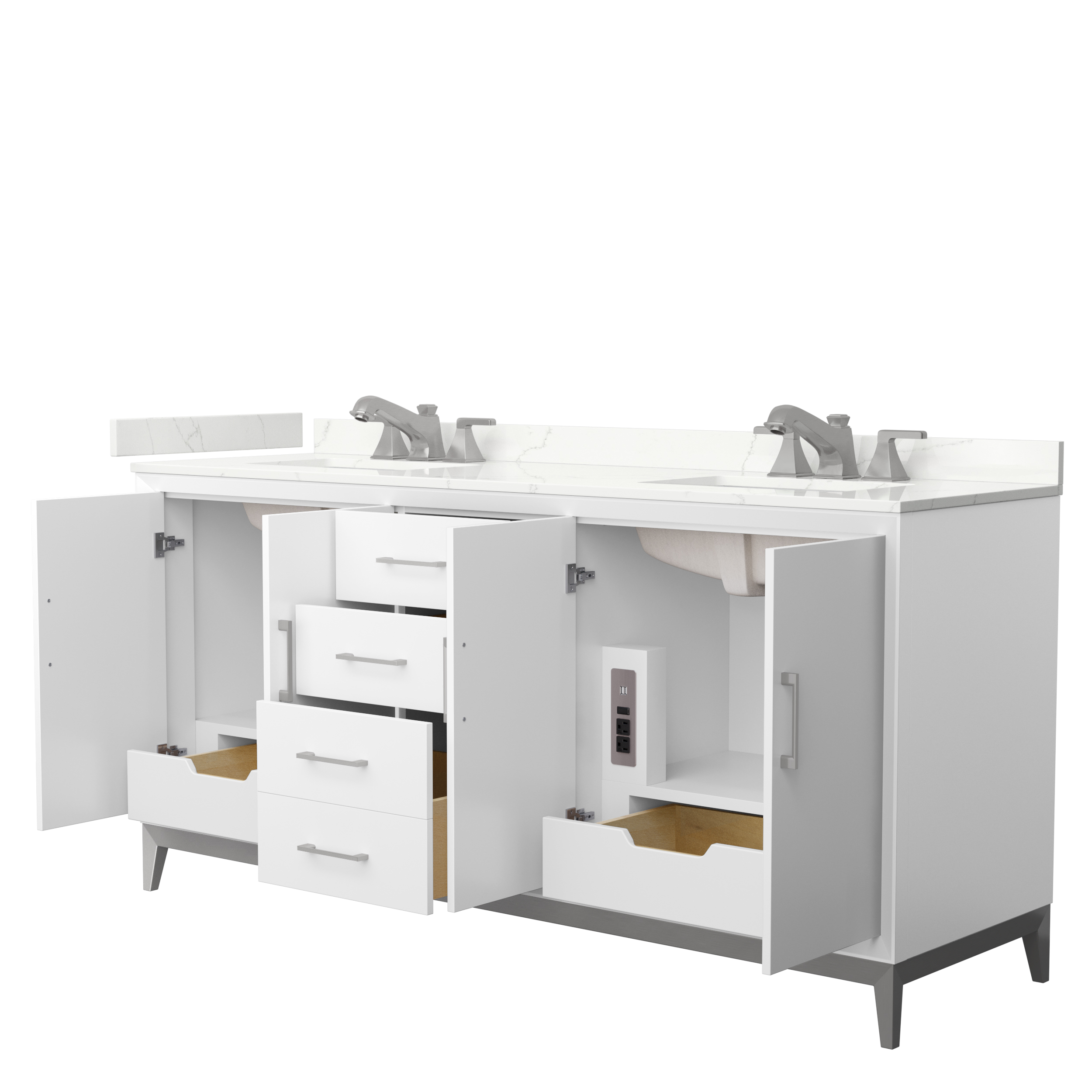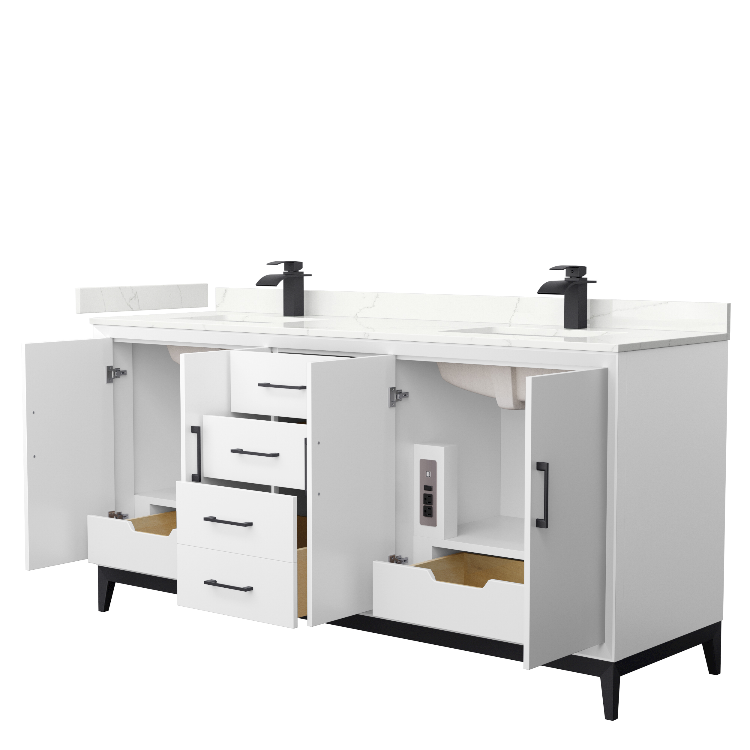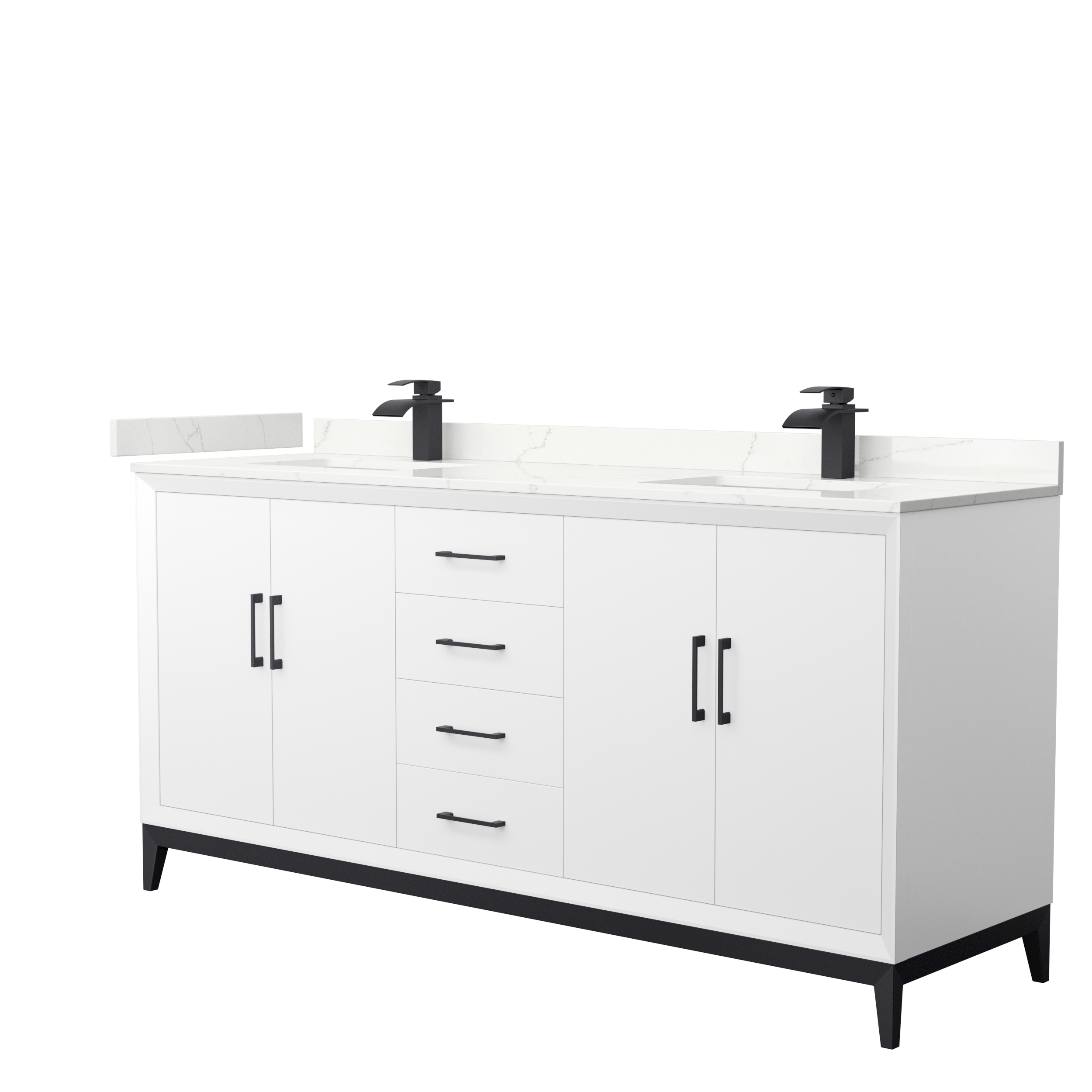 Classic luxury with clean and contemporary styling are the hallmarks of the beautiful Amici vanity collection, perfect for any contemporary or modern home decor. Offered in a range of sizes so you're sure to find the perfect fit. There's plenty of storage space, soft-close doors and drawers, internal drawers and the convenience of a 110v outlet and USB charger just inside the door. Offered with available Quartz, Carrara marble, or cultured stone counters.