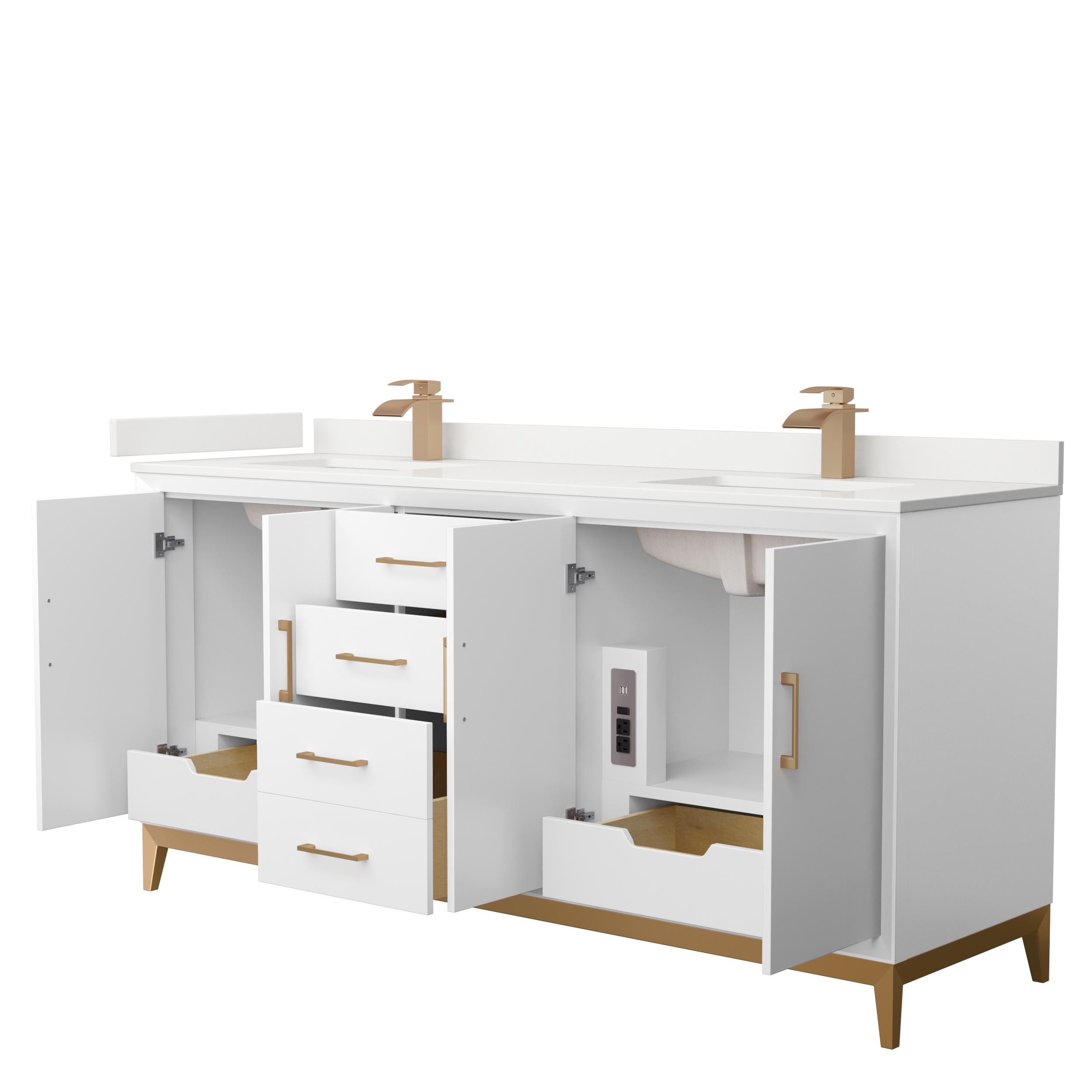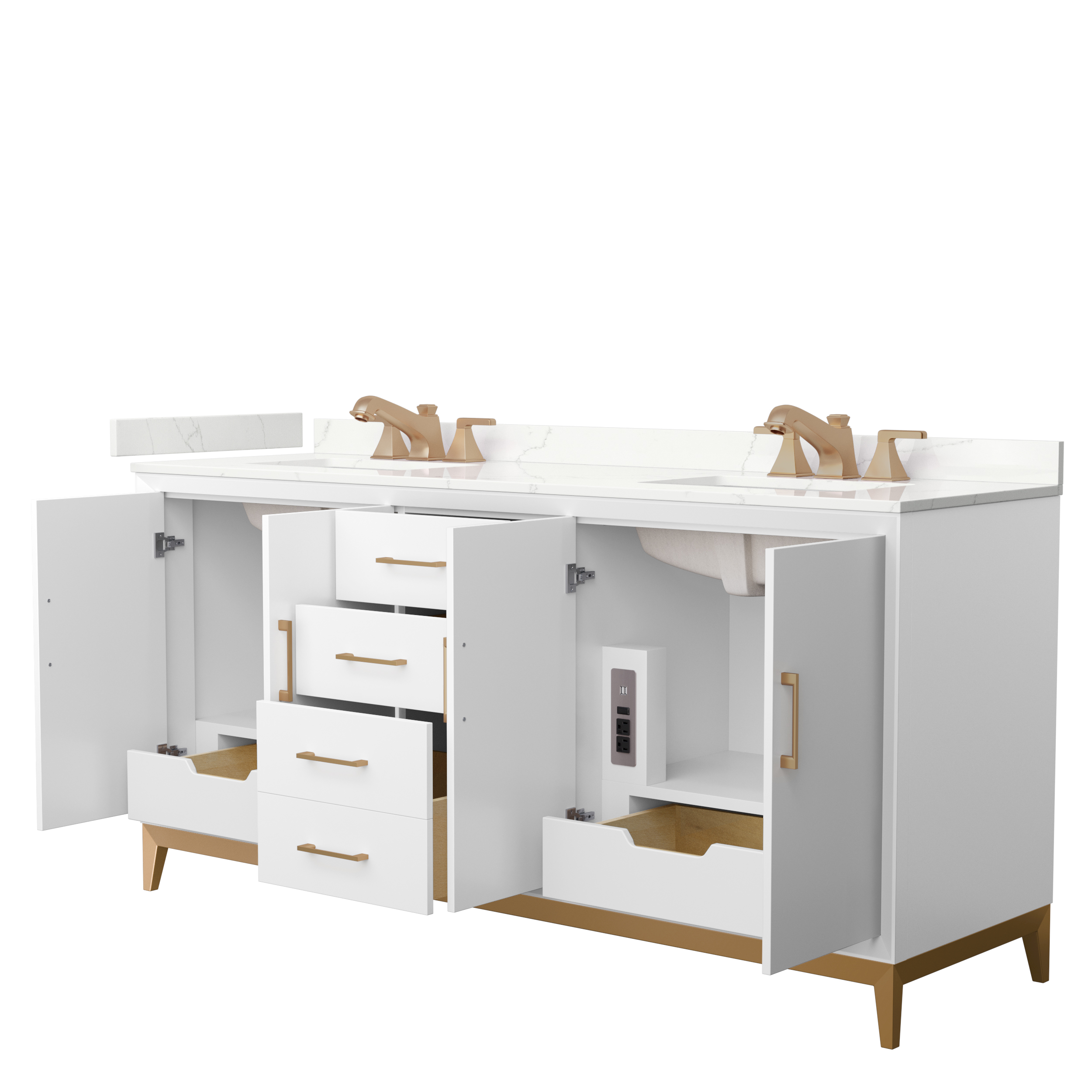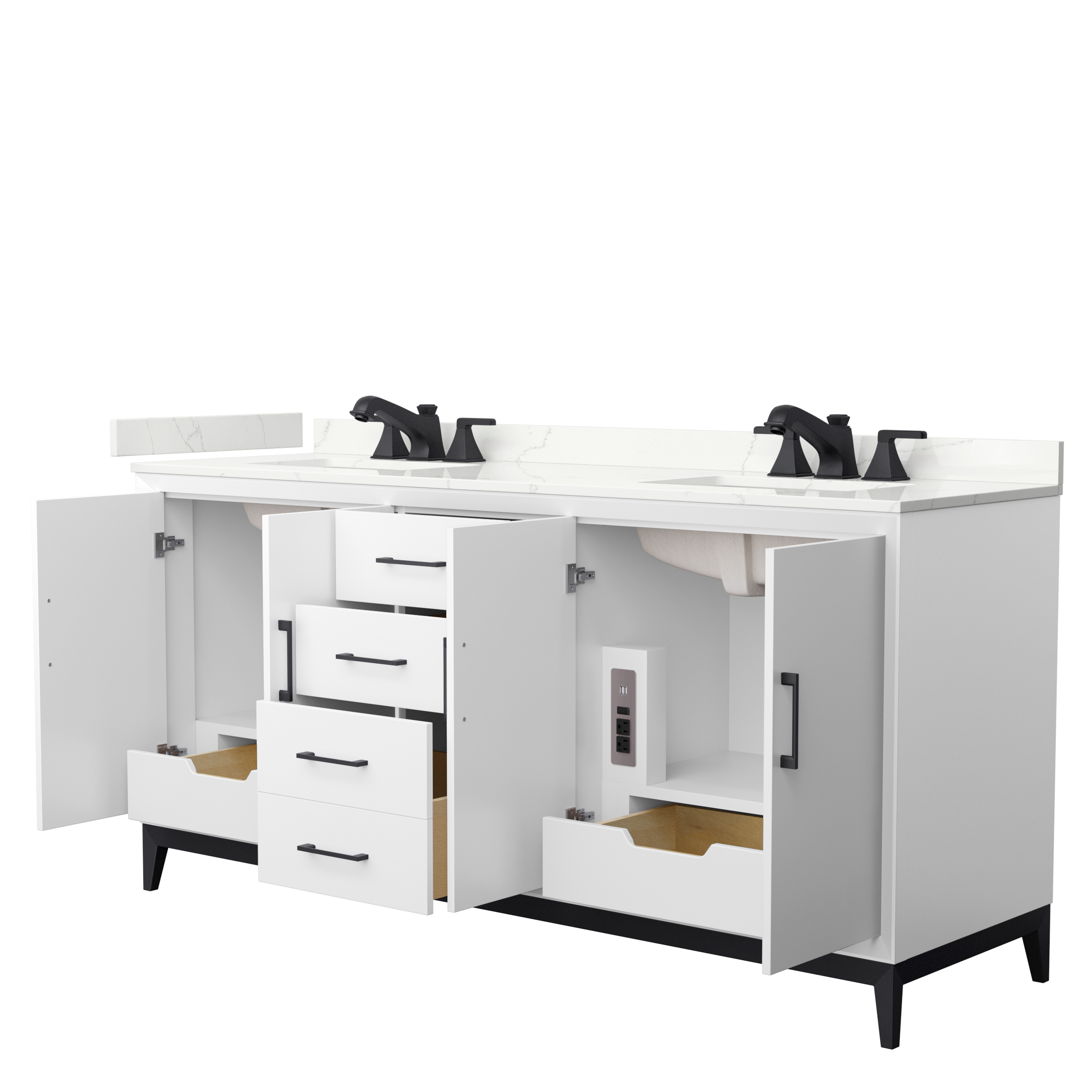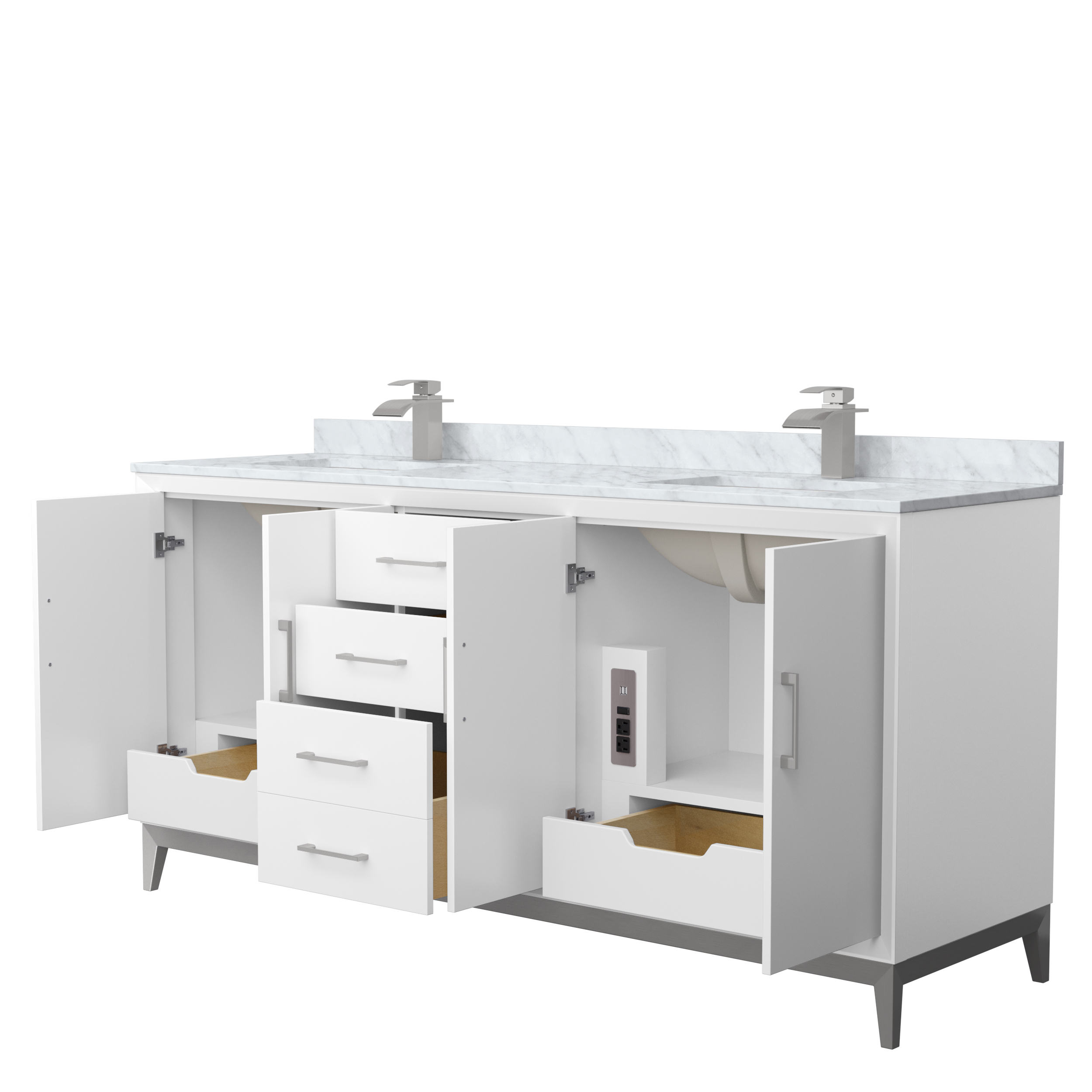 Classic luxury with clean and contemporary styling are the hallmarks of the beautiful Amici vanity collection, perfect for any contemporary or modern home decor. Offered in a range of sizes so you're sure to find the perfect fit. There's plenty of storage space, soft-close doors and drawers, internal drawers and the convenience of a 110v outlet and USB charger just inside the door. Offered with available Quartz, Carrara marble, or cultured stone counters.