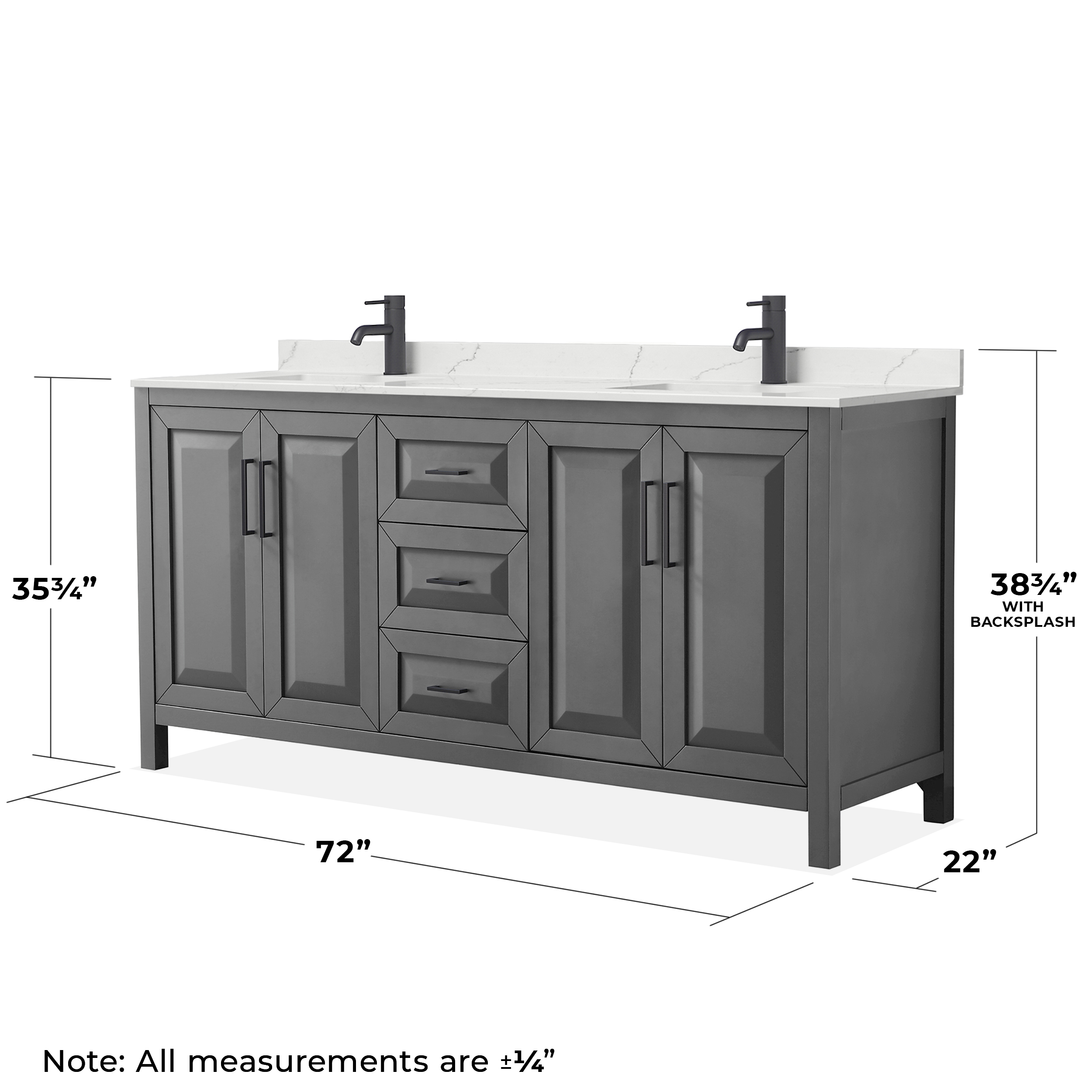 The beautiful Daria collection vanities stand out in any bathroom with strong, clean lines, raised panels and elegant counters with square sinks. There's plenty of cabinet space, the fully extending drawers are dovetail construction, and matte black or polished chrome finish detailing completes the look. Daria vanities deftly combine the function of today with a nod to the elegance of the past. It's the new modern - classic styling with a contemporary twist.