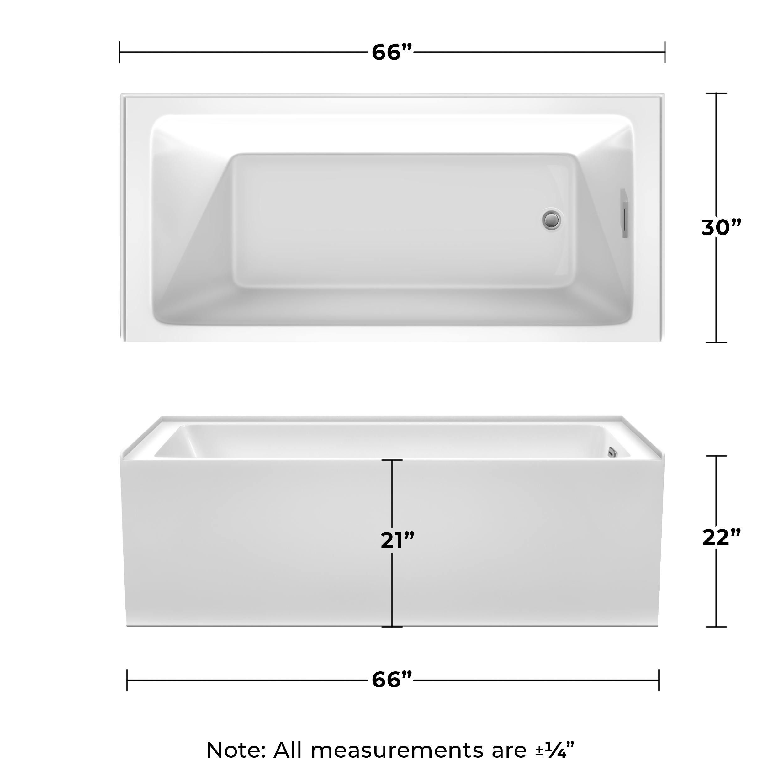 Grayley Alcove 66" Bathtub, Right Side Drain (66"Lx30"Wx22"H)