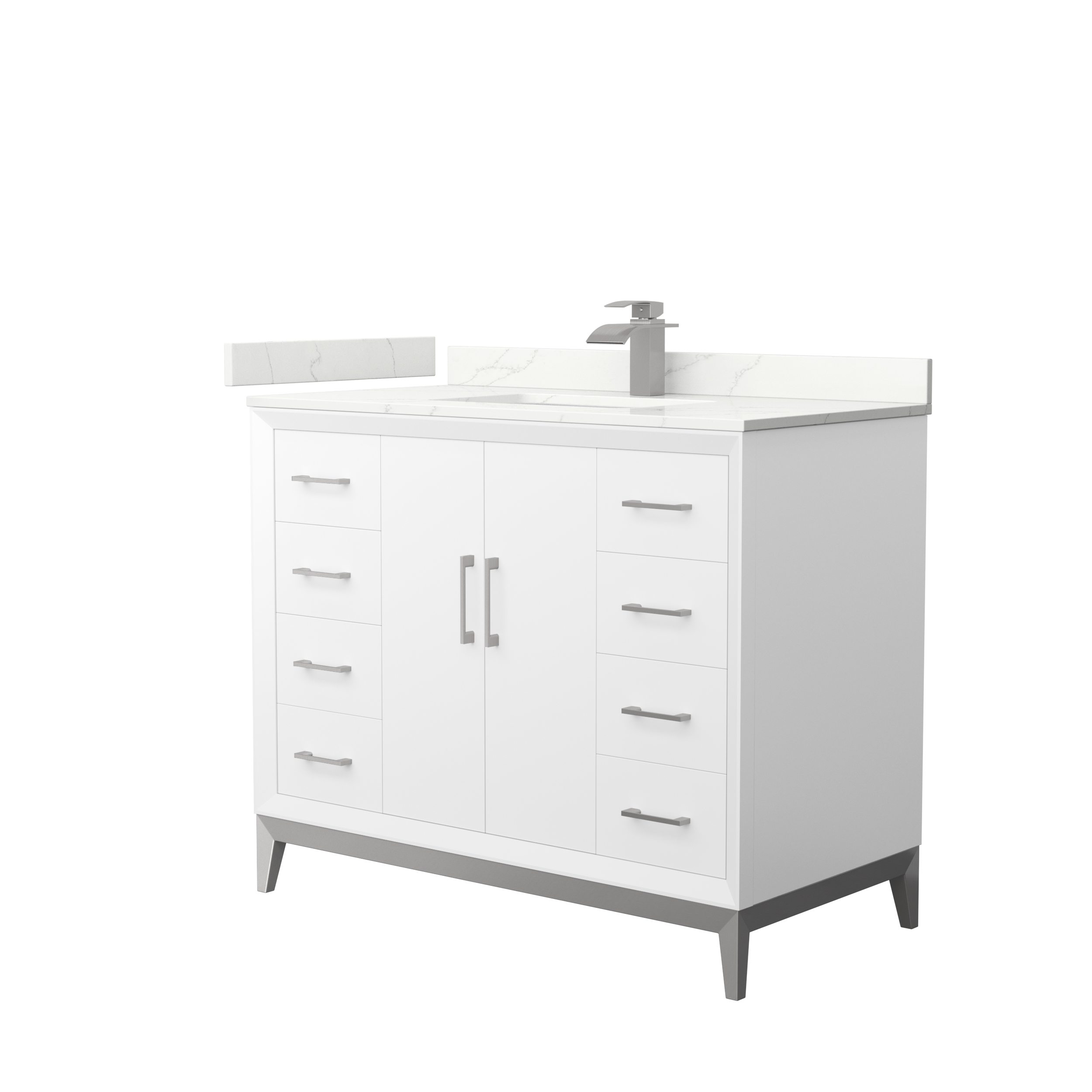 Classic luxury with clean and contemporary styling are the hallmarks of the beautiful Amici vanity collection, perfect for any contemporary or modern home decor. Offered in a range of sizes so you're sure to find the perfect fit. There's plenty of storage space, soft-close doors and drawers, internal drawers and the convenience of a 110v outlet and USB charger just inside the door.