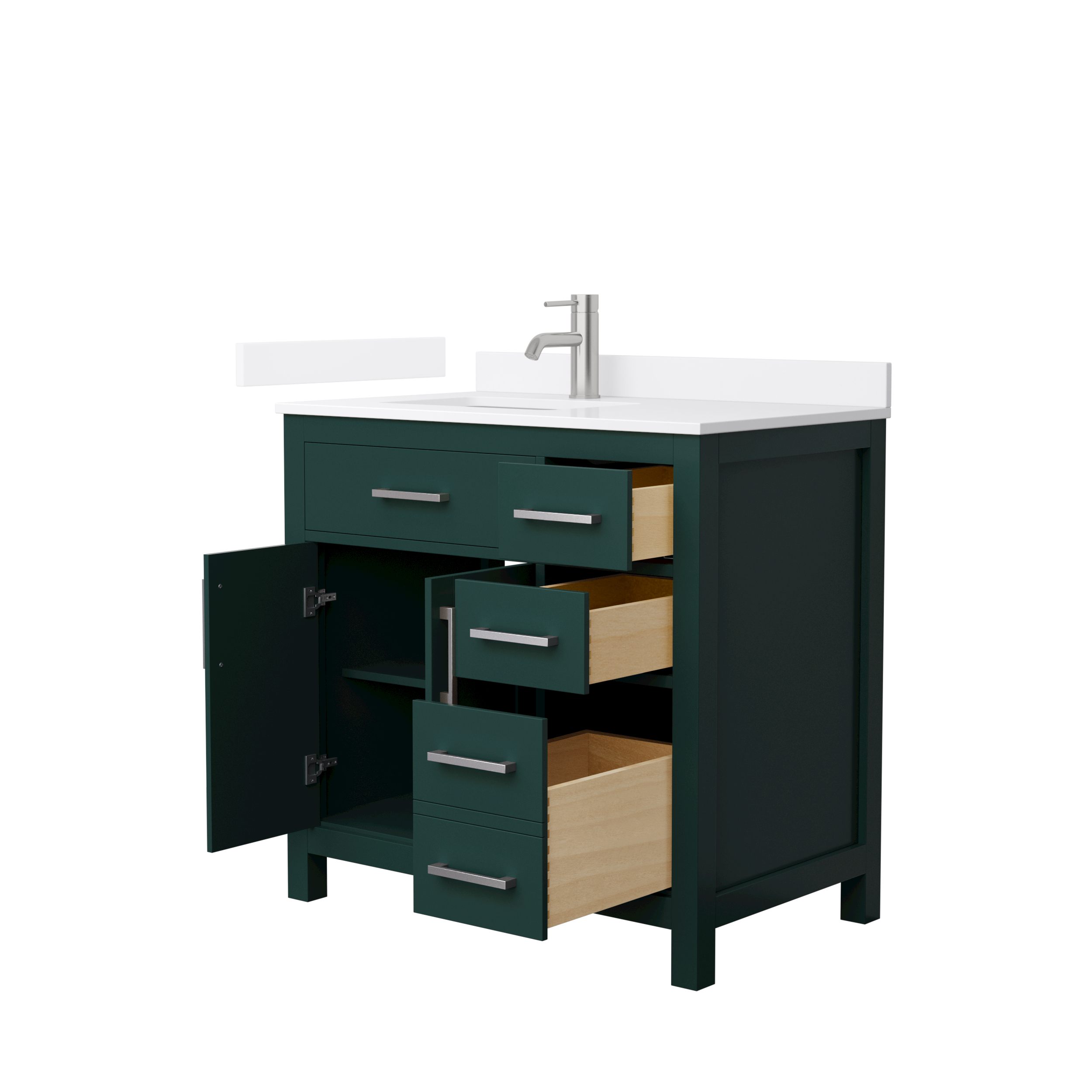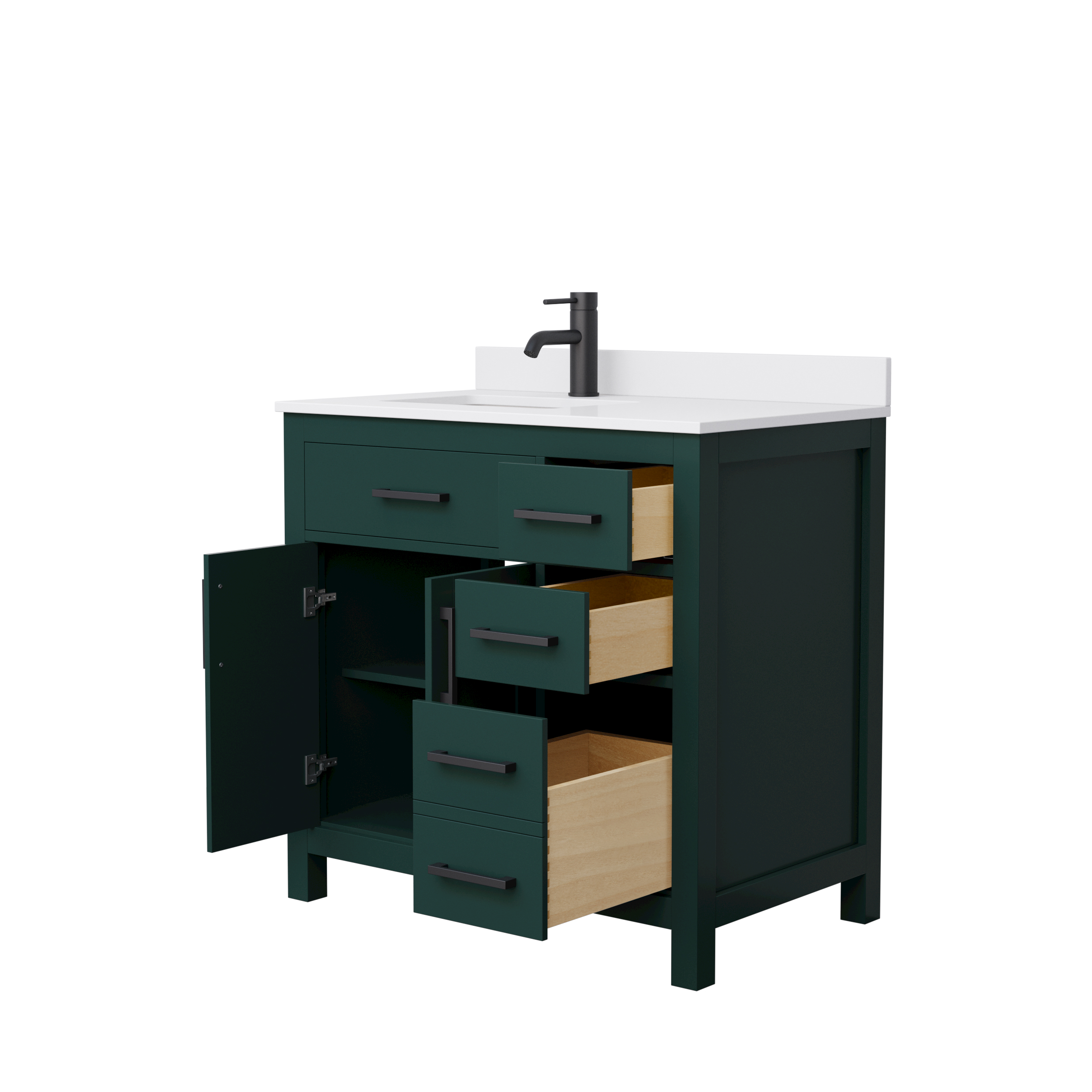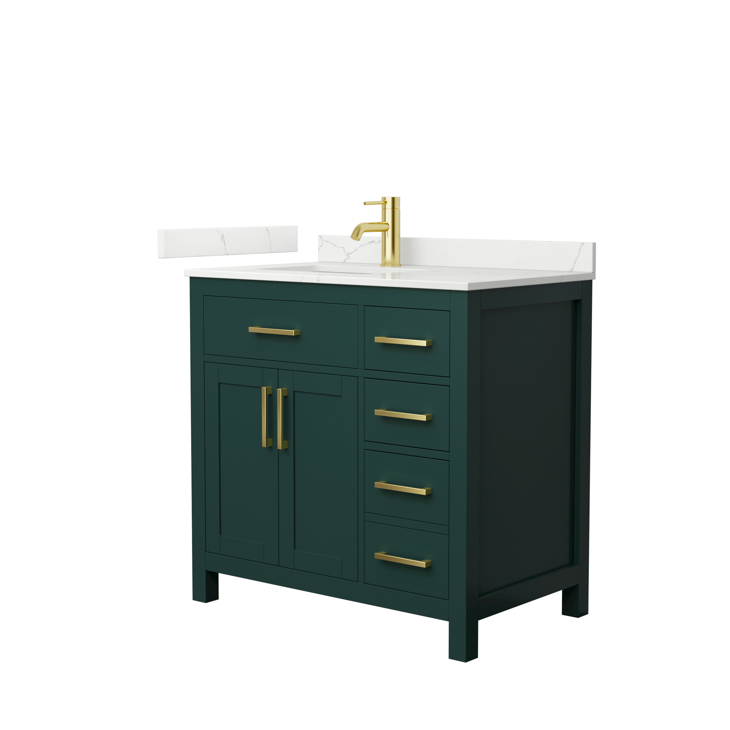 Fantastic value and classic design. The elegant Beckett vanity has it all, with quality touches like brushed nickel, brushed gold, or matte black accents, dove-tailed drawers, cultured marble counters and soft-close doors and drawers. Ample storage and a double-depth lower drawer give you plenty of room for those bathroom necessities. Do your bathroom right, with the beautiful Beckett vanity series.