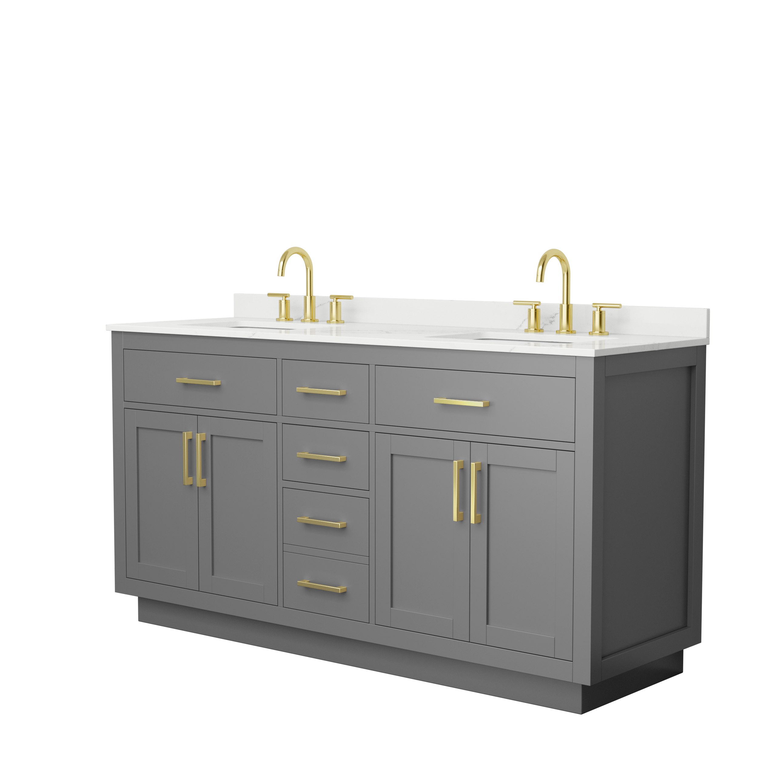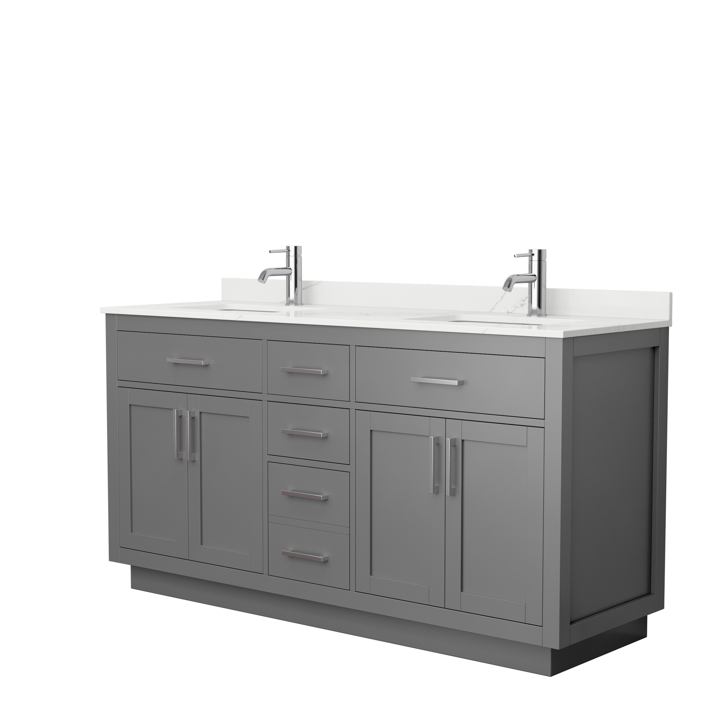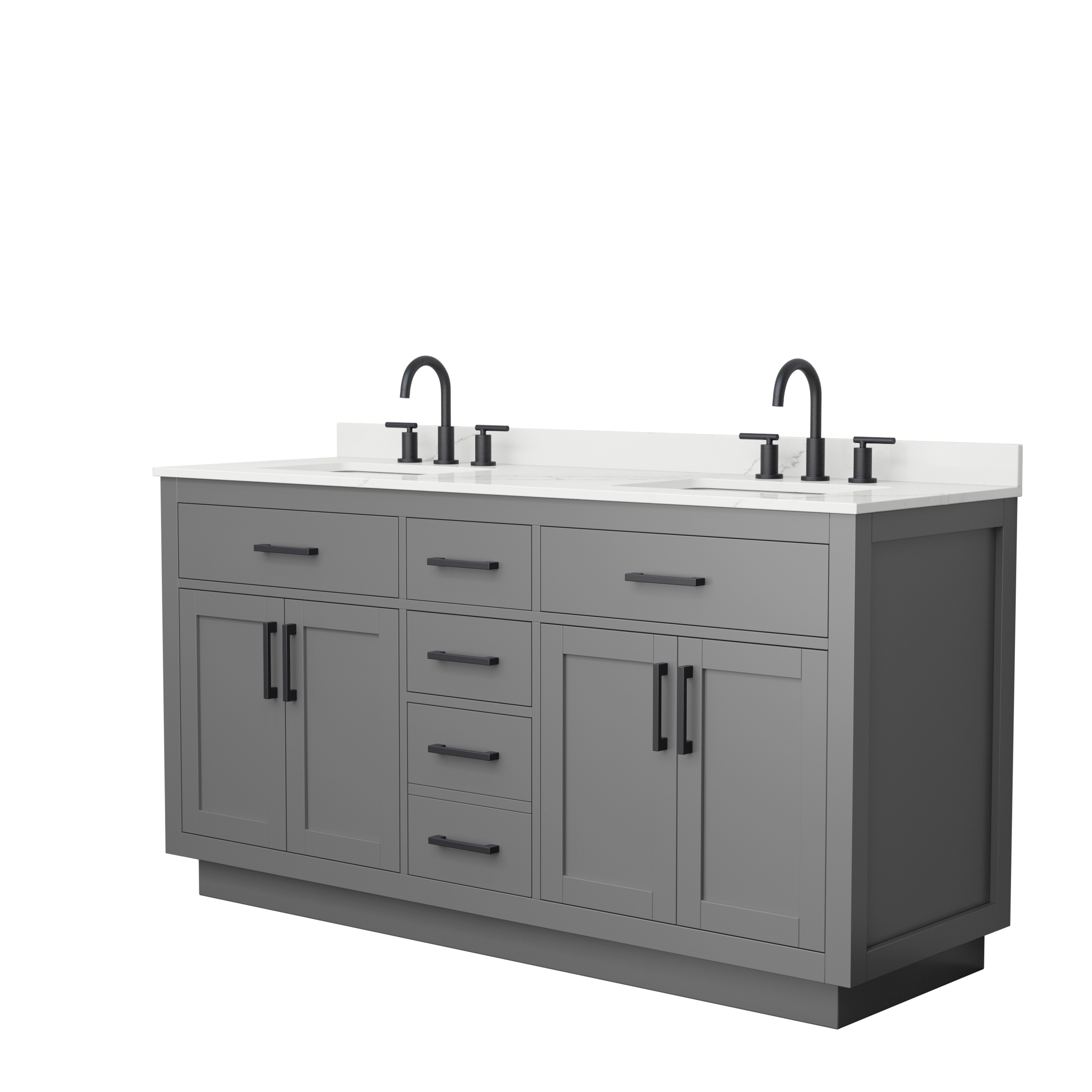 Beckett 66" Double Bathroom Vanity with Toe Kick, Quartz Counter - Dark Gray
