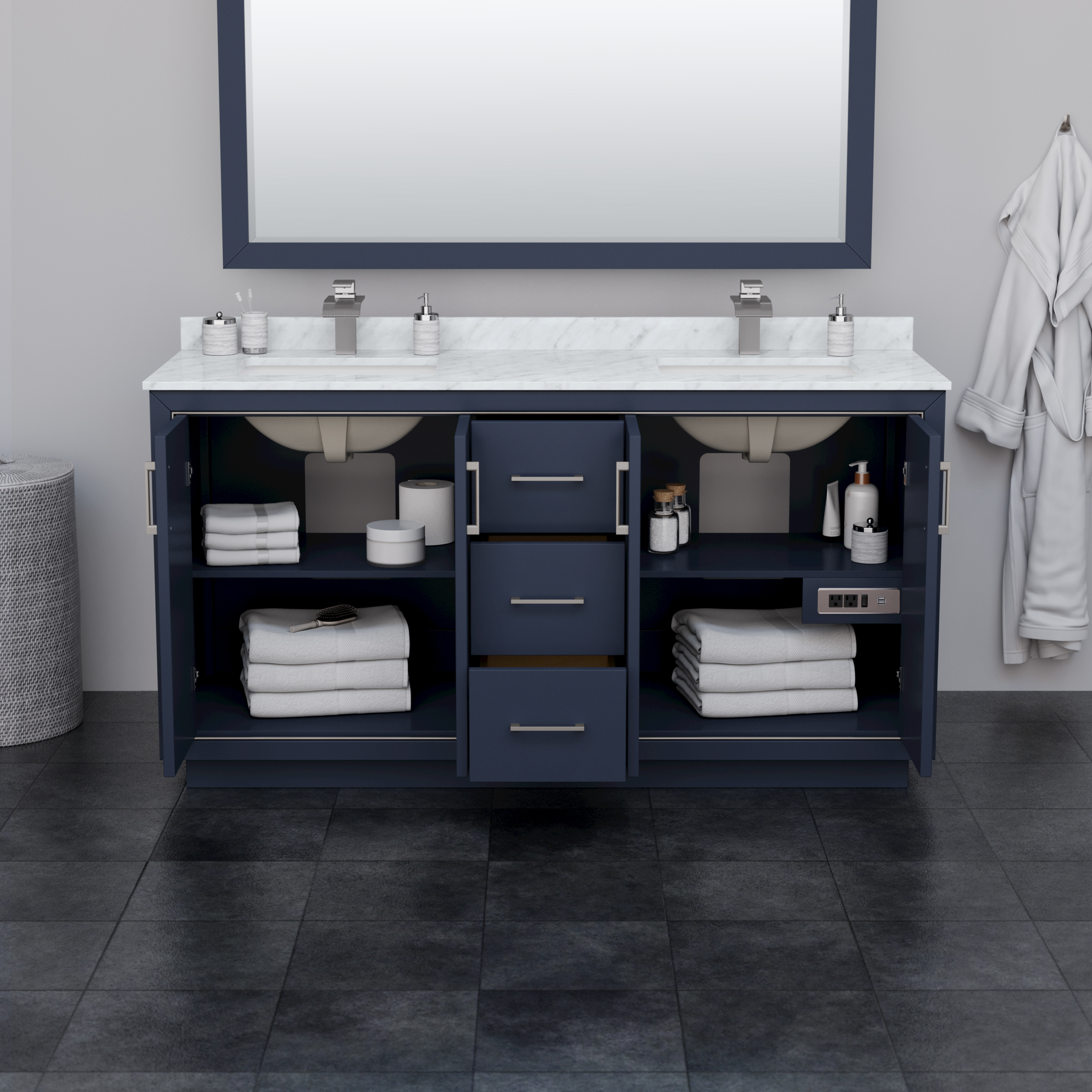 Ideal for the modern home, Icon vanities by Wyndham Collection are a cool, contemporary take on modern bathroom design, an exercise in elegance and style. Beautiful inset metal trim accents this stunning collection, which offers many choices and sizes of vanity and trim color to suit your taste. Interior details feature a power outlet with USB ports, adjustable shelves, and a cutout back for easy access to plumbing and electrical. Icon collection is available in multiple sizes and will work with a wide variety of different styles and decors.