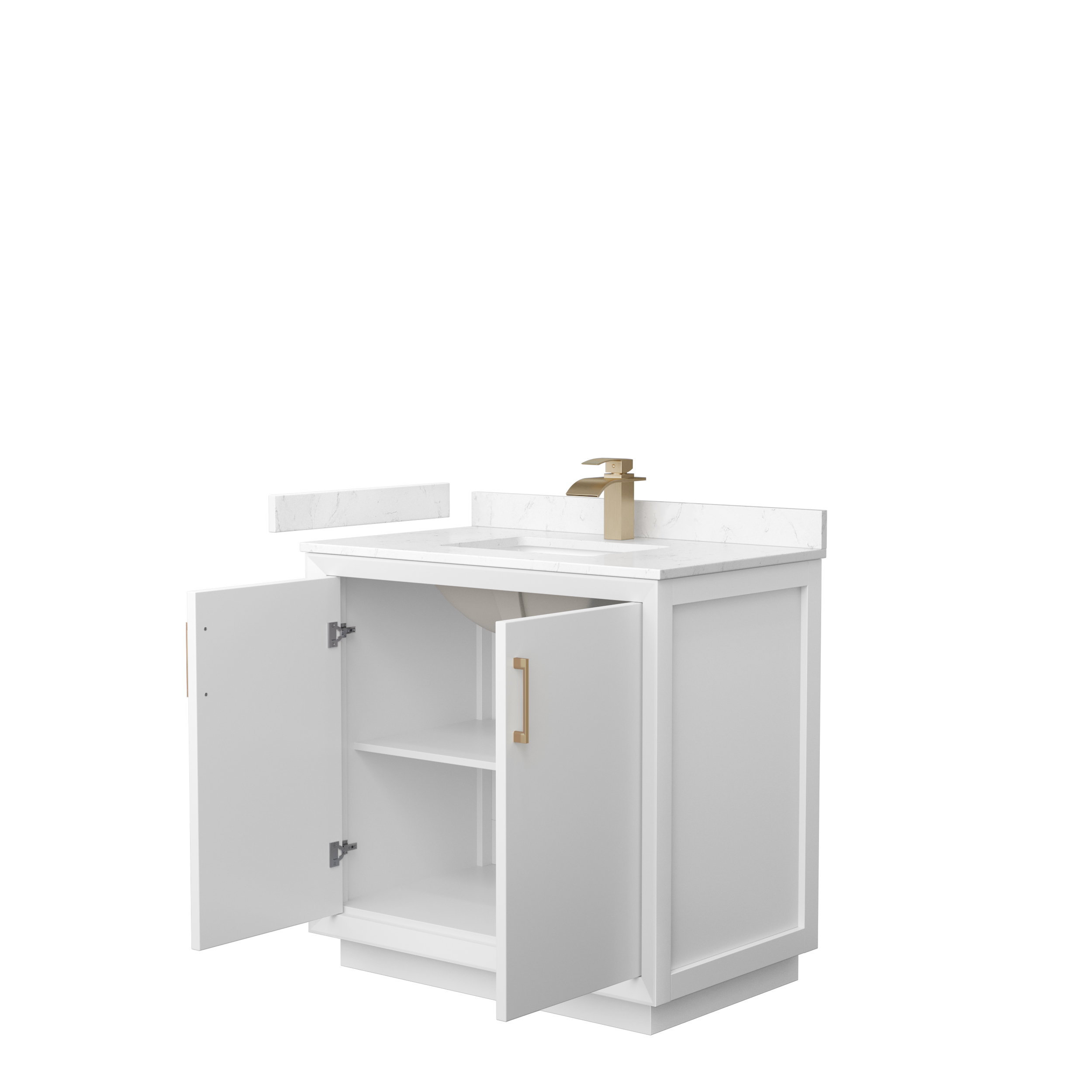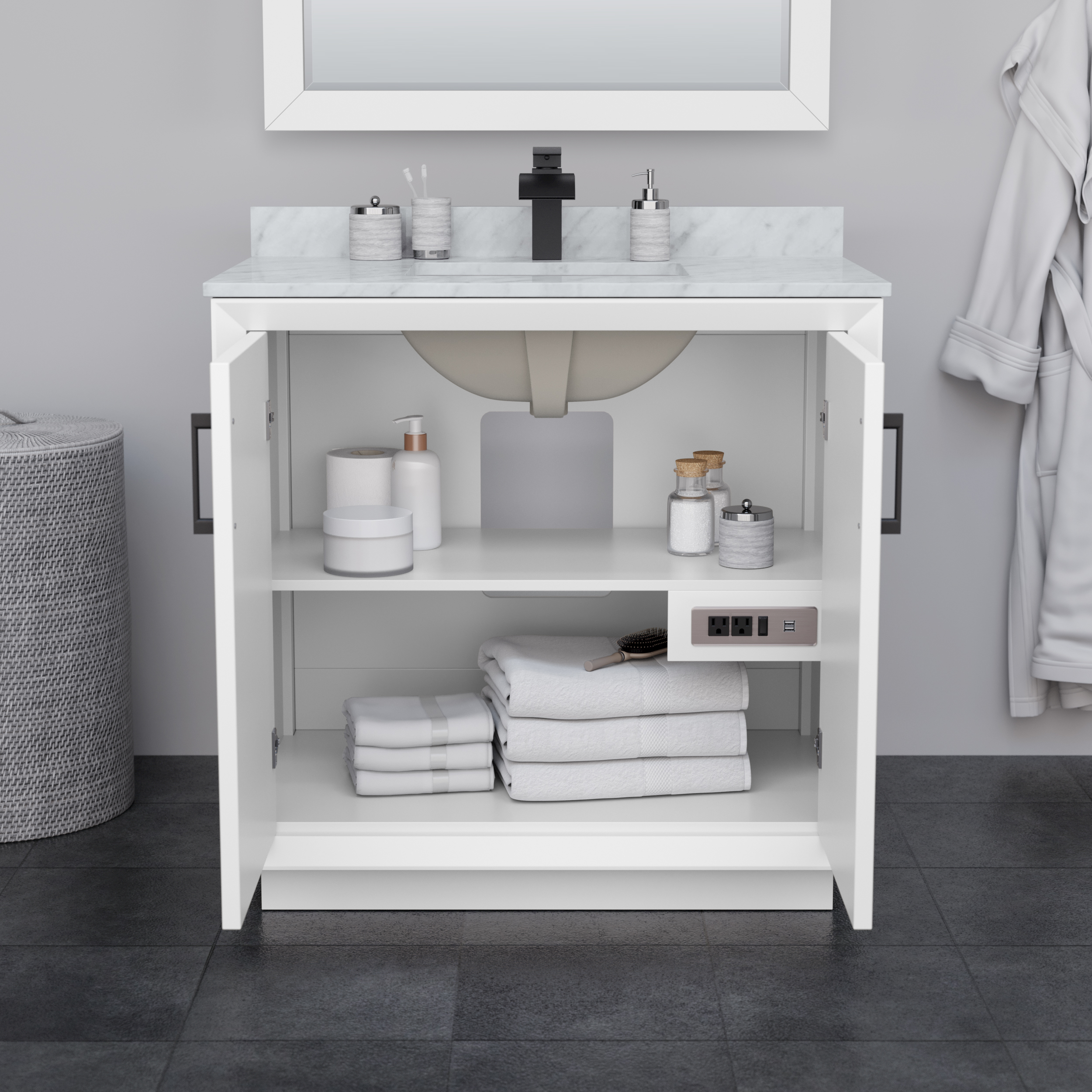 Perfect for a modern update, the Strada bathroom vanity features clean and understated contemporary lines that highlight the elegance and simplicity of this transitional vanity by Wyndham Collection. It comes well equipped with soft-close doors and drawers, ample storage space, 110V power and USB outlets, adjustable shelves, and a cutout back for easy access to plumbing and electrical.