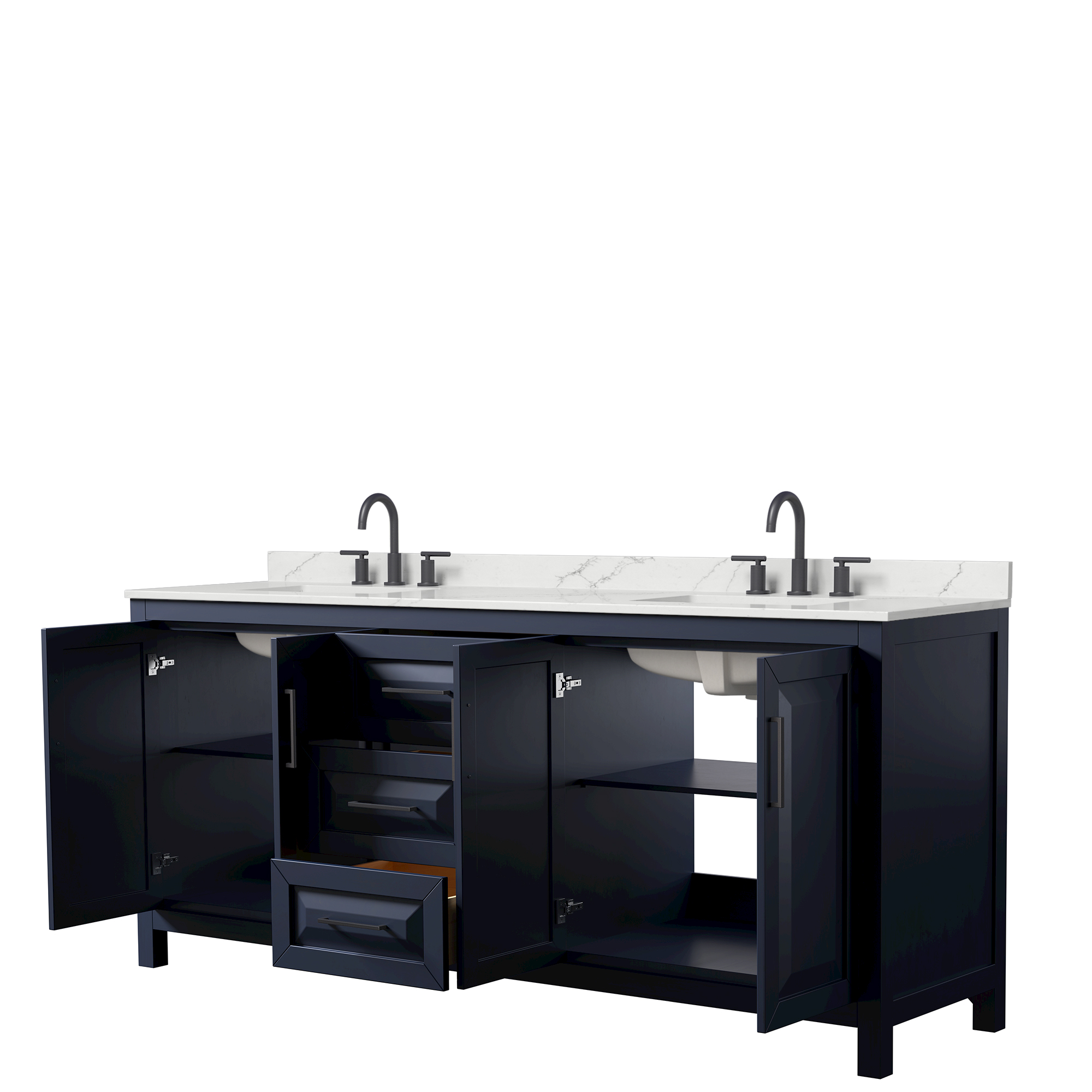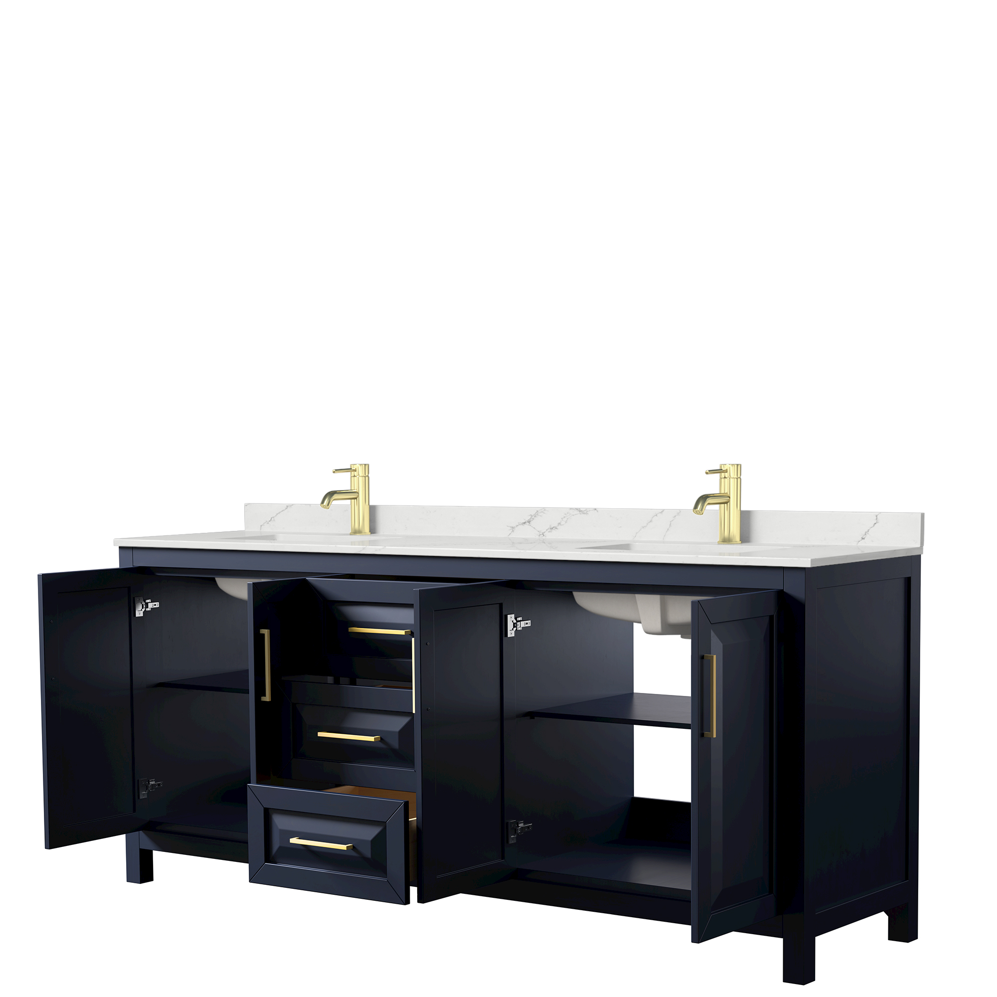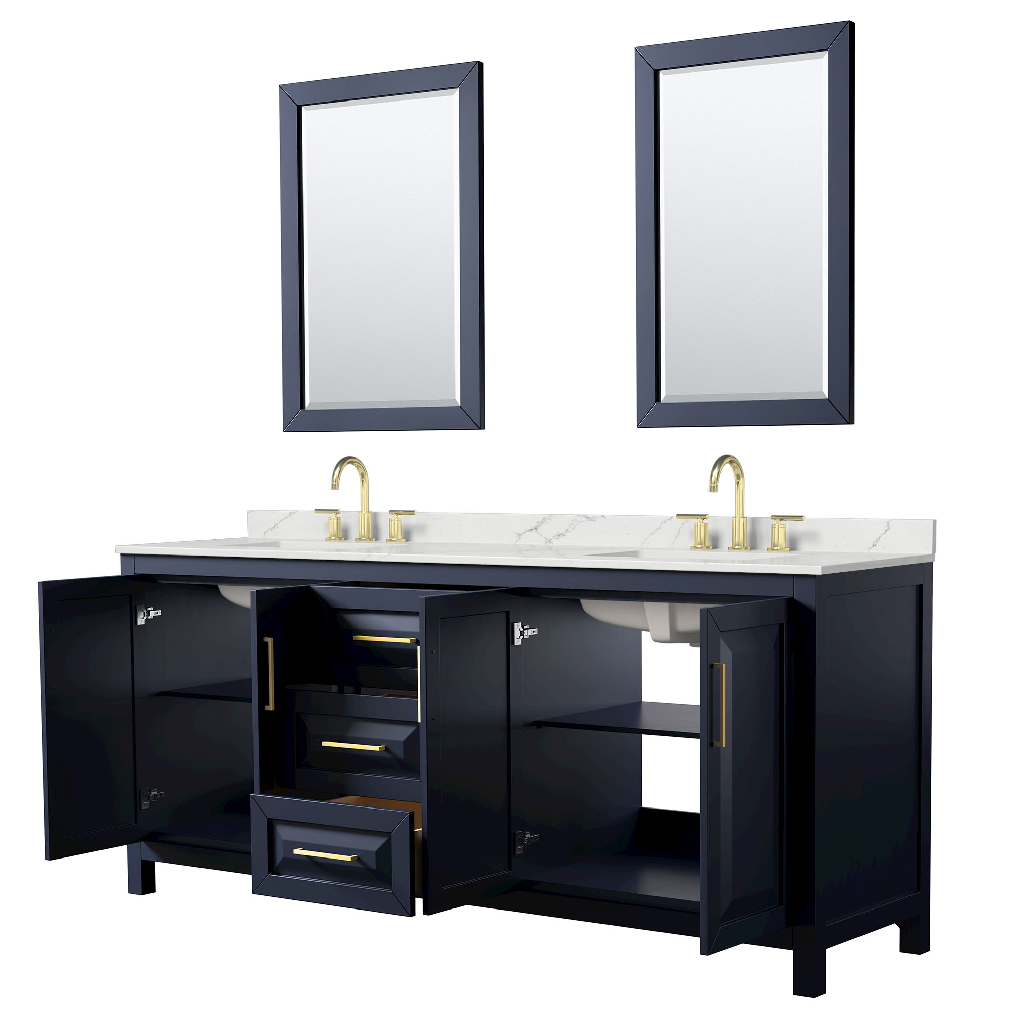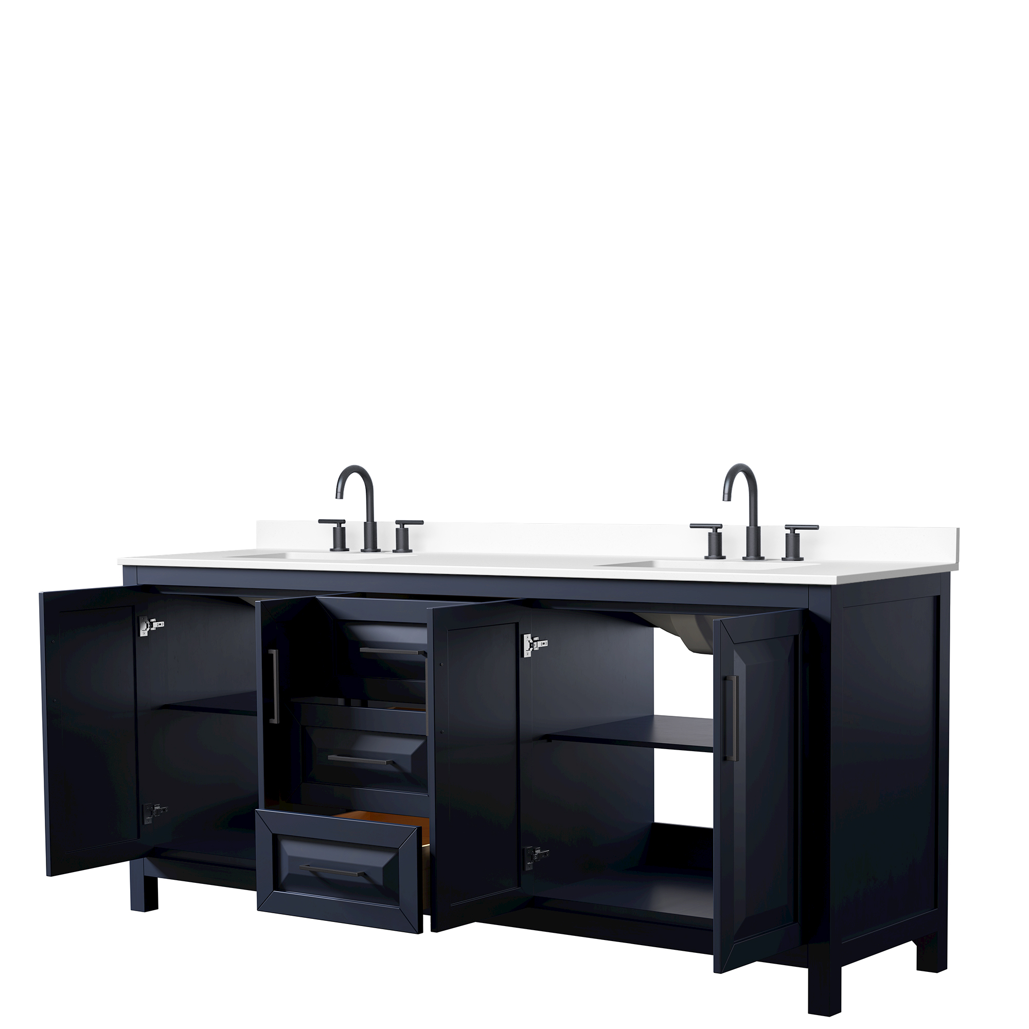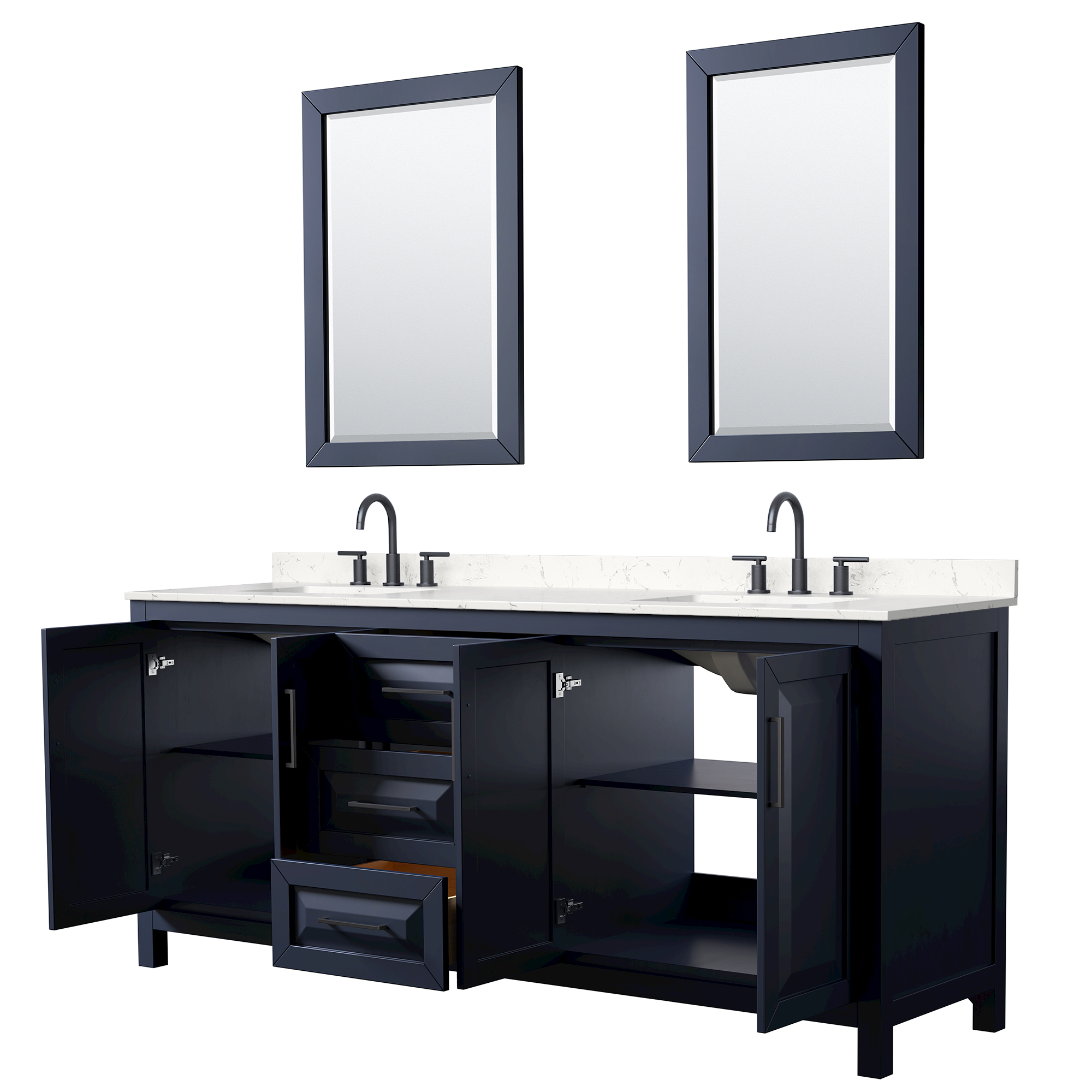 The beautiful Daria collection vanities stand out in any bathroom with strong, clean lines, raised panels and elegant counters with square sinks. There's plenty of cabinet space, the fully extending drawers are dovetail construction, and matte black or brushed gold finish detailing completes the look. Daria vanities deftly combine the function of today with a nod to the elegance of the past. It's the new modern - classic styling with a contemporary twist.
