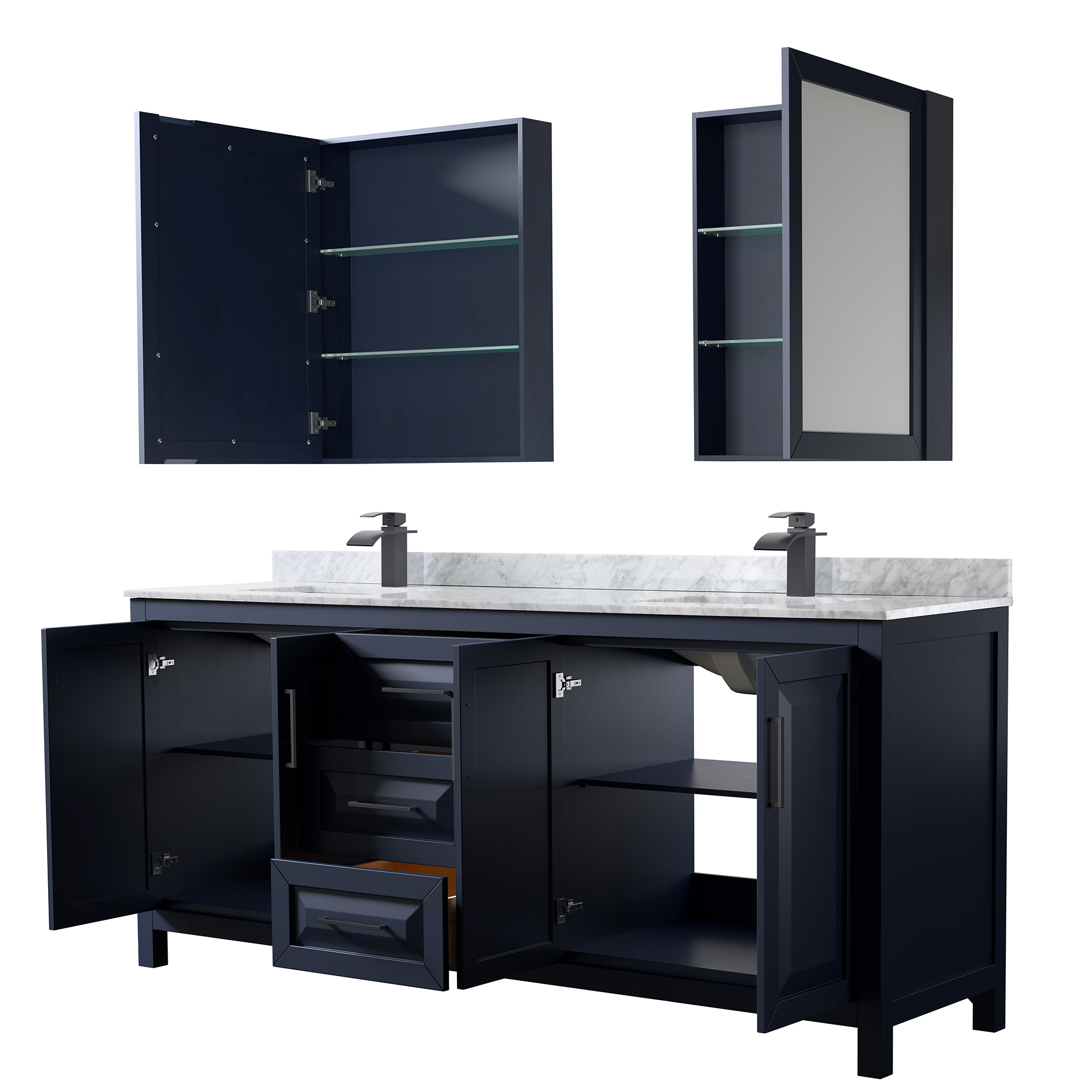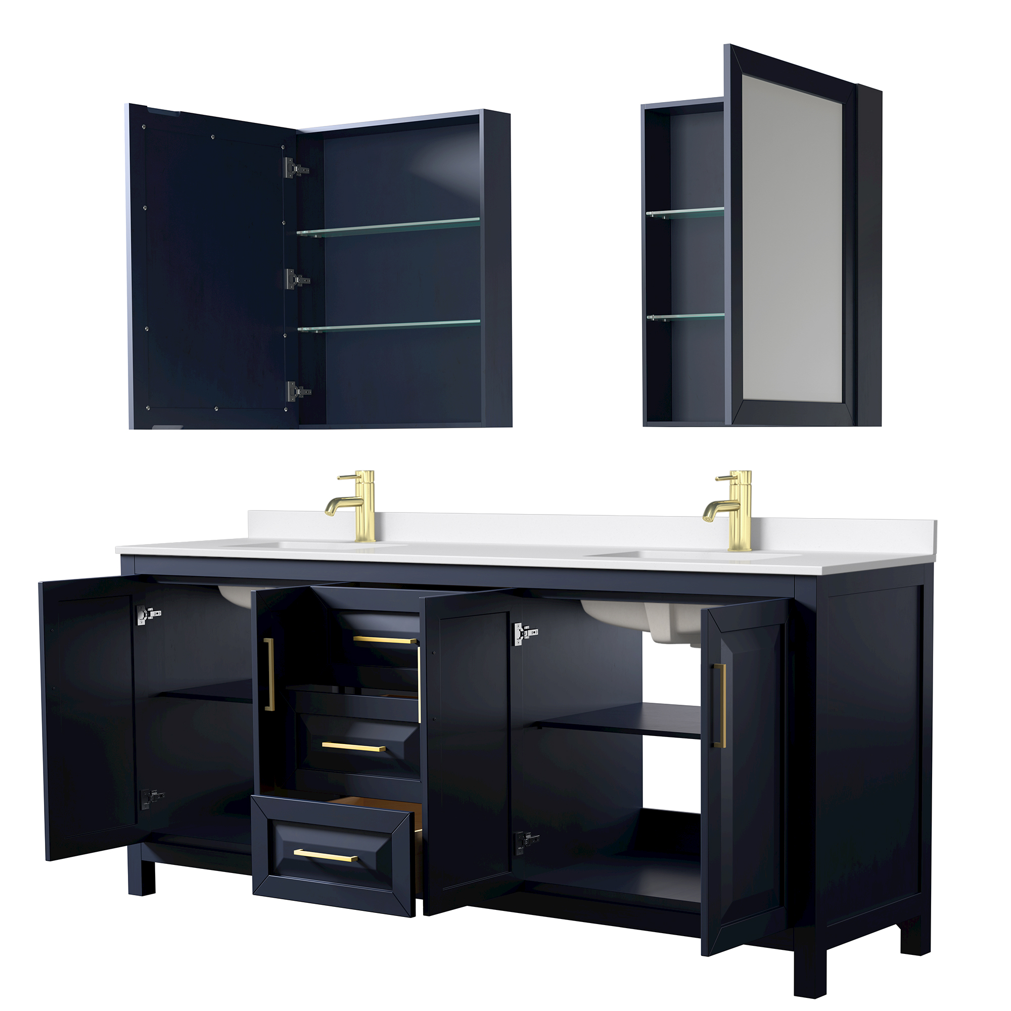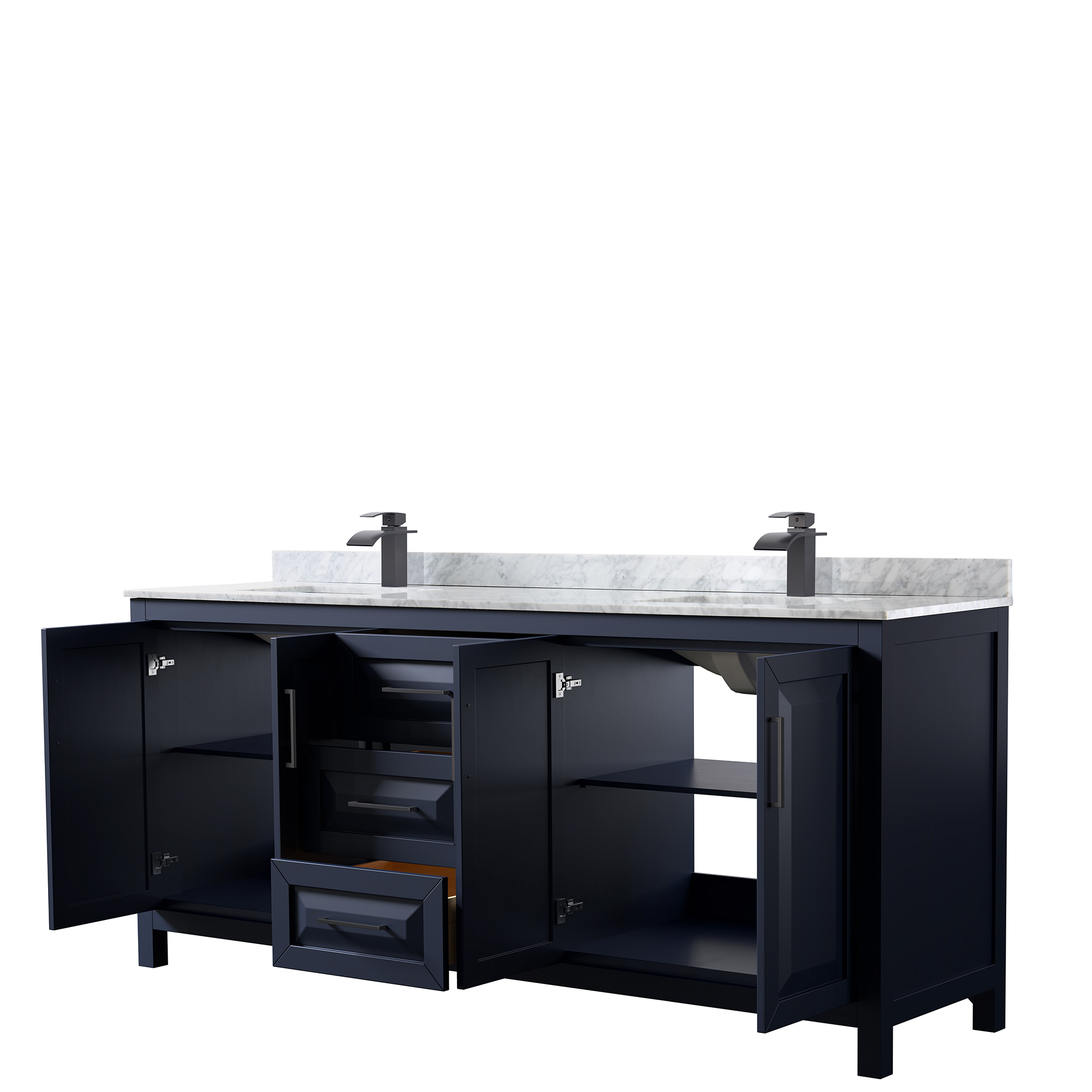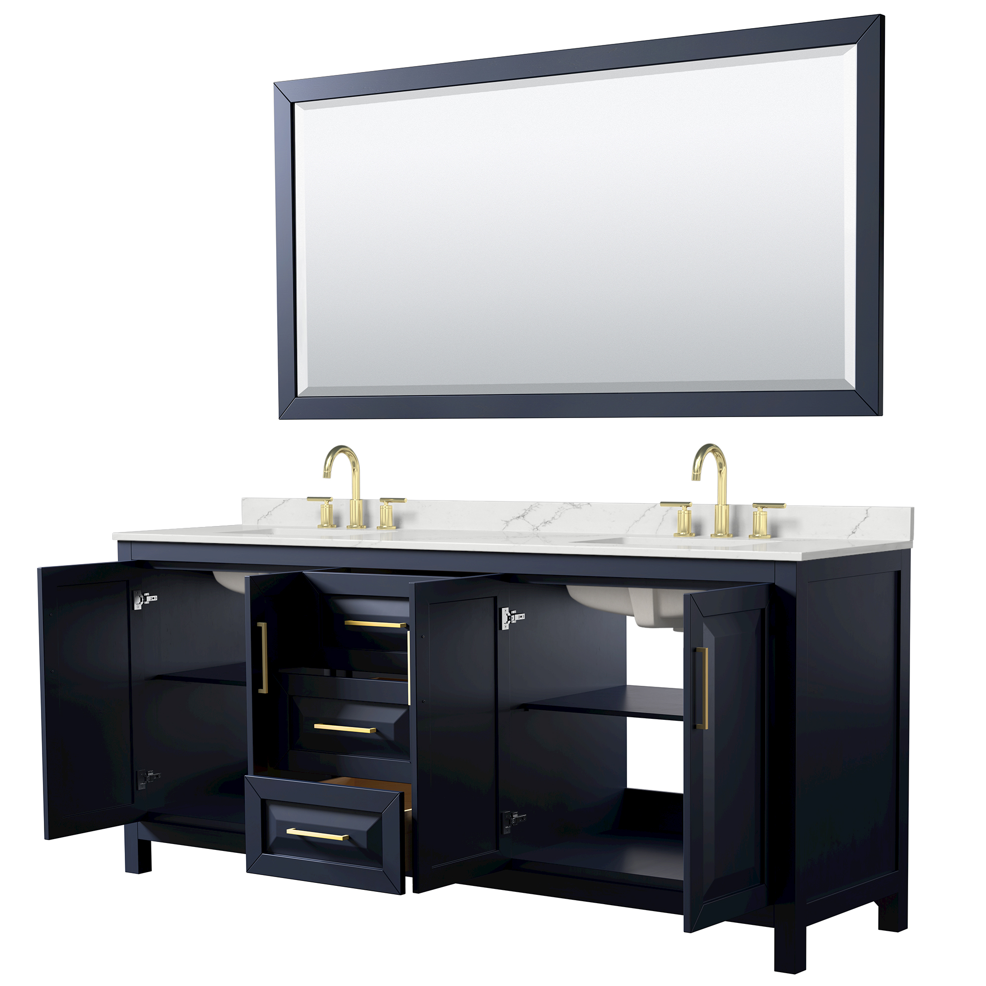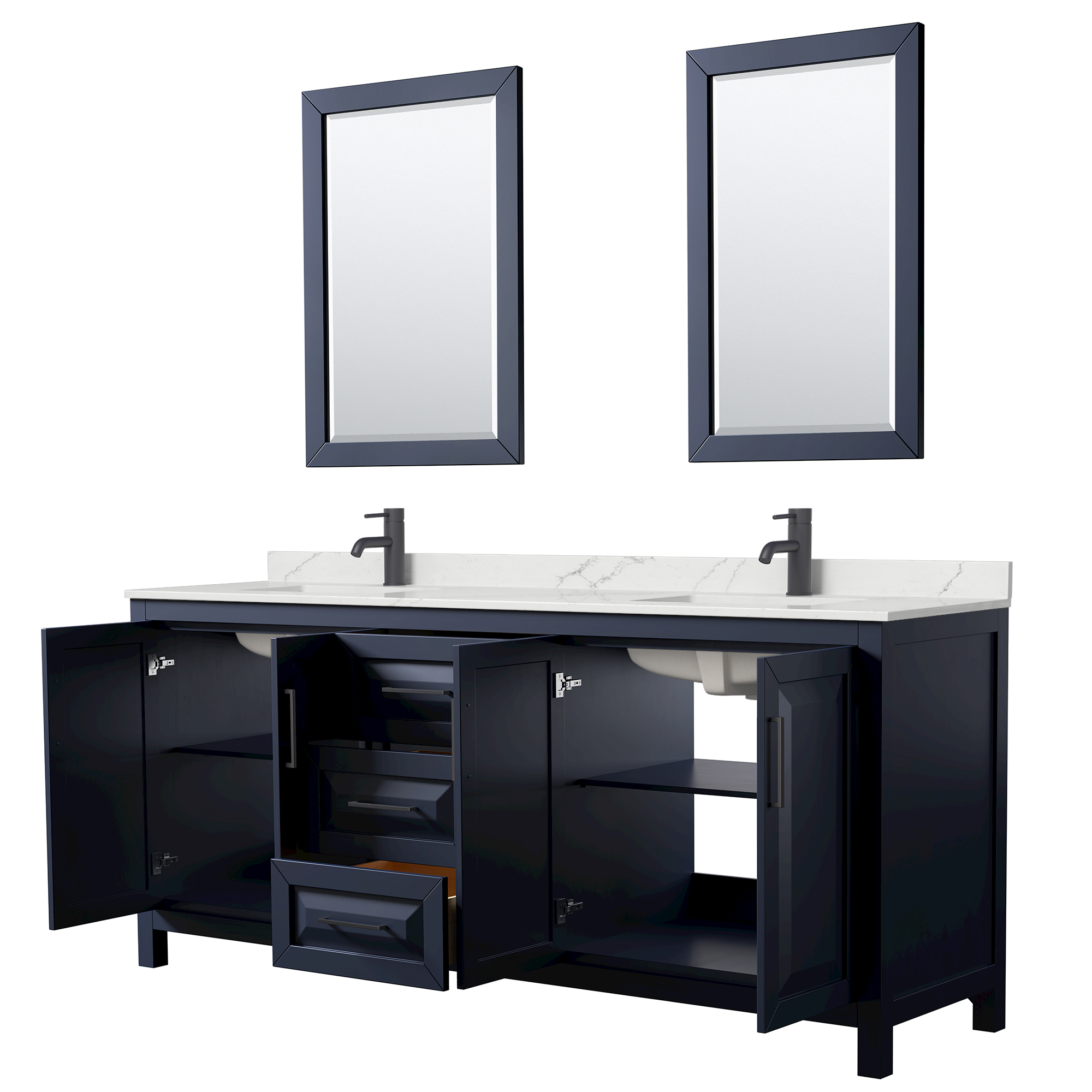 The beautiful Daria collection vanities stand out in any bathroom with strong, clean lines, raised panels and elegant counters with square sinks. There's plenty of cabinet space, the fully extending drawers are dovetail construction, and matte black or brushed gold finish detailing completes the look. Daria vanities deftly combine the function of today with a nod to the elegance of the past. It's the new modern - classic styling with a contemporary twist.