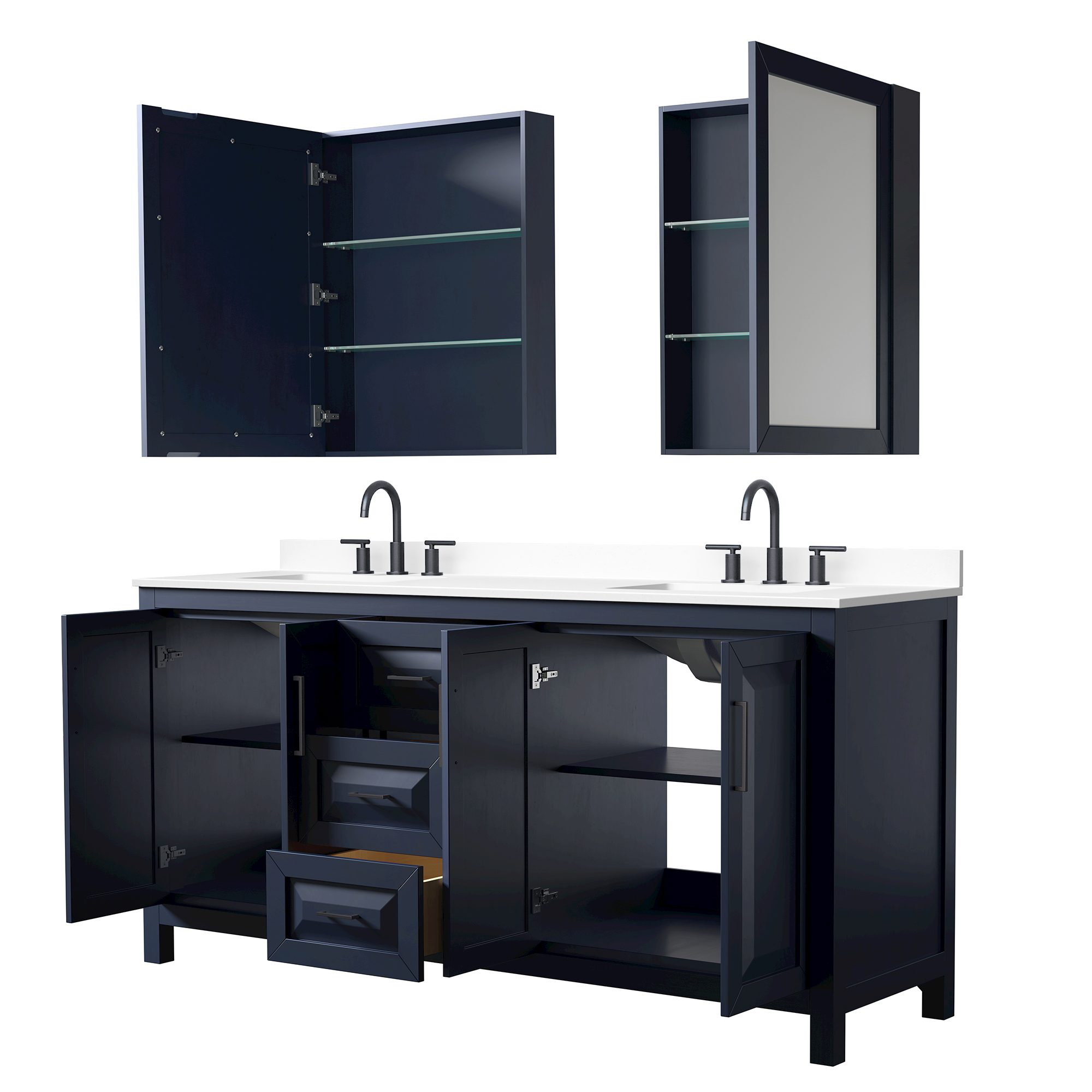 Daria Double Bathroom Vanity (72" Model), Drag to Rotate or Open