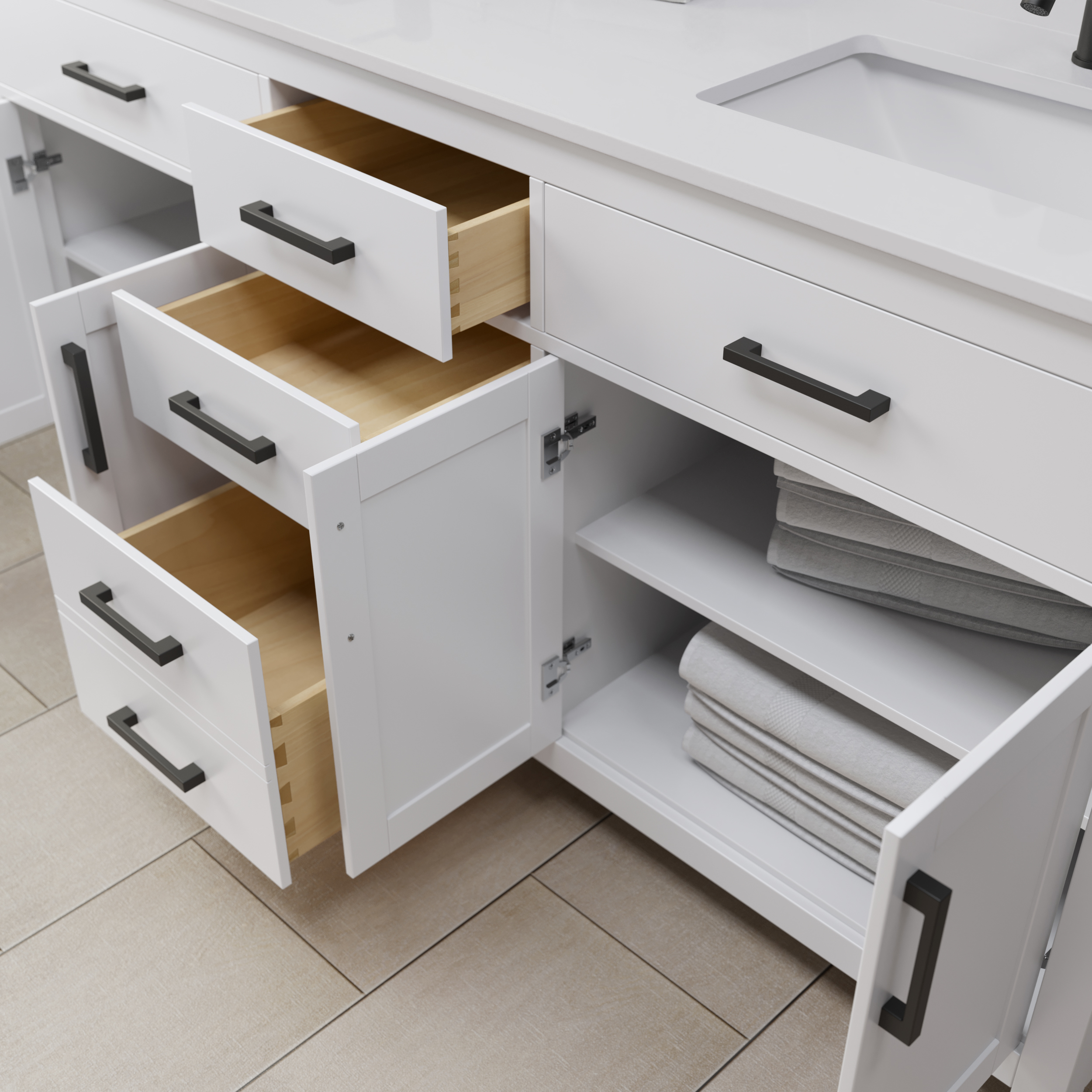 • Concealed soft-close door hinges