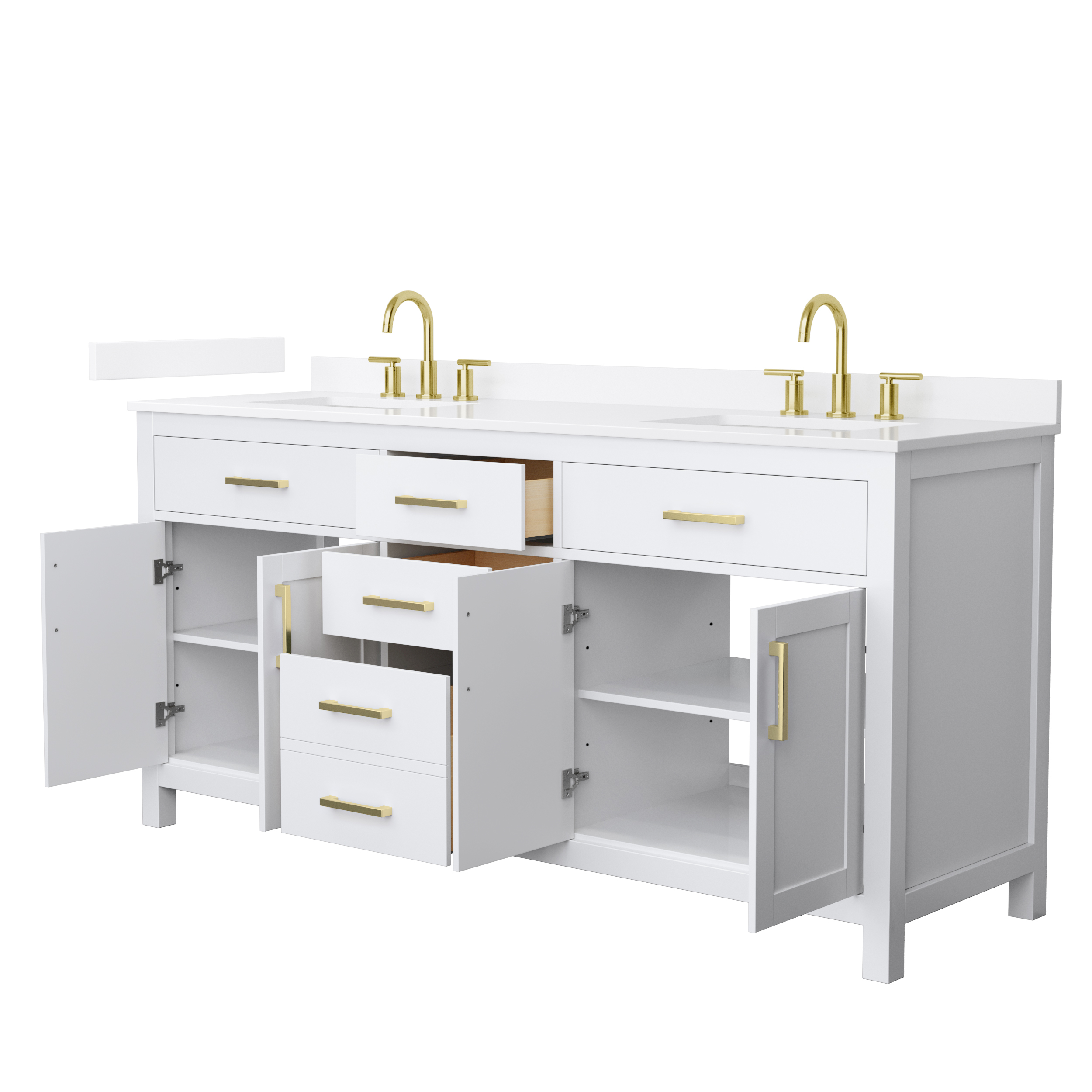 Fantastic value and classic design. The elegant Beckett vanity has it all, with quality touches like brushed nickel, brushed gold, or matte black accents, dove-tailed drawers, cultured marble counters and soft-close doors and drawers. Ample storage and a double-depth lower drawer give you plenty of room for those bathroom necessities. Do your bathroom right, with the beautiful Beckett vanity series.