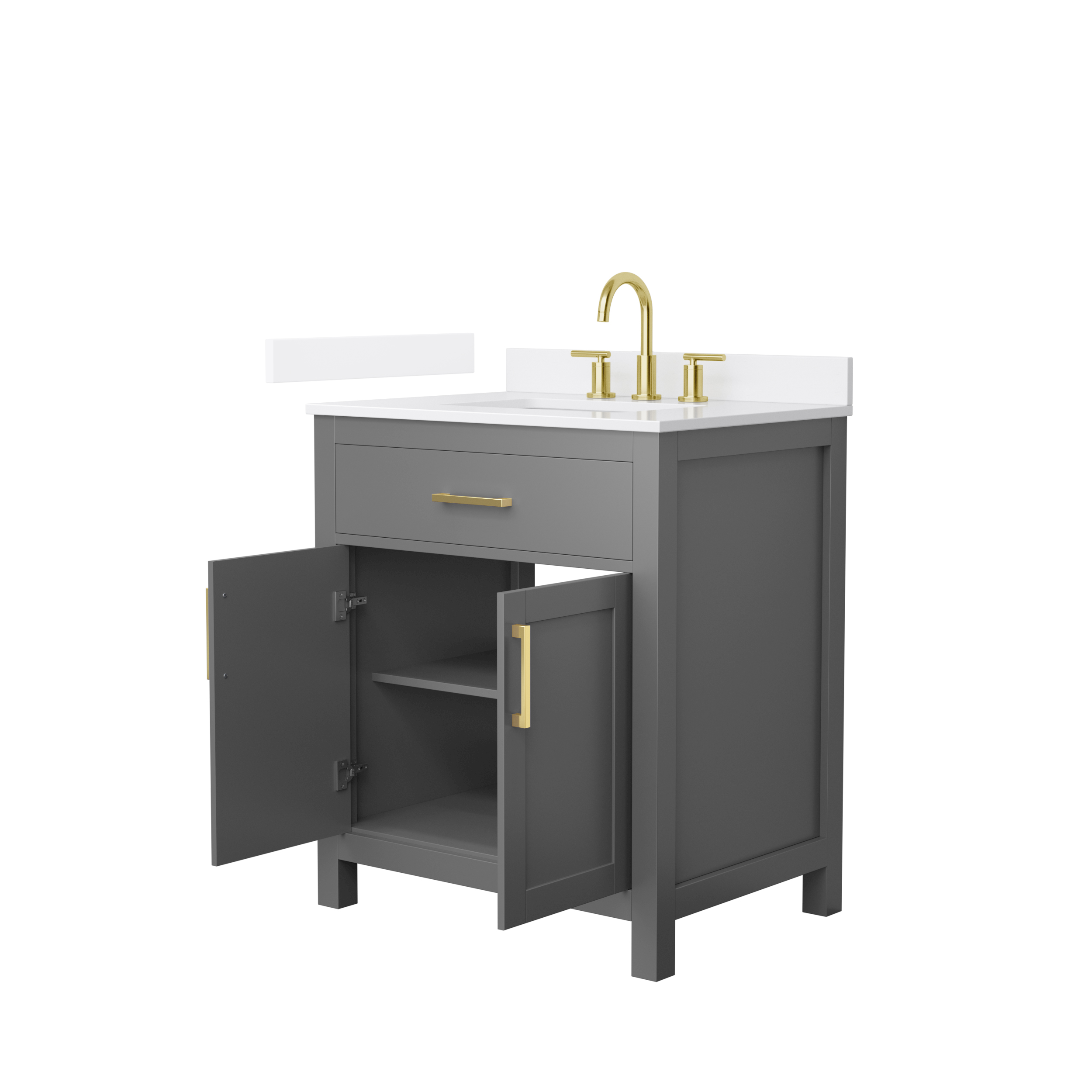 Fantastic value and classic design. The elegant Beckett vanity has it all, with quality touches like brushed nickel, brushed gold, or matte black accents, cultured marble counters and soft-close doors. Ample storage to give you plenty of room for those bathroom necessities. Do your bathroom right, with the beautiful Beckett vanity series.