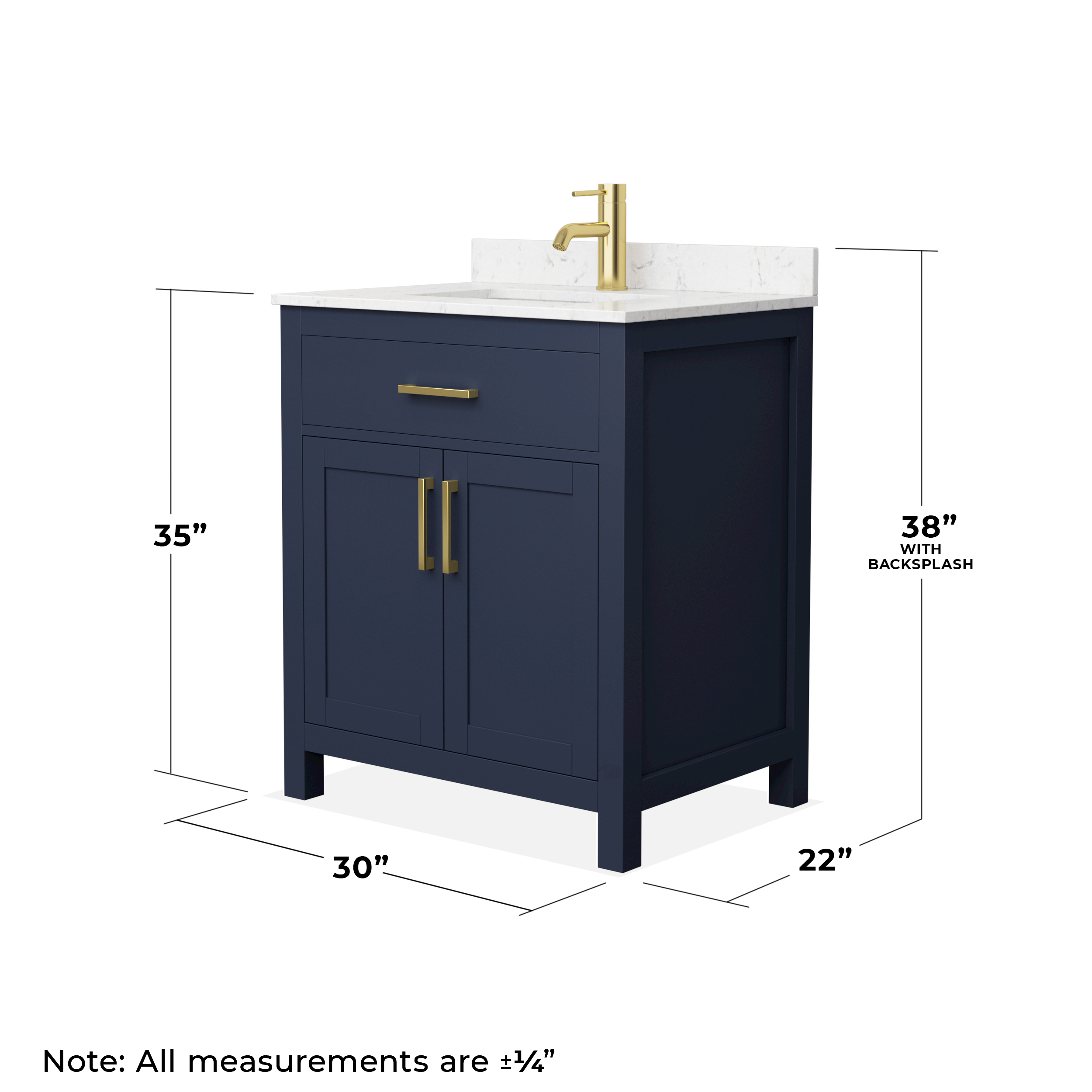 Fantastic value and classic design. The elegant Beckett vanity has it all, with quality touches like brushed nickel, brushed gold, or matte black accents, cultured marble counters and soft-close doors. Ample storage to give you plenty of room for those bathroom necessities. Do your bathroom right, with the beautiful Beckett vanity series.