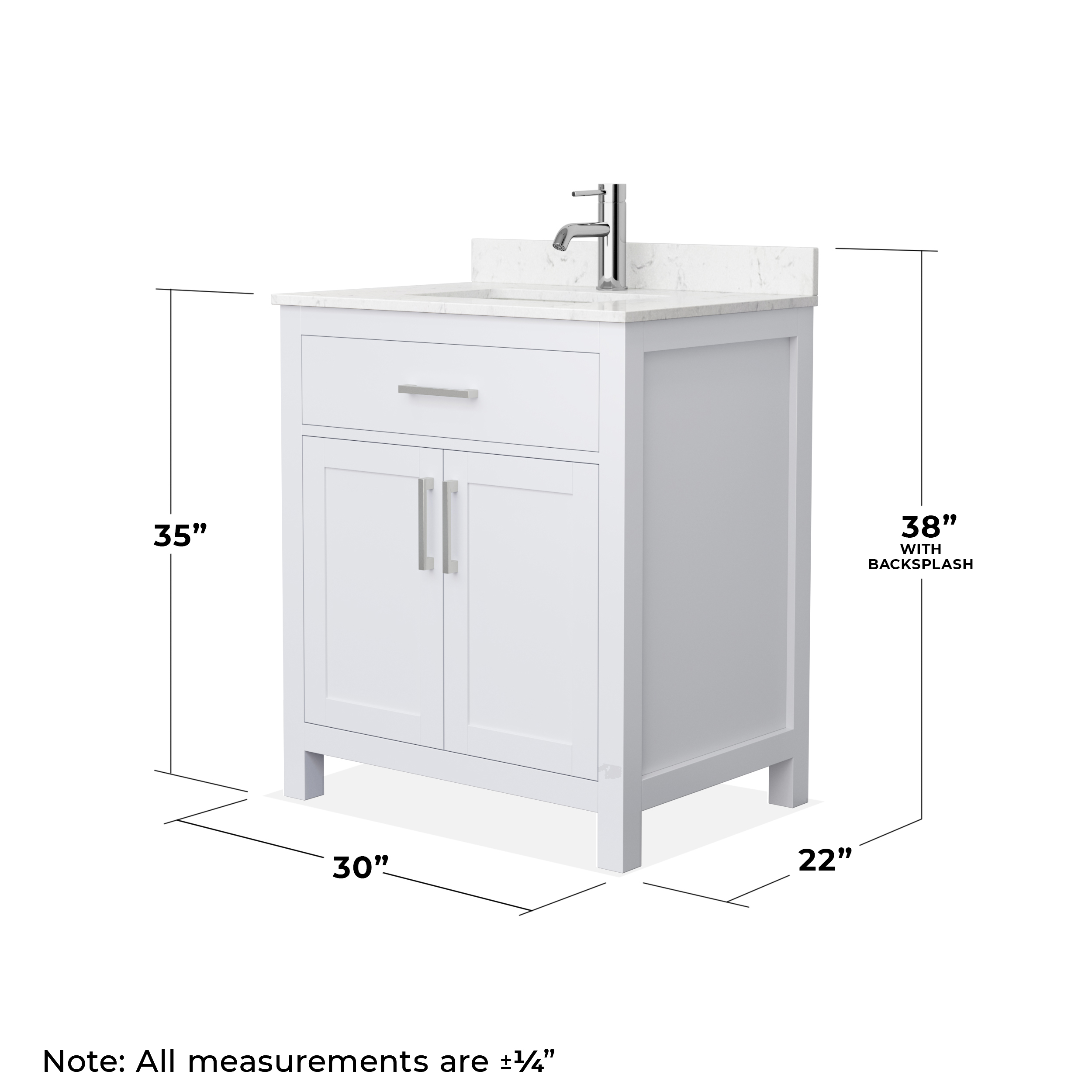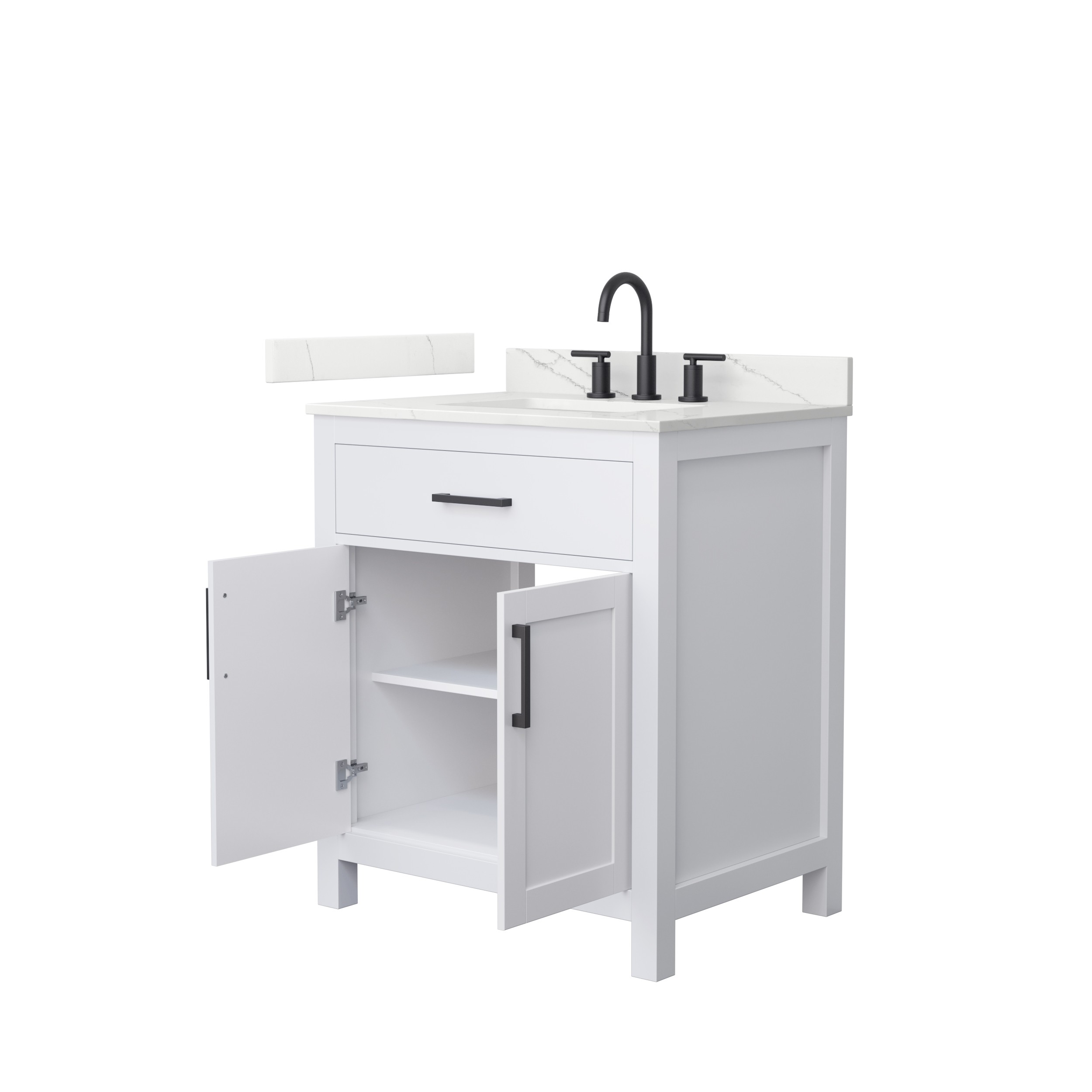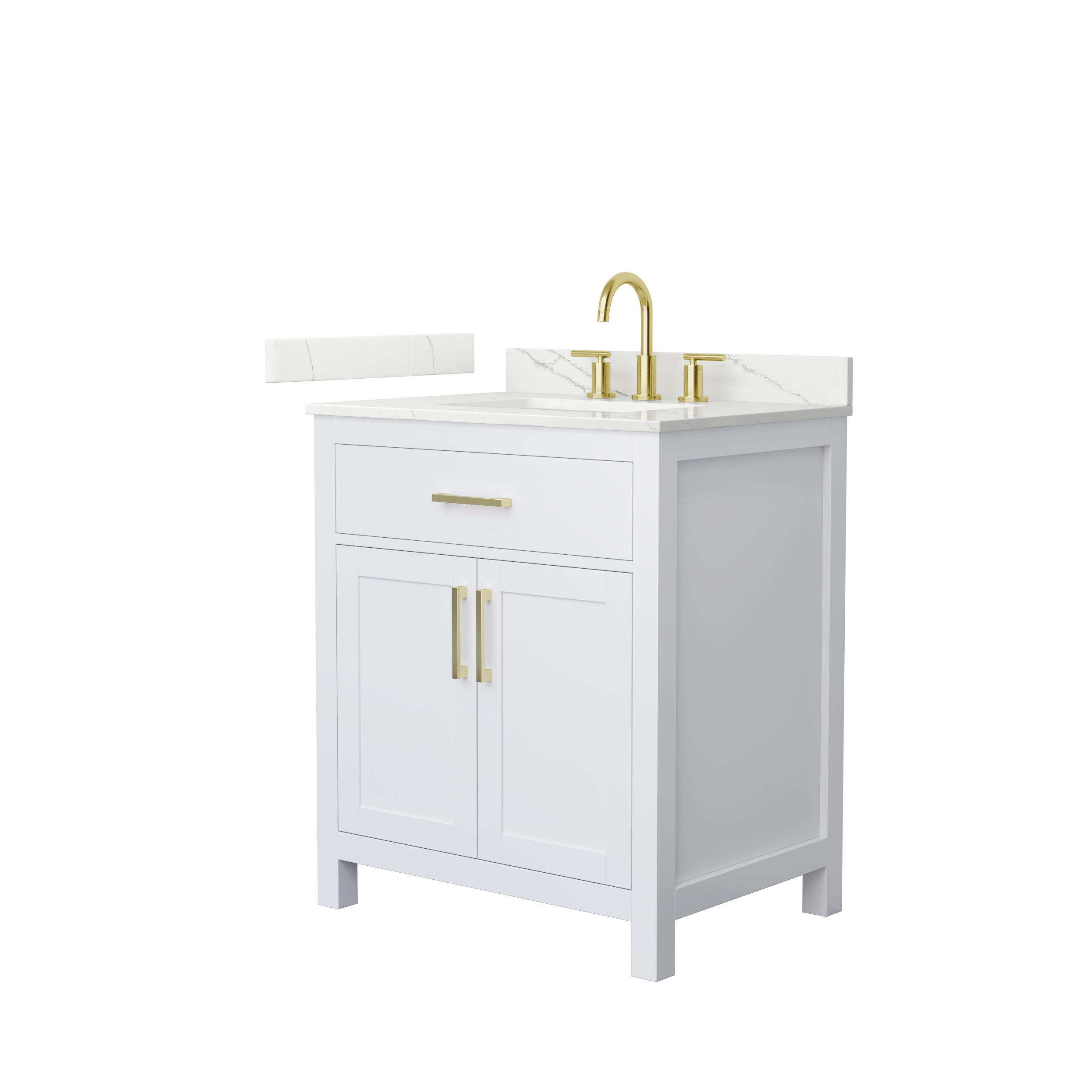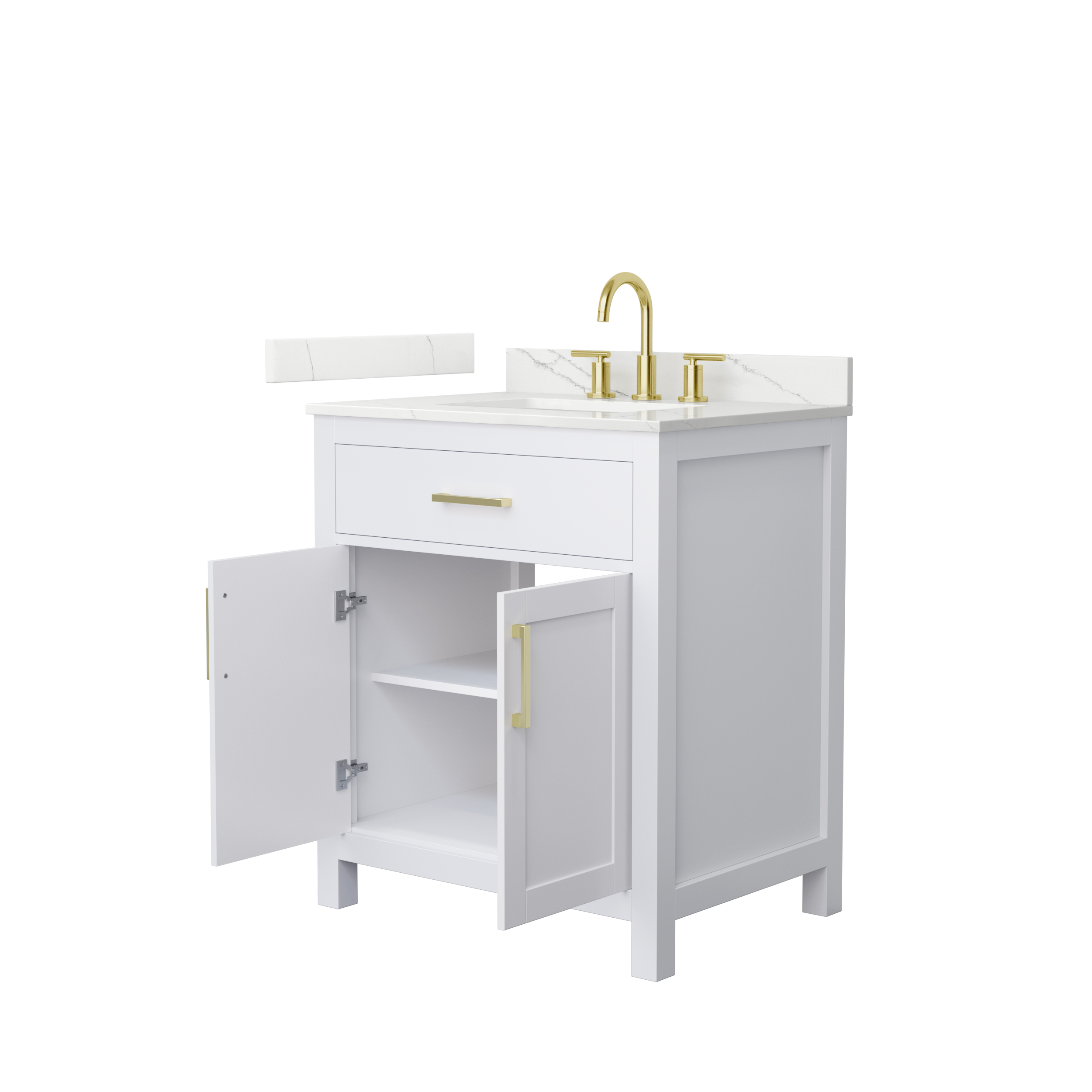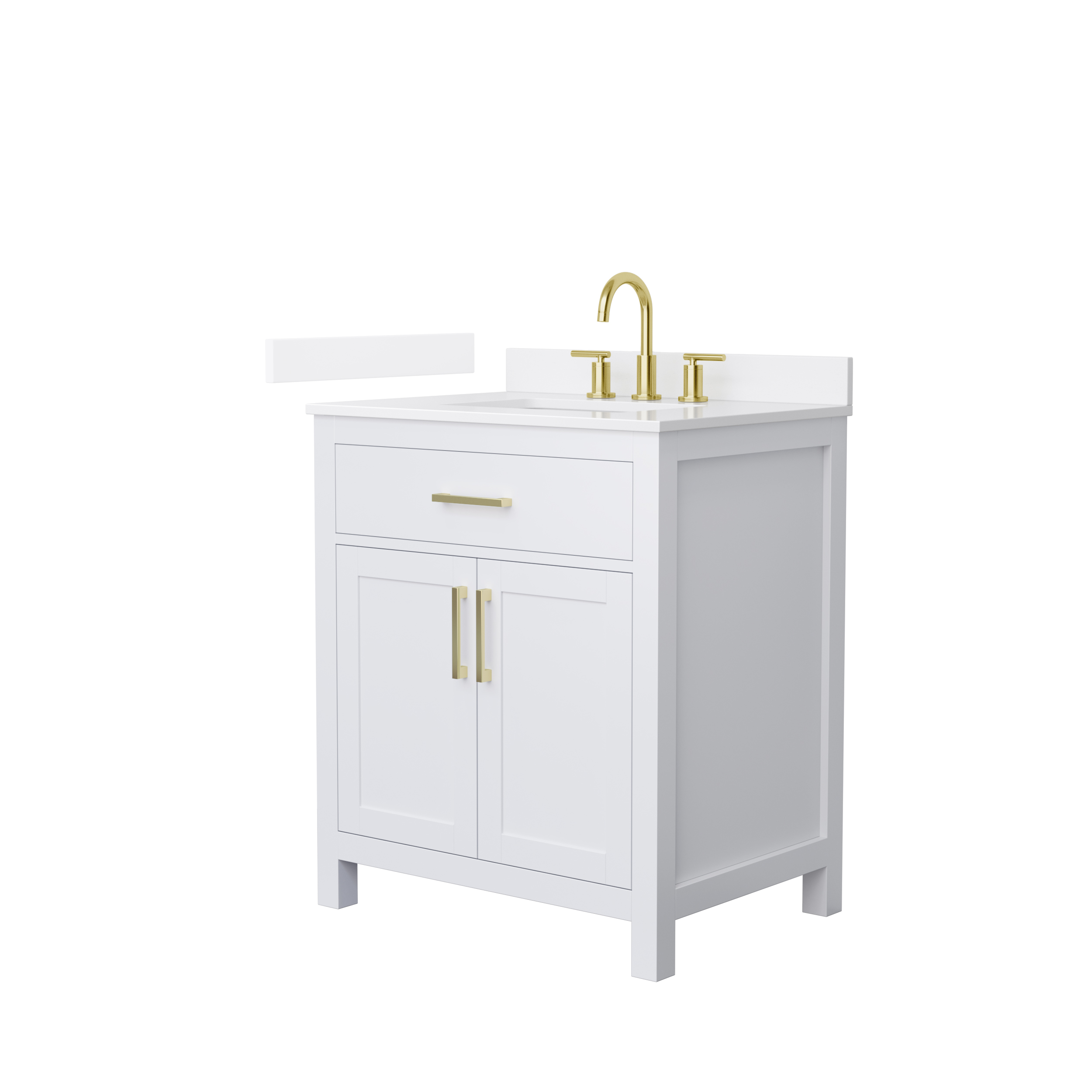 Fantastic value and classic design. The elegant Beckett vanity has it all, with quality touches like brushed nickel, brushed gold, or matte black accents, cultured marble counters and soft-close doors. Ample storage to give you plenty of room for those bathroom necessities. Do your bathroom right, with the beautiful Beckett vanity series.
