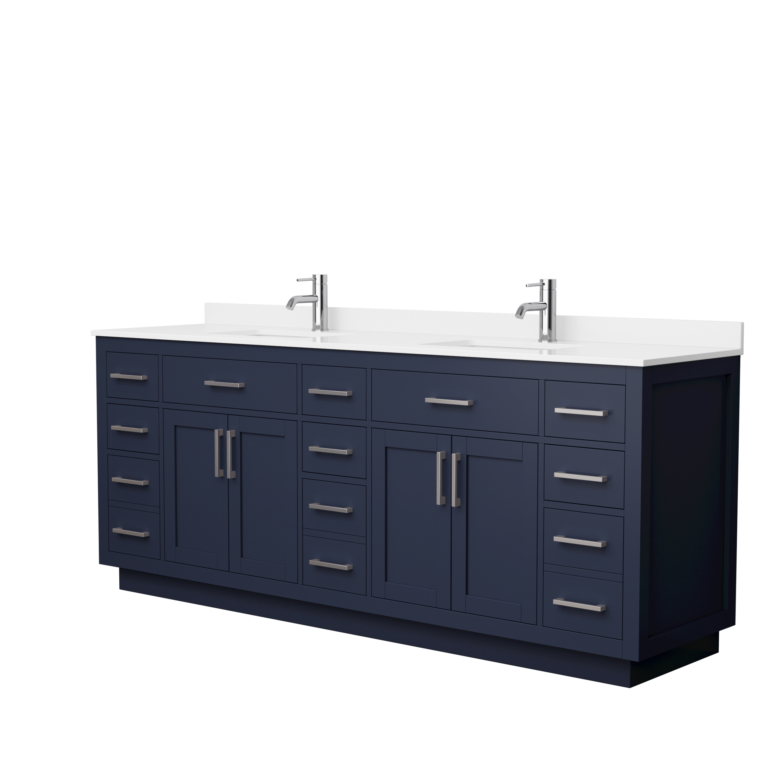 Beckett 84" Double Bathroom Vanity with Toe Kick, Quartz Counter - Dark Blue