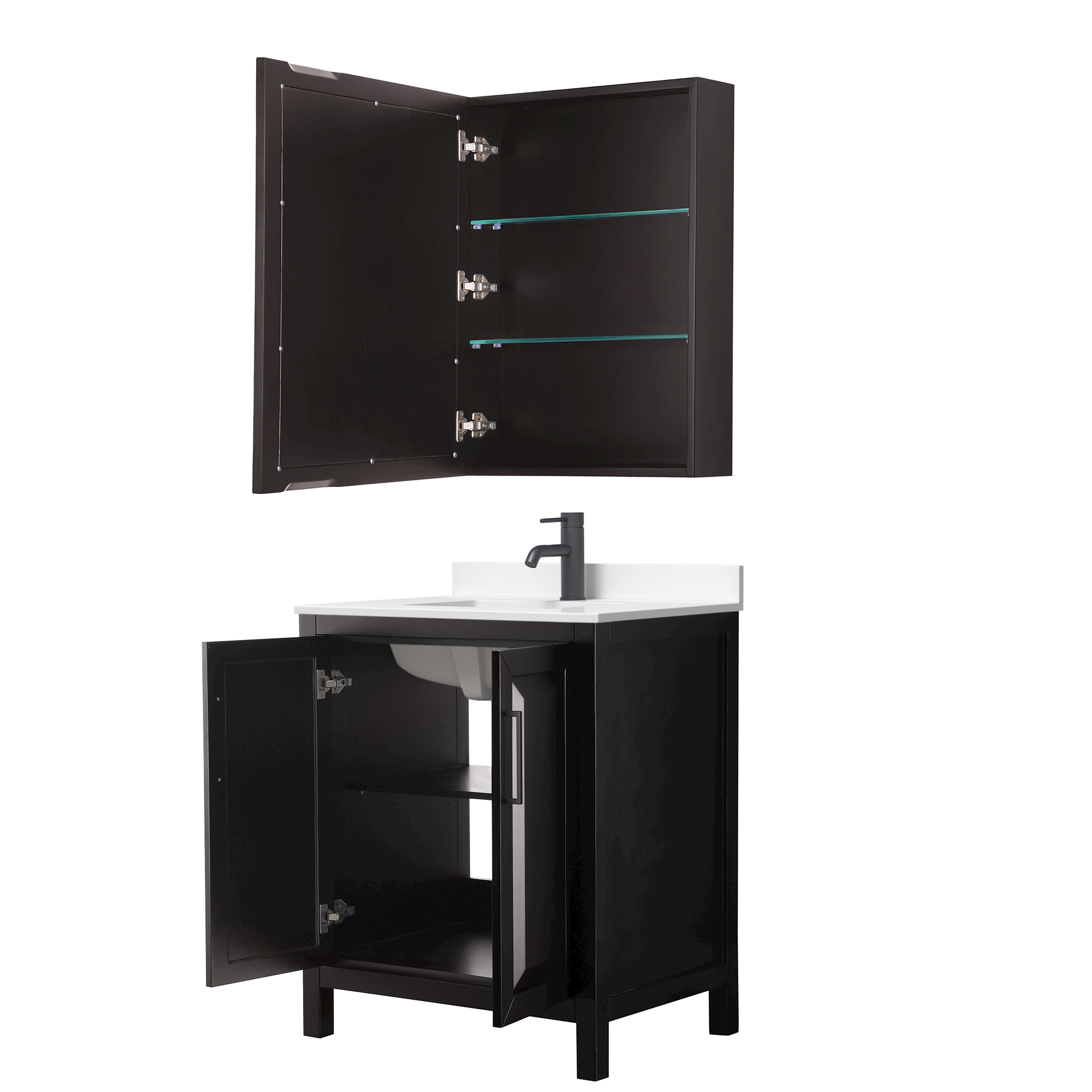 The beautiful Daria collection vanities stand out in any bathroom with strong, clean lines, raised panels and elegant counters with square sinks. There's plenty of cabinet space, the doors are soft-close construction, and polished chrome or matte black finish detailing completes the look. Daria vanities deftly combine the function of today with a nod to the elegance of the past. It's the new modern - classic styling with a contemporary twist.