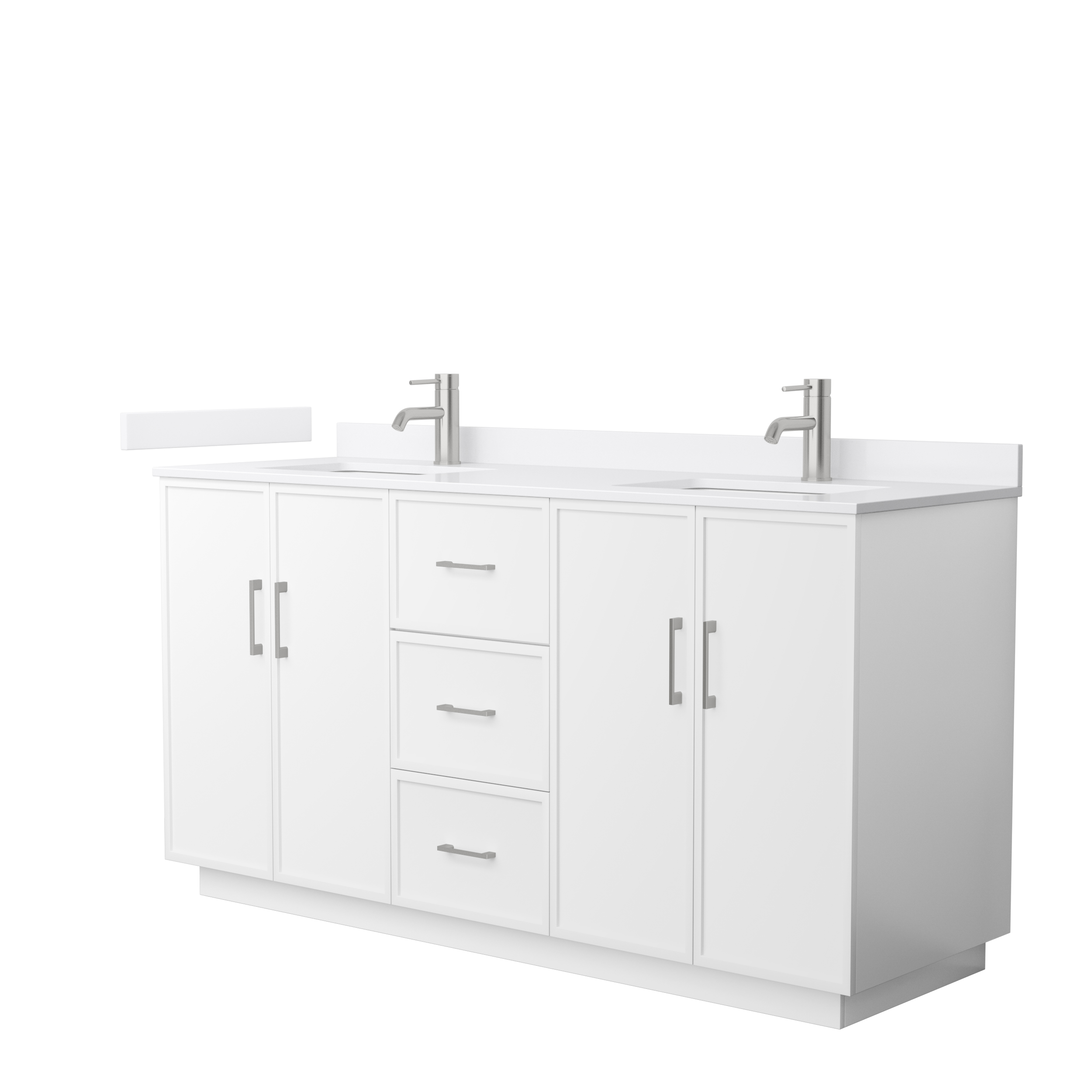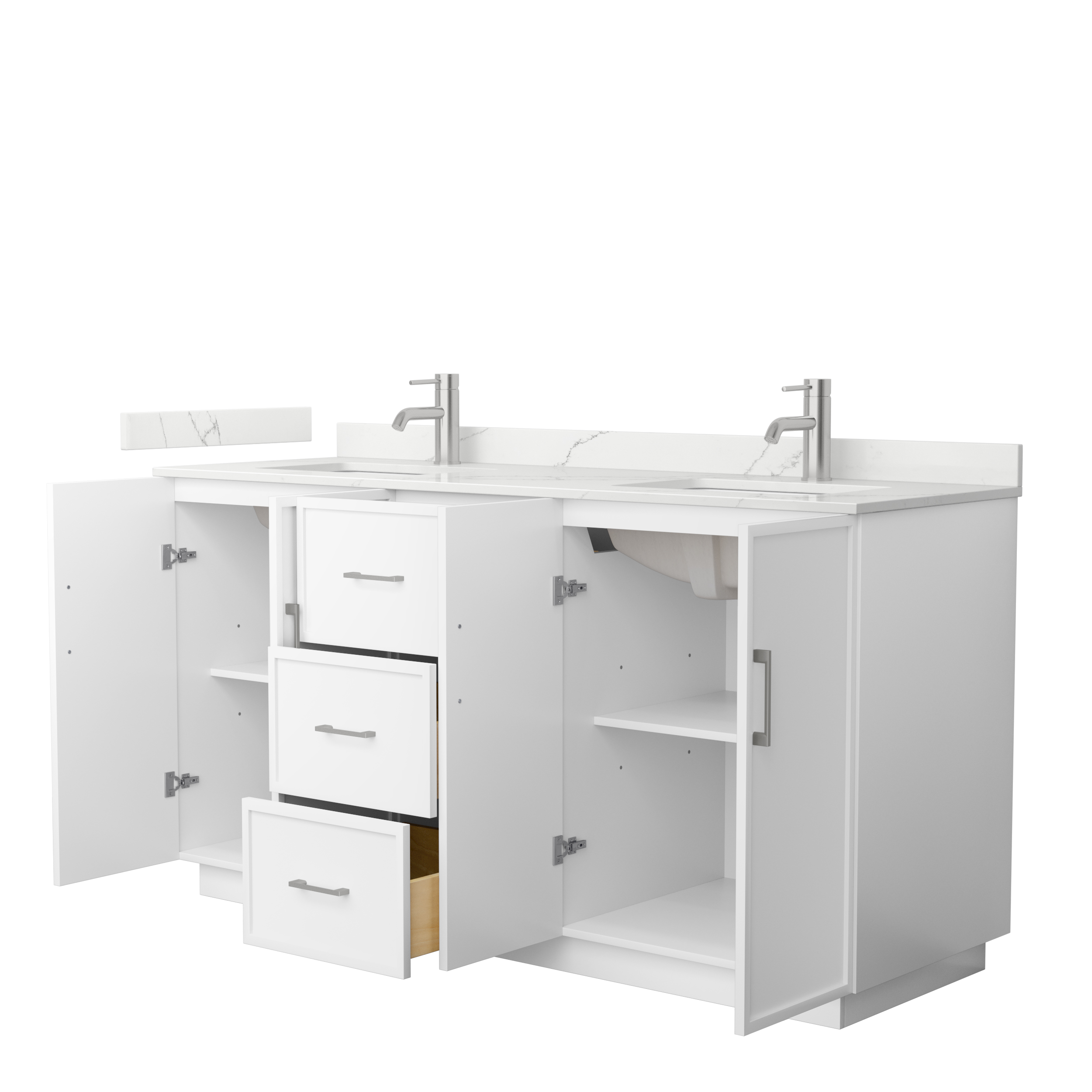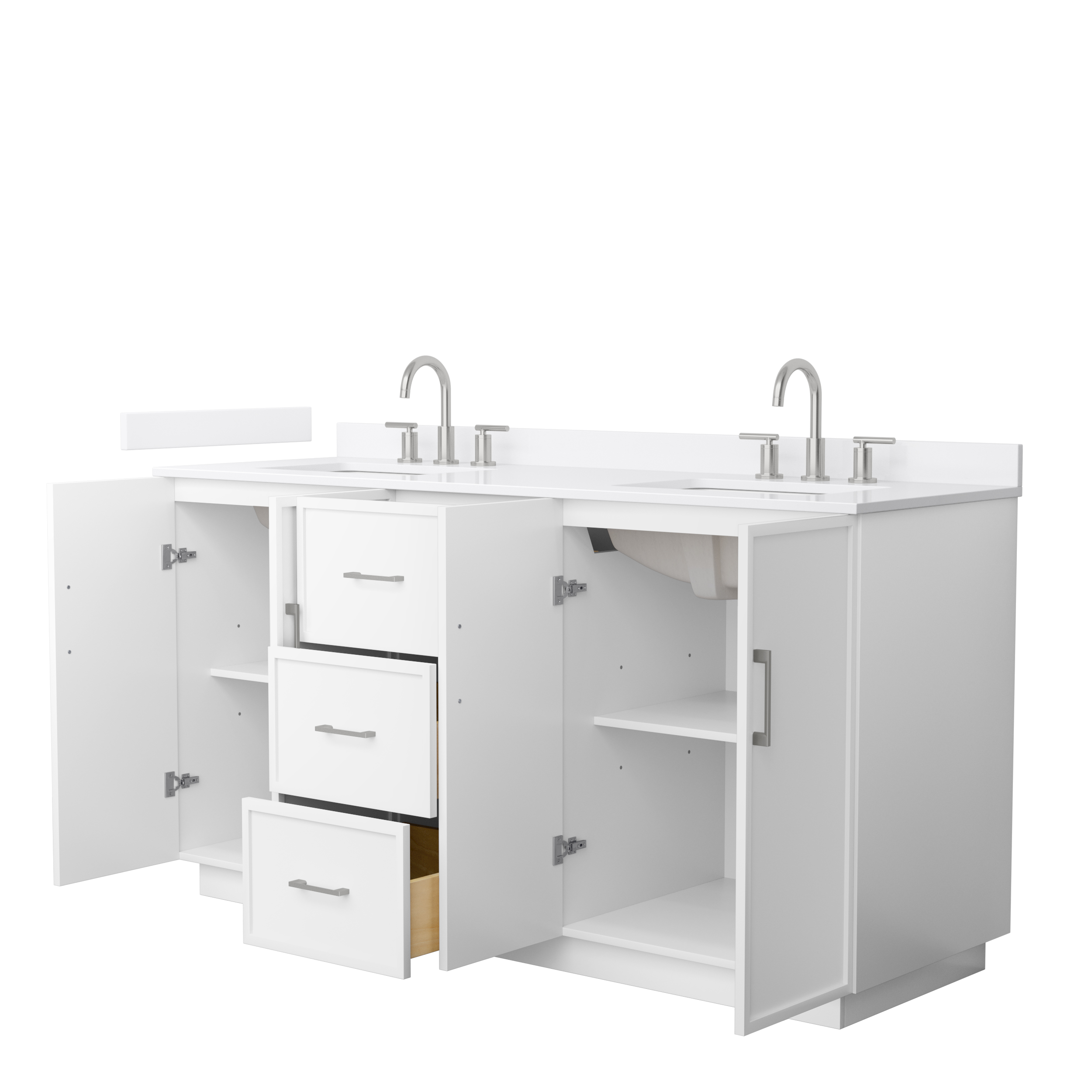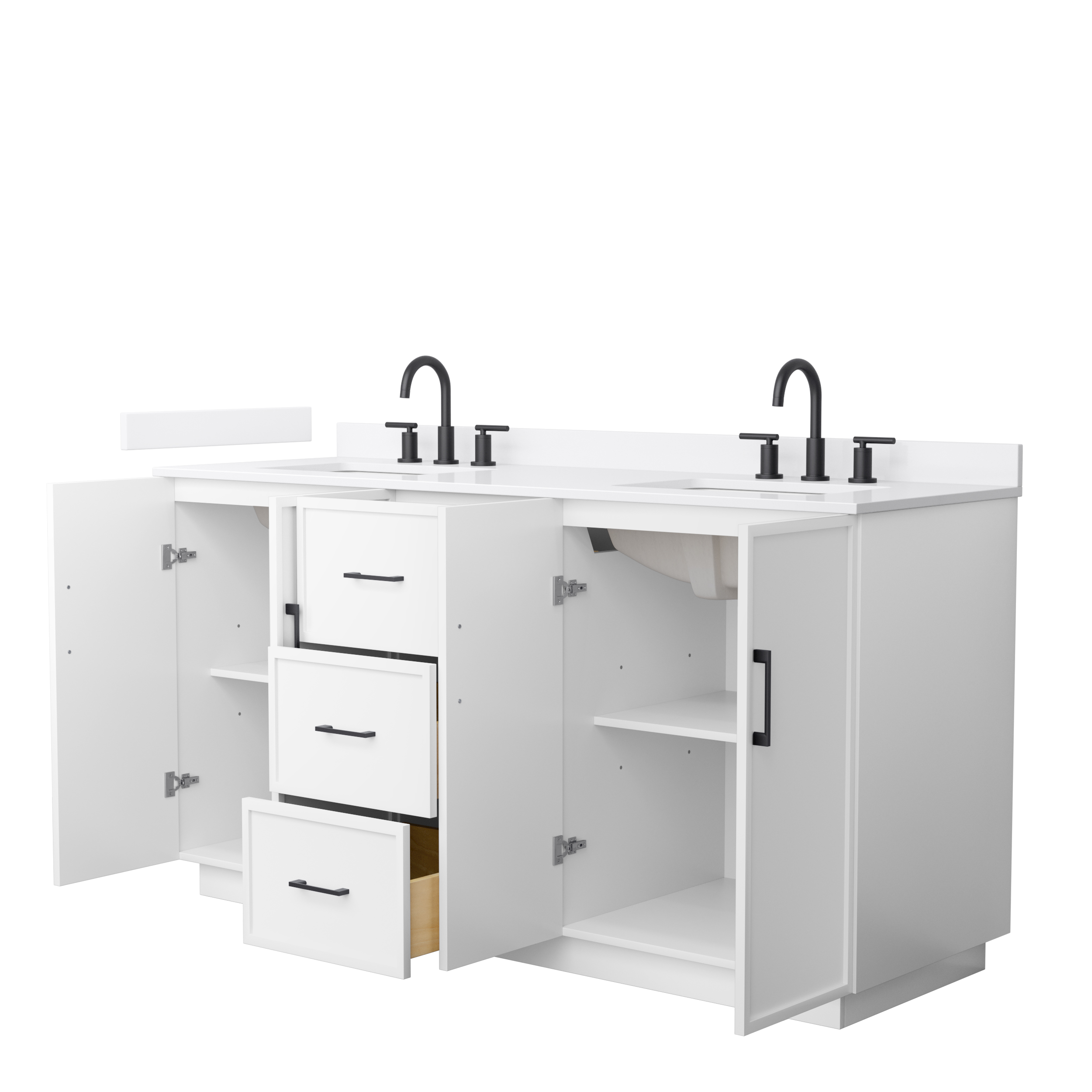 This transitional bathroom vanity exudes sleek sophistication with its clean lines and minimalist slim shaker design. The Elan vanity is crafted from high-quality materials like solid wood, with counters in multiple material options. Quartz and cultured stone counters include a back-and side-splash. Finished painted or in rift-cut light oak veneer, it seamlessly combines beauty and real-life usefulness. Its integrated, soft-closing drawers (featuring 3D adjustable glides) and doors offer ample storage space for toiletries, towels, and other essentials, keeping the space clutter-free. The sleek, angular hardware contributes to the overall aesthetic, creating a stylish focal point in the bathroom. Elevate your bathroom haven without compromising form or function.