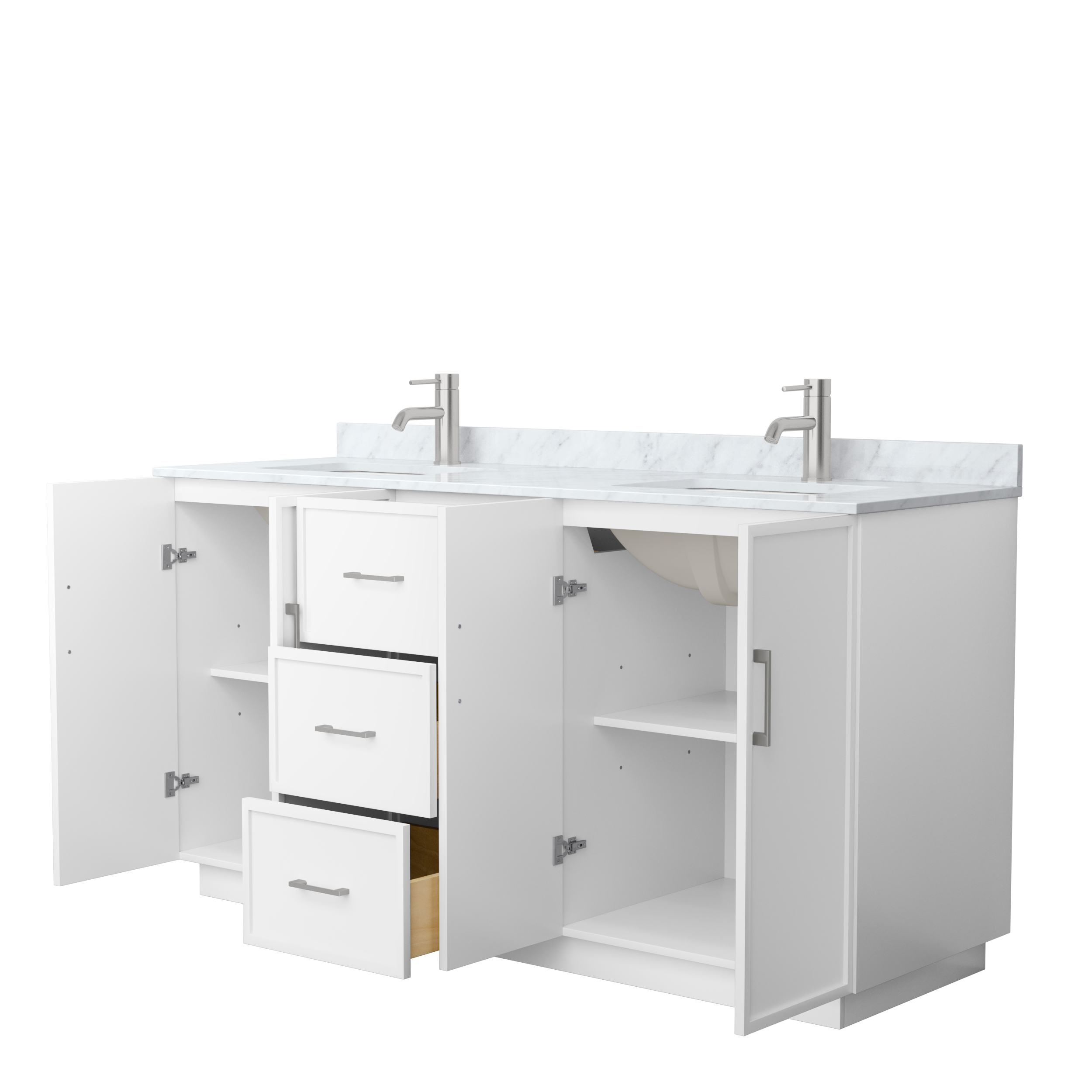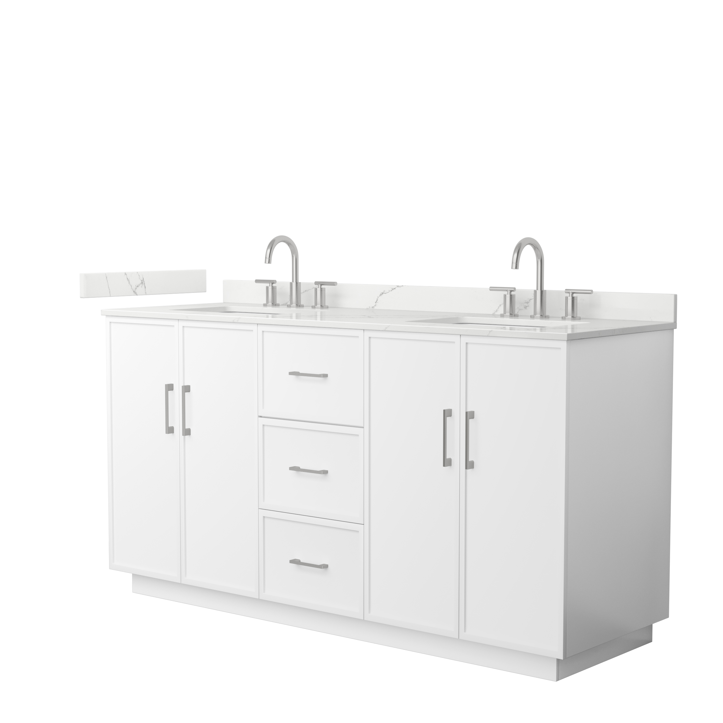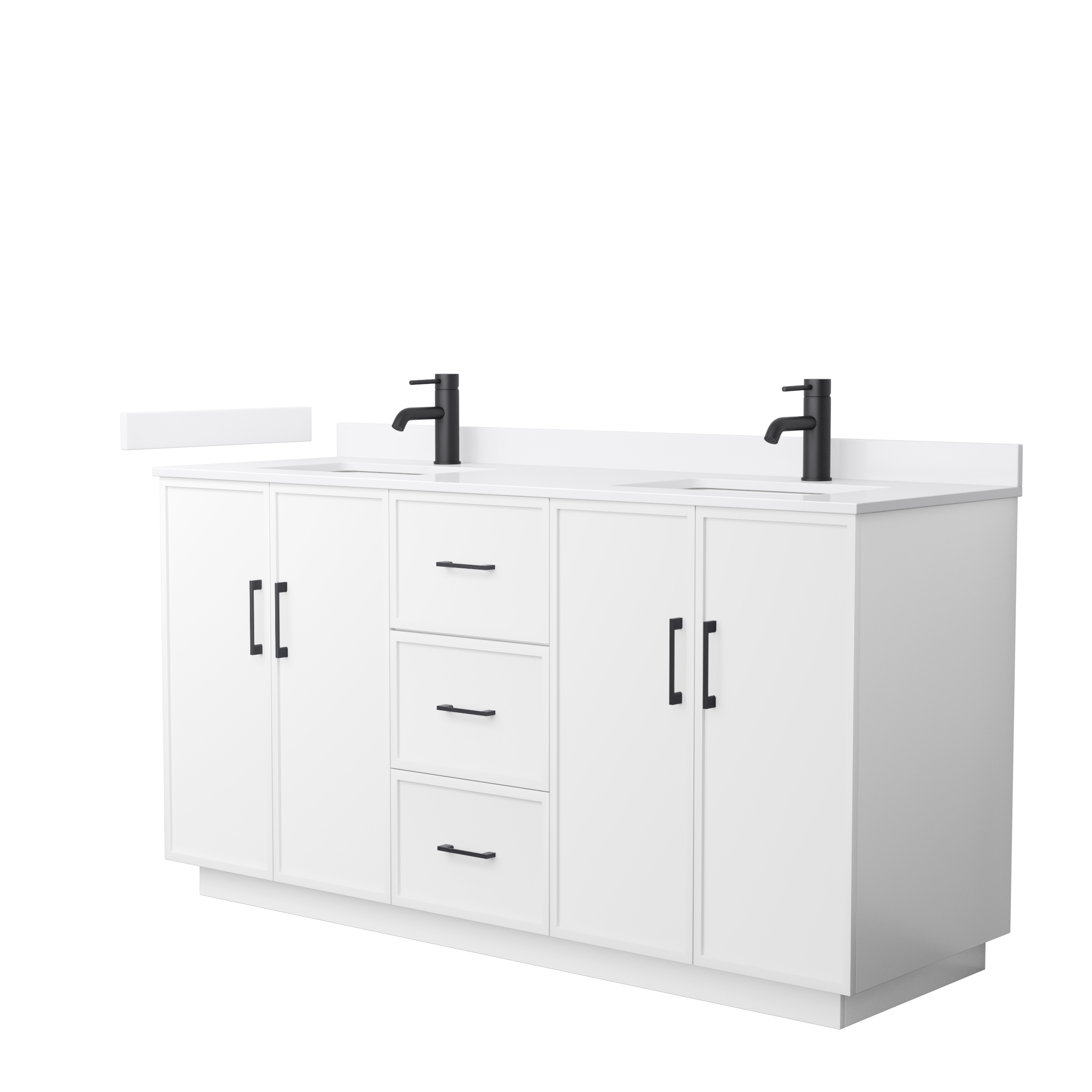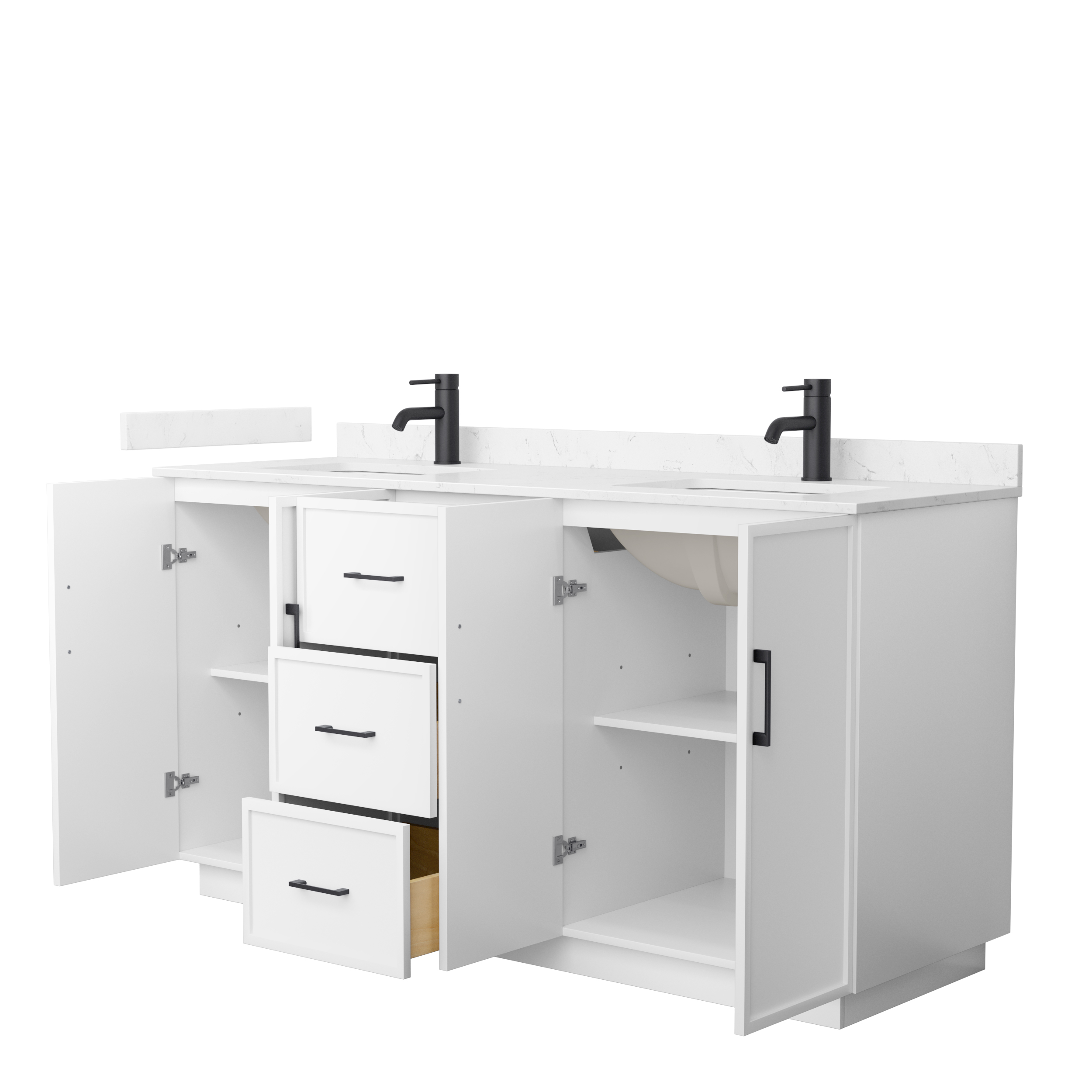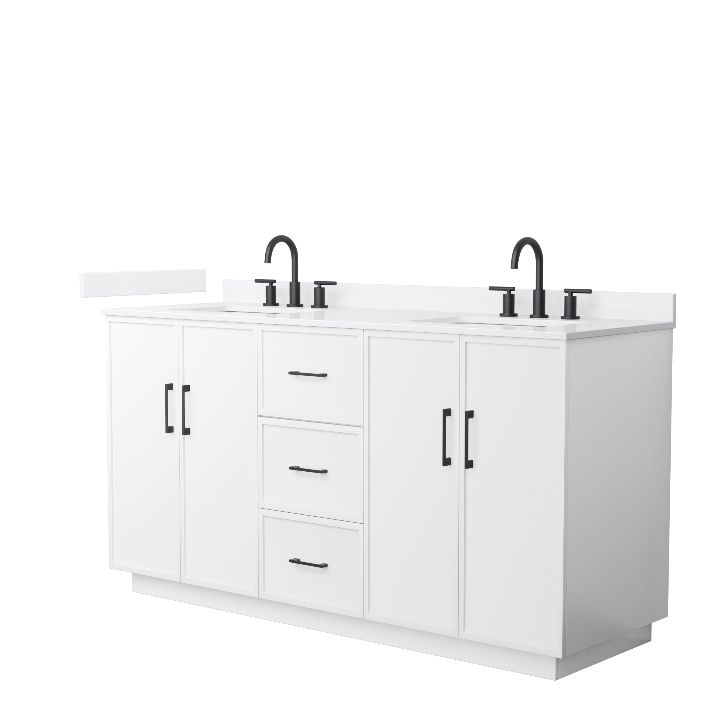 This transitional bathroom vanity exudes sleek sophistication with its clean lines and minimalist slim shaker design. The Elan vanity is crafted from high-quality materials like solid wood, with counters in multiple material options. Quartz and cultured stone counters include a back-and side-splash. Finished painted or in rift-cut light oak veneer, it seamlessly combines beauty and real-life usefulness. Its integrated, soft-closing drawers (featuring 3D adjustable glides) and doors offer ample storage space for toiletries, towels, and other essentials, keeping the space clutter-free. The sleek, angular hardware contributes to the overall aesthetic, creating a stylish focal point in the bathroom. Elevate your bathroom haven without compromising form or function.