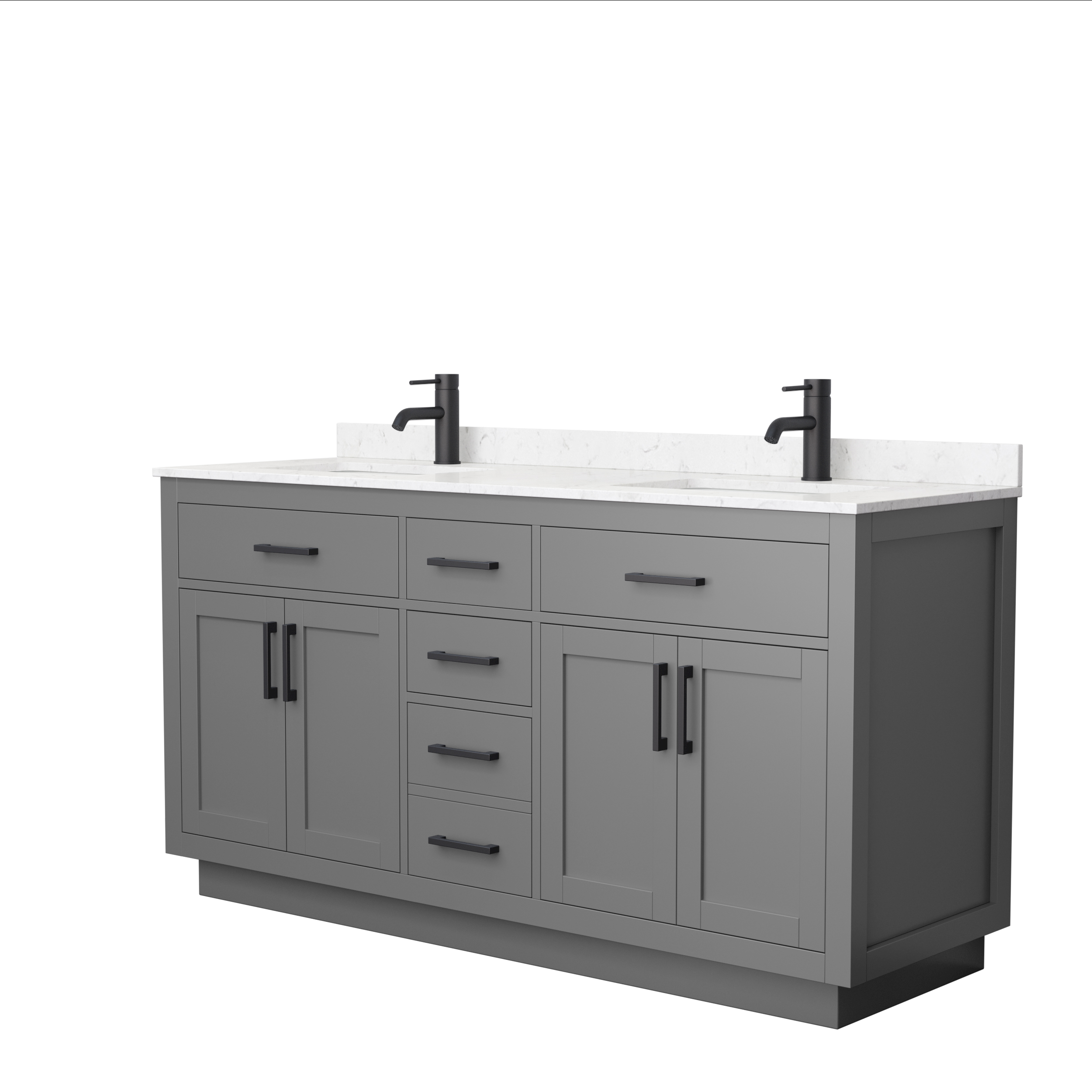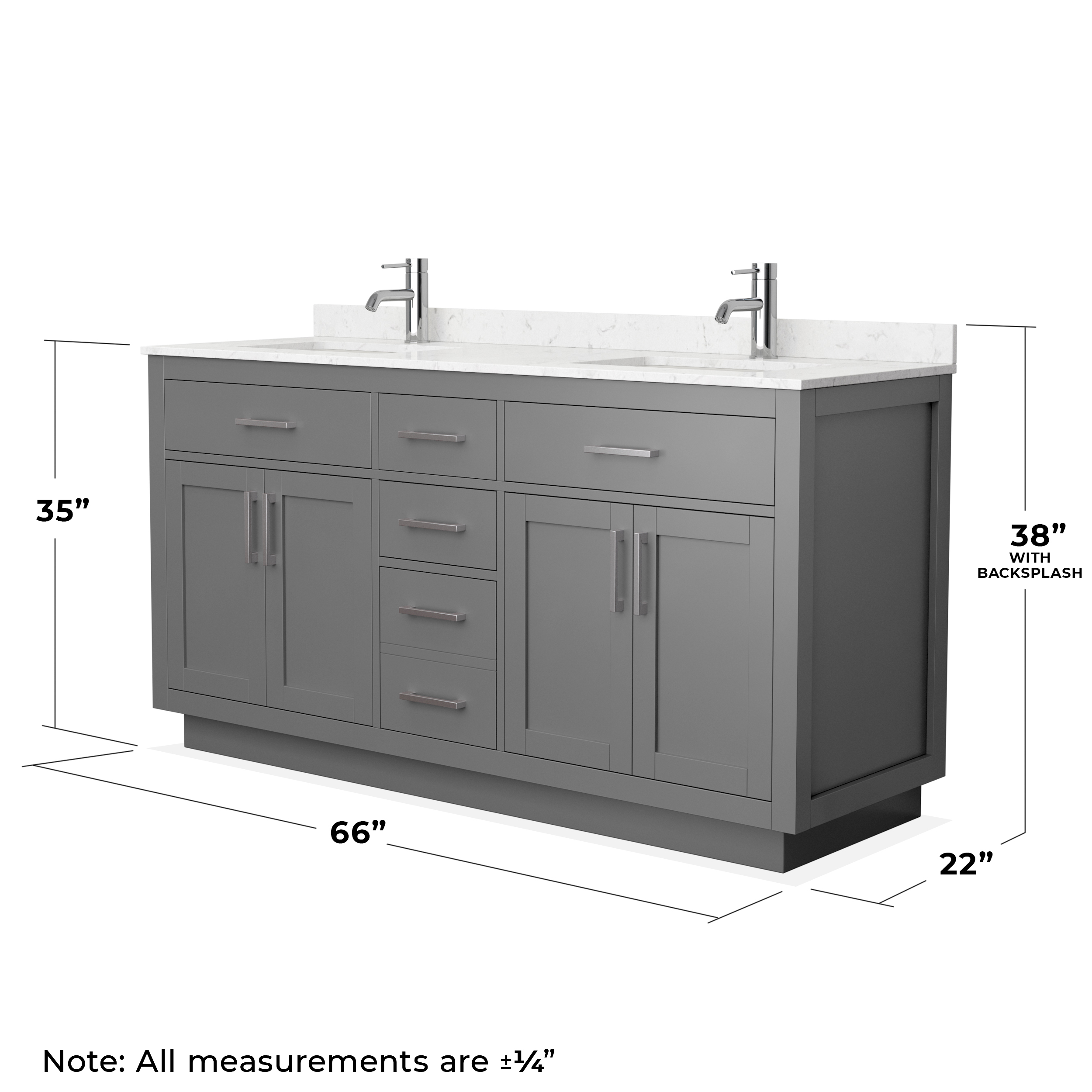 Beckett 66" Double Bathroom Vanity with Toe Kick, Cultured Marble Counter - Dark Gray