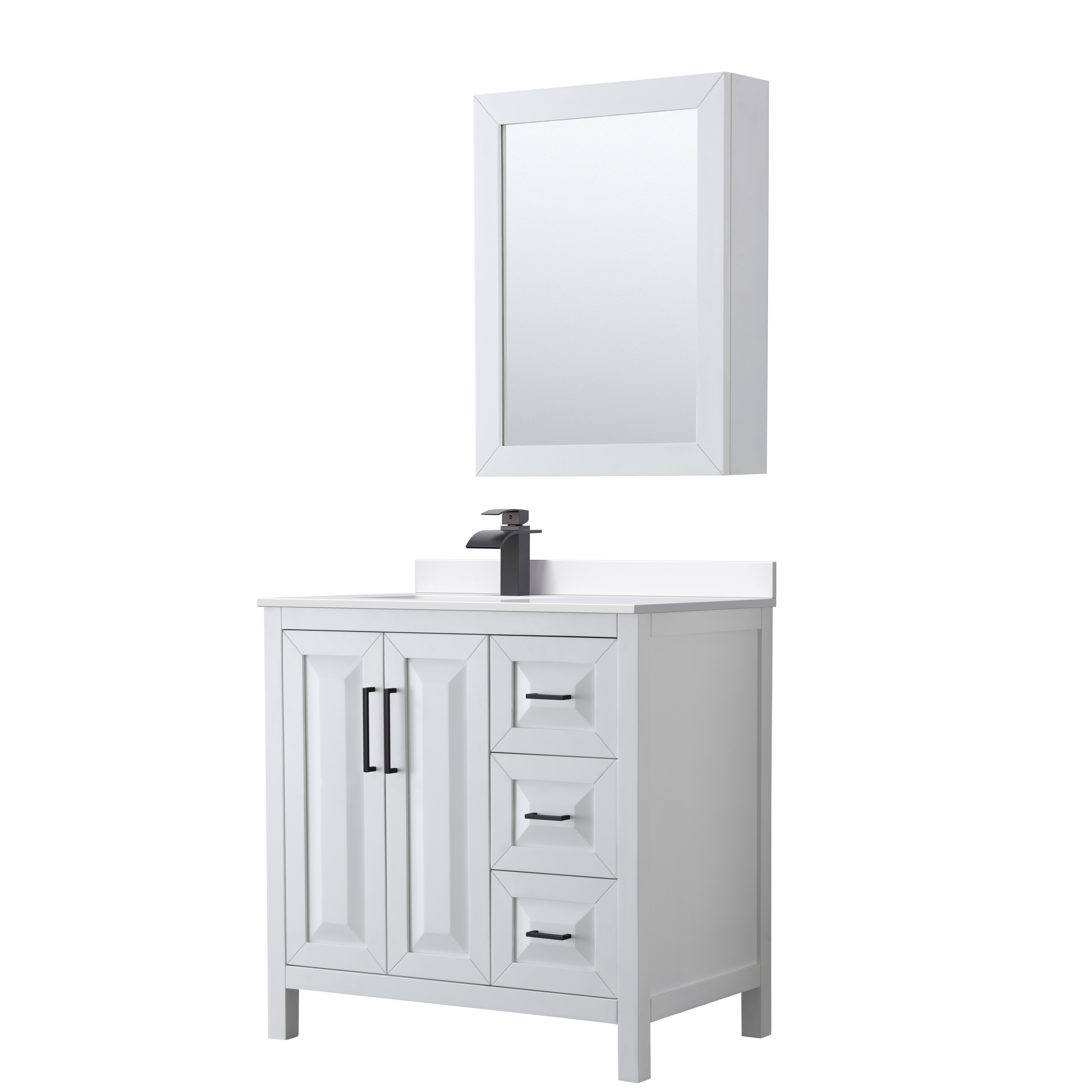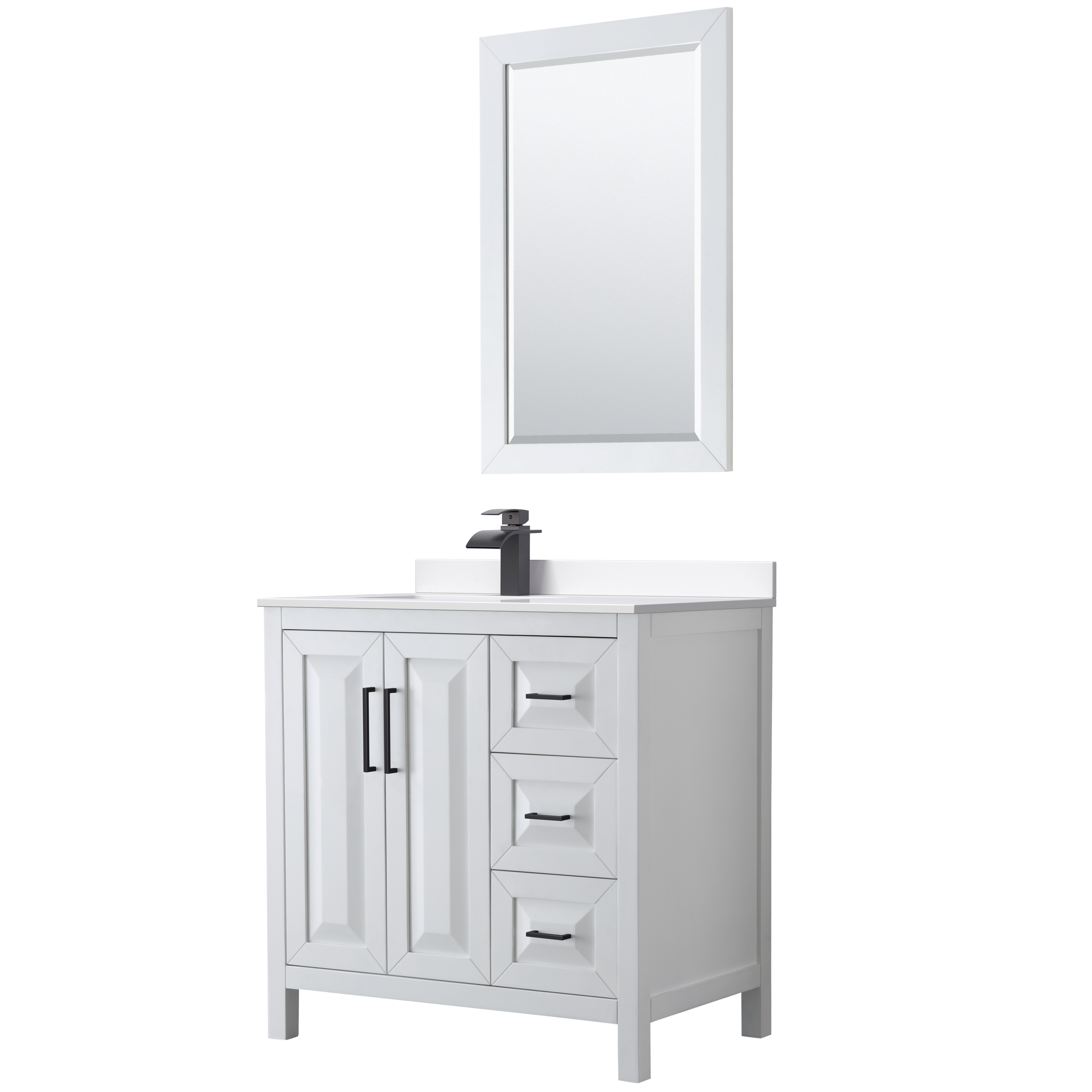 The beautiful Daria collection vanities stand out in any bathroom with strong, clean lines, raised panels and elegant counters with square sinks. There's plenty of cabinet space, the fully extending drawers are dovetail construction, and polished chrome, brushed gold, or matte black detailing completes the look. Daria vanities deftly combine the function of today with a nod to the elegance of the past. It's the new modern - classic styling with a contemporary twist.