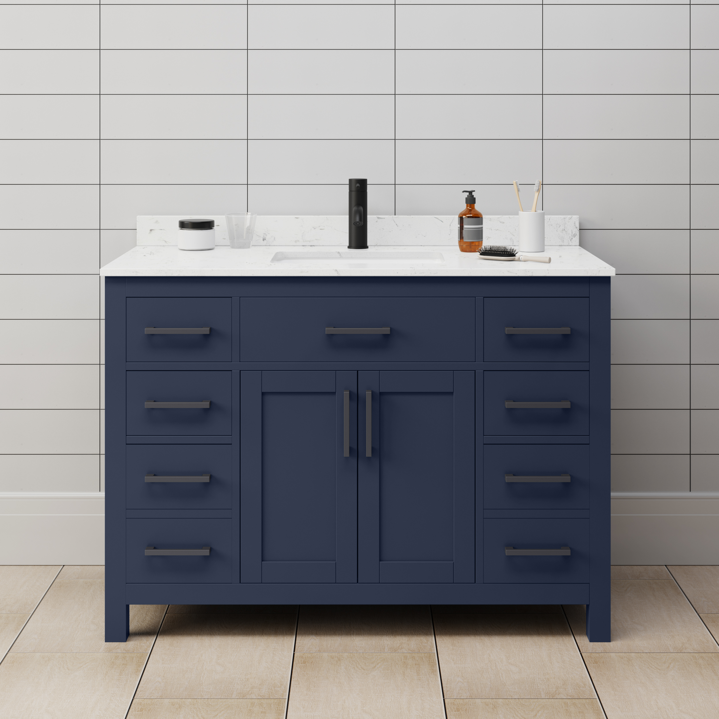 Fantastic value and classic design. The elegant Beckett vanity has it all, with quality touches like brushed nickel, brushed gold, or matte black accents, dove-tailed drawers, and soft-close doors and drawers. Ample storage and a double-depth lower drawer give you plenty of room for those bathroom necessities. Do your bathroom right, with the beautiful Beckett vanity series.