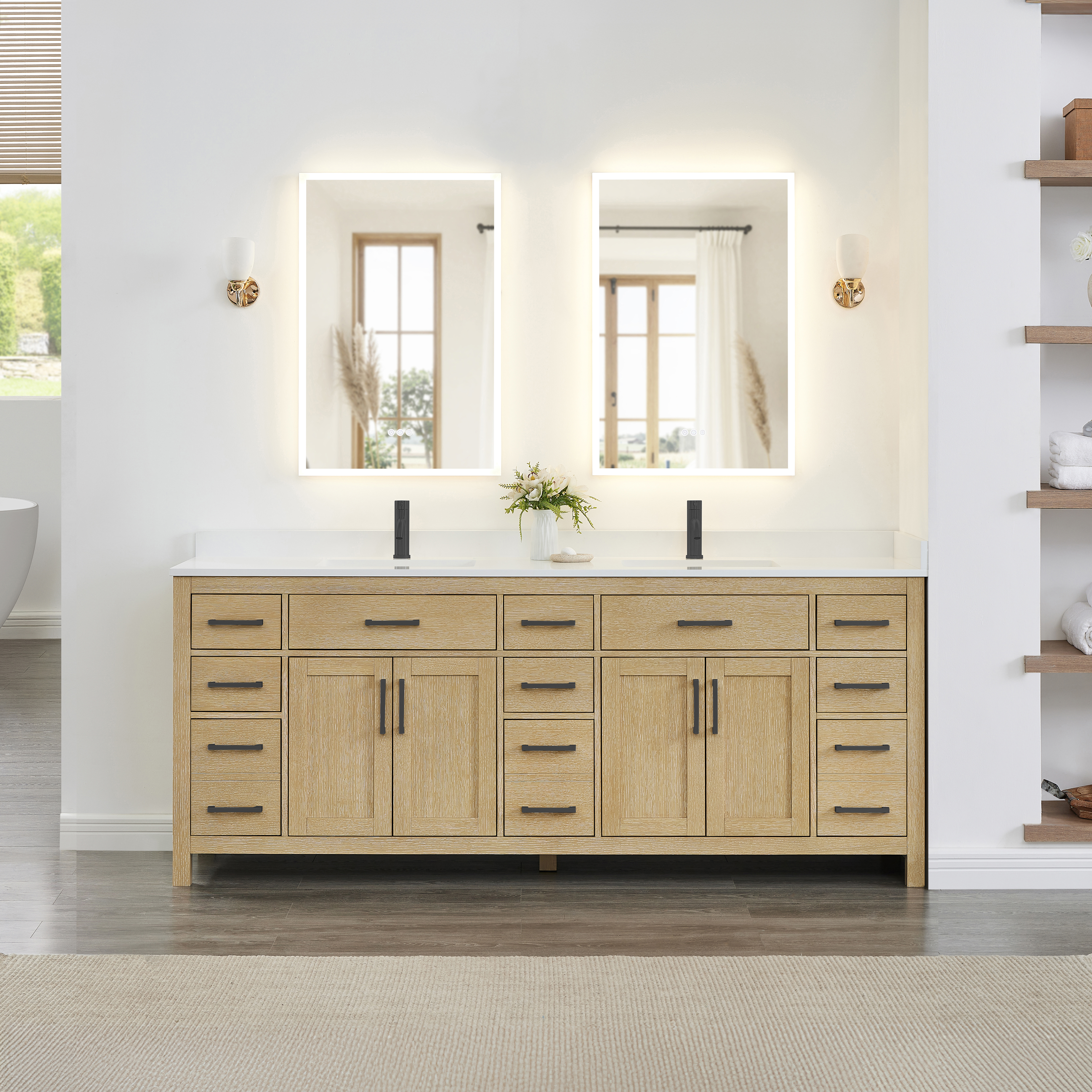 Beckett 84" Double Bathroom Vanity - Whitewashed Oak