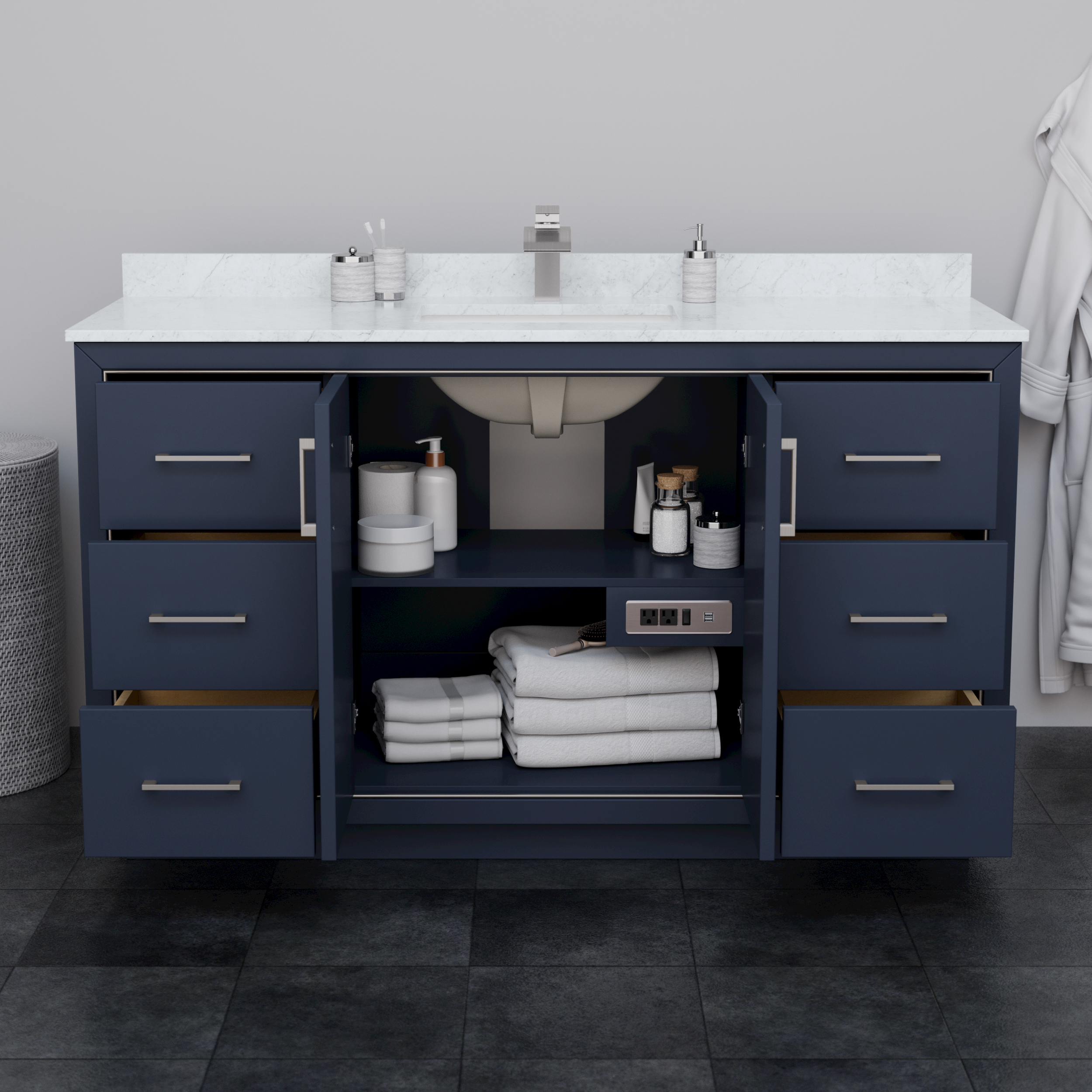 Ideal for the modern home, Icon vanities by Wyndham Collection are a cool, contemporary take on modern bathroom design, an exercise in elegance and style. Beautiful inset metal trim accents this stunning collection, which offers many choices and sizes of vanity and trim color to suit your taste. Interior details feature a power outlet with USB ports, adjustable shelves, and a cutout back for easy access to plumbing and electrical. Icon collection is available in multiple sizes and will work with a wide variety of different styles and decors.