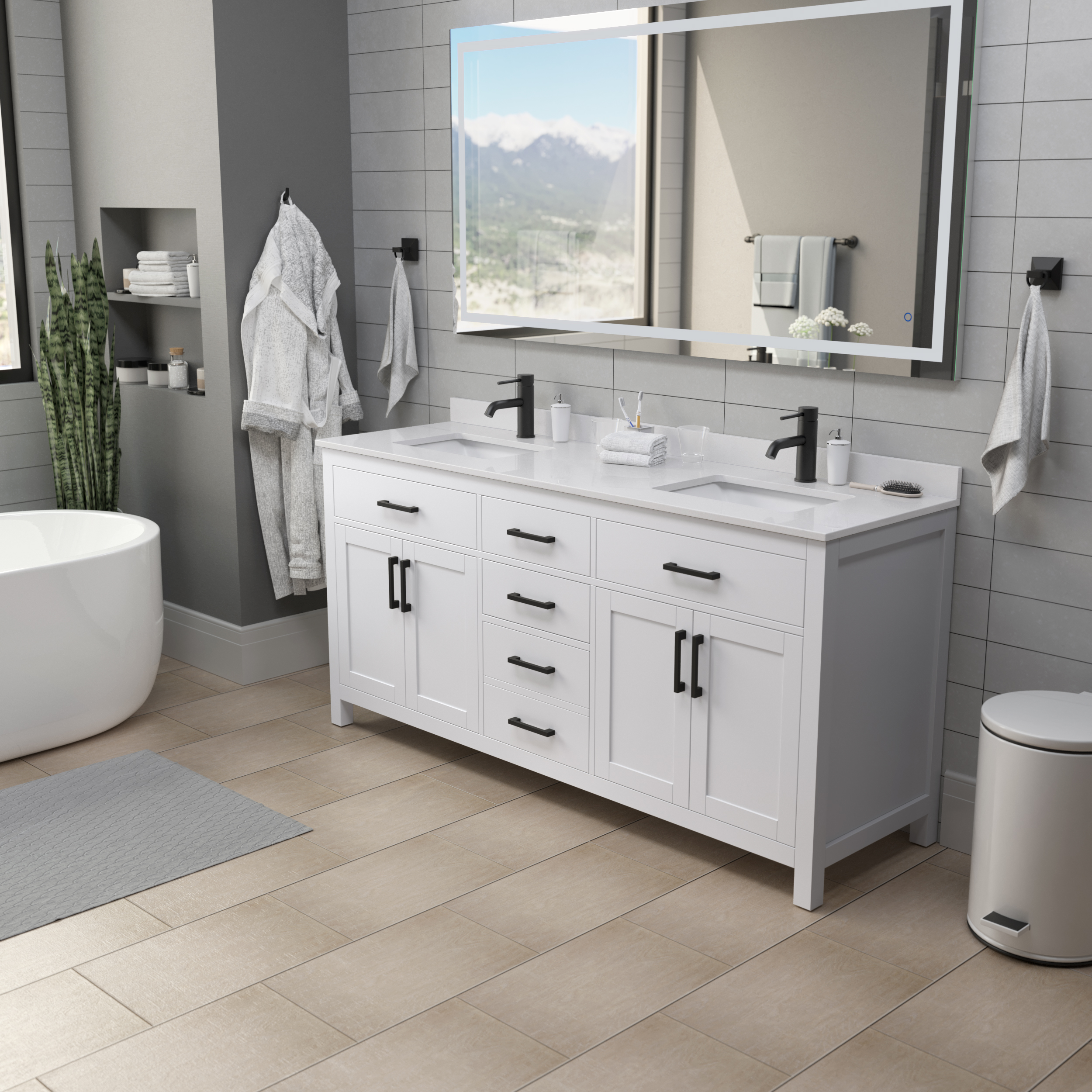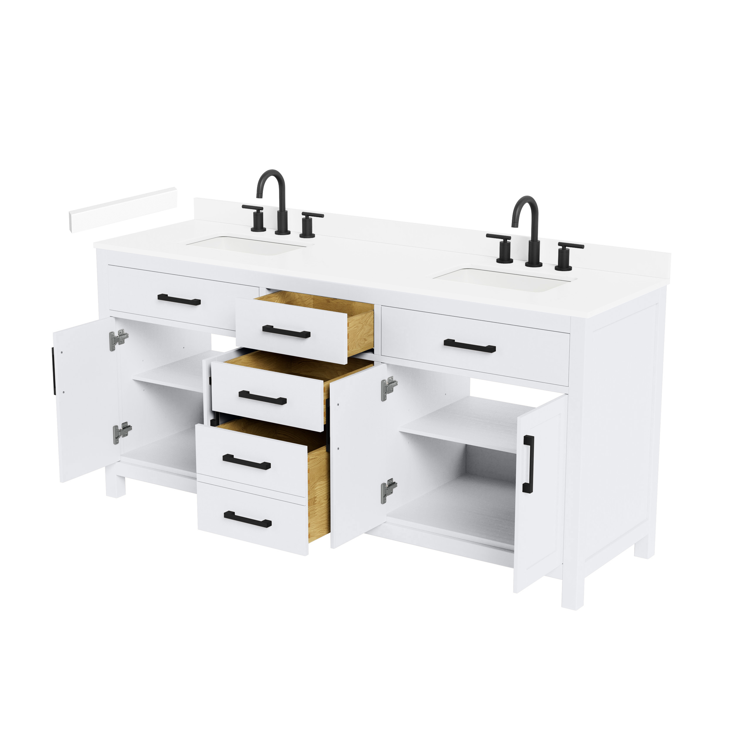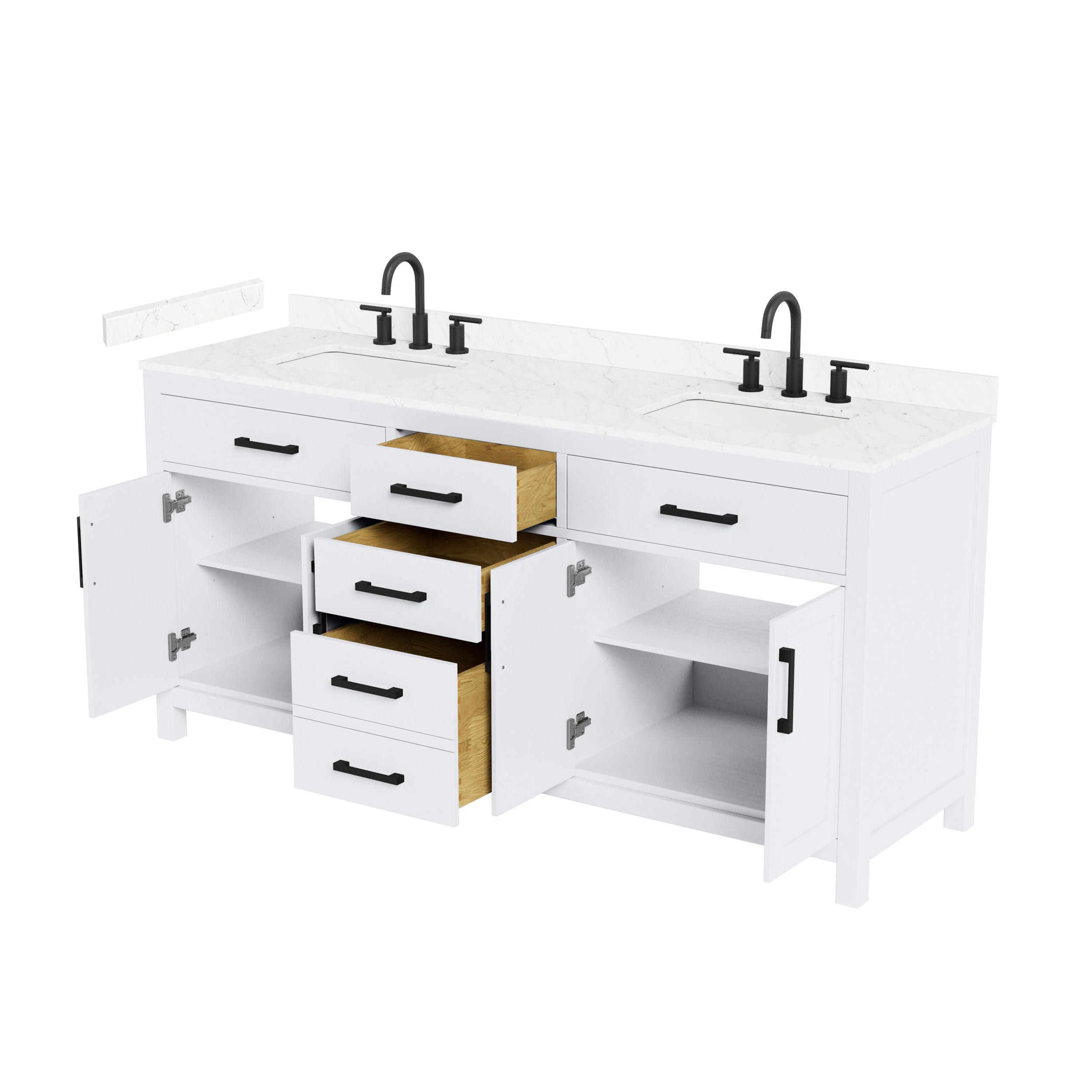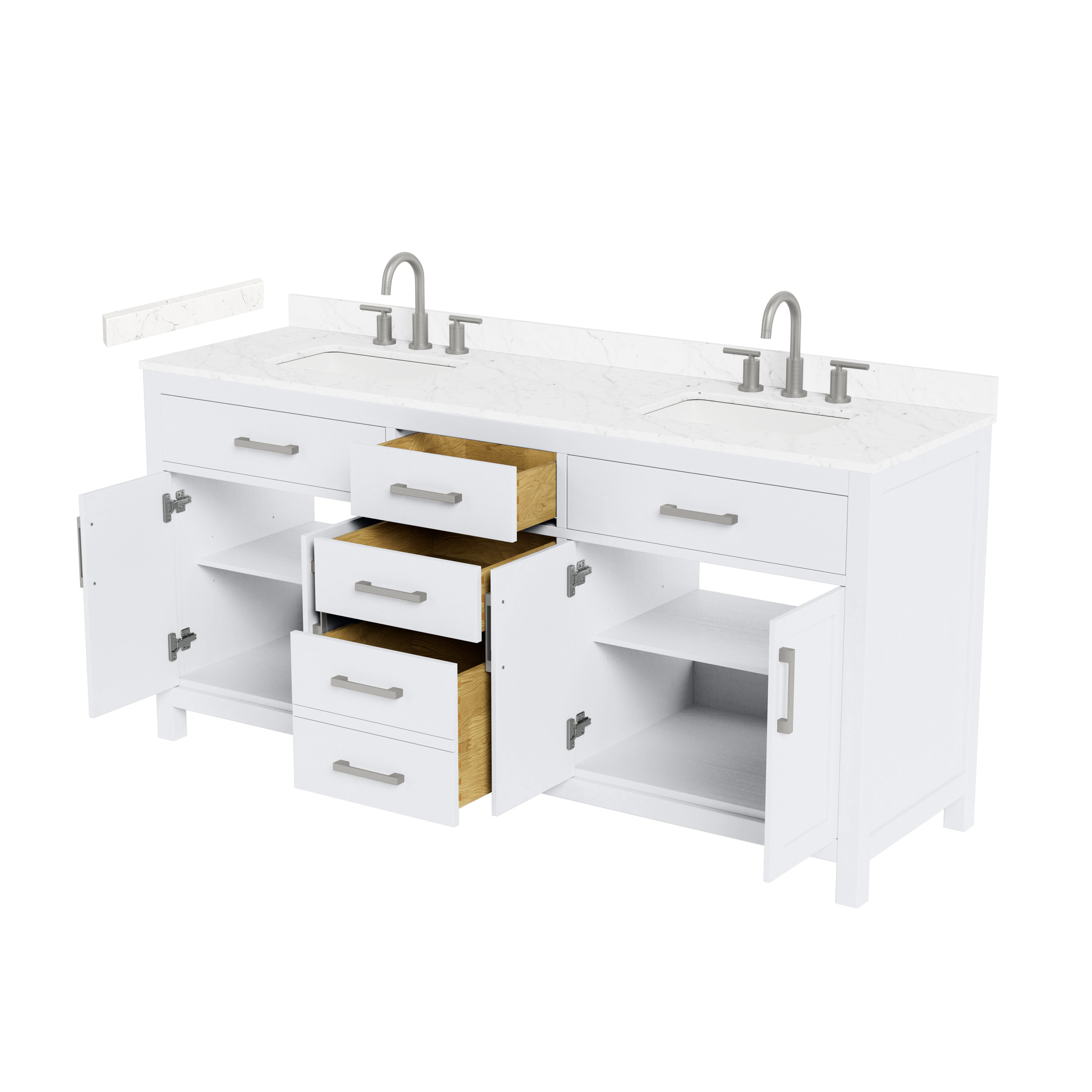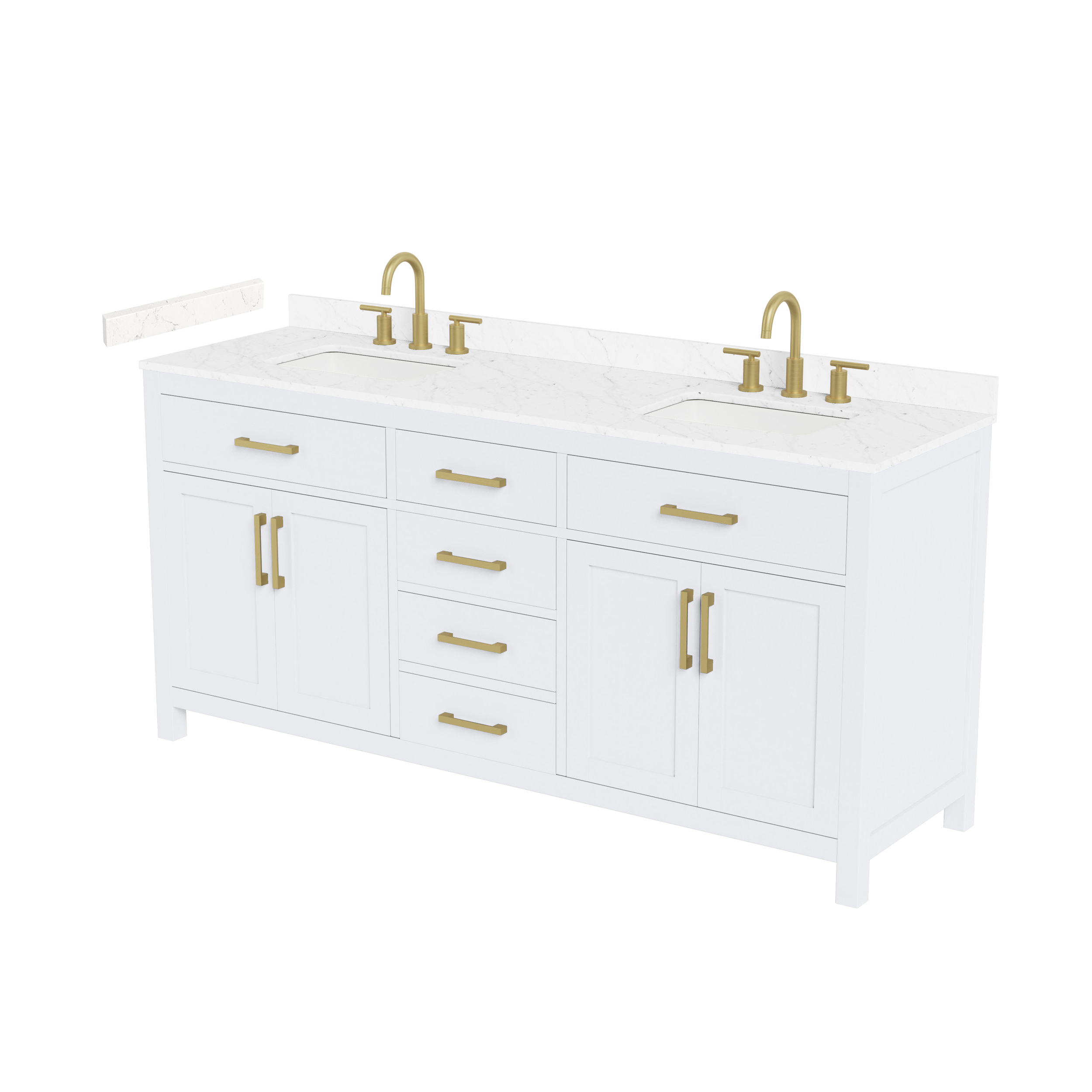 Fantastic value and classic design. The elegant Beckett vanity has it all, with quality touches like brushed nickel, brushed gold, or matte black accents, dove-tailed drawers, and soft-close doors and drawers. Ample storage and a double-depth lower drawer give you plenty of room for those bathroom necessities. Do your bathroom right, with the beautiful Beckett vanity series.