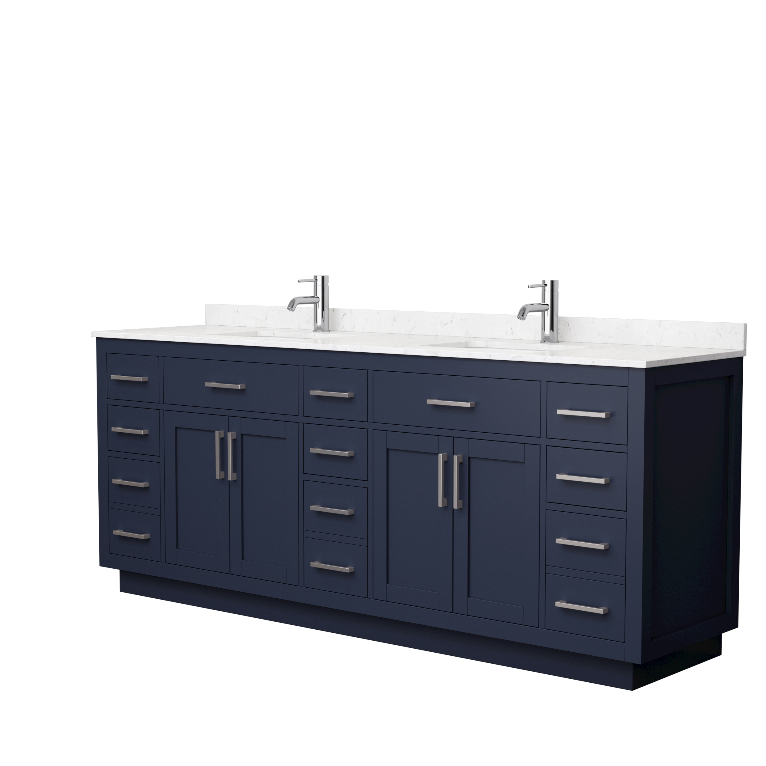 Beckett 84" Double Bathroom Vanity with Toe Kick, Cultured Marble Counter - Dark Blue