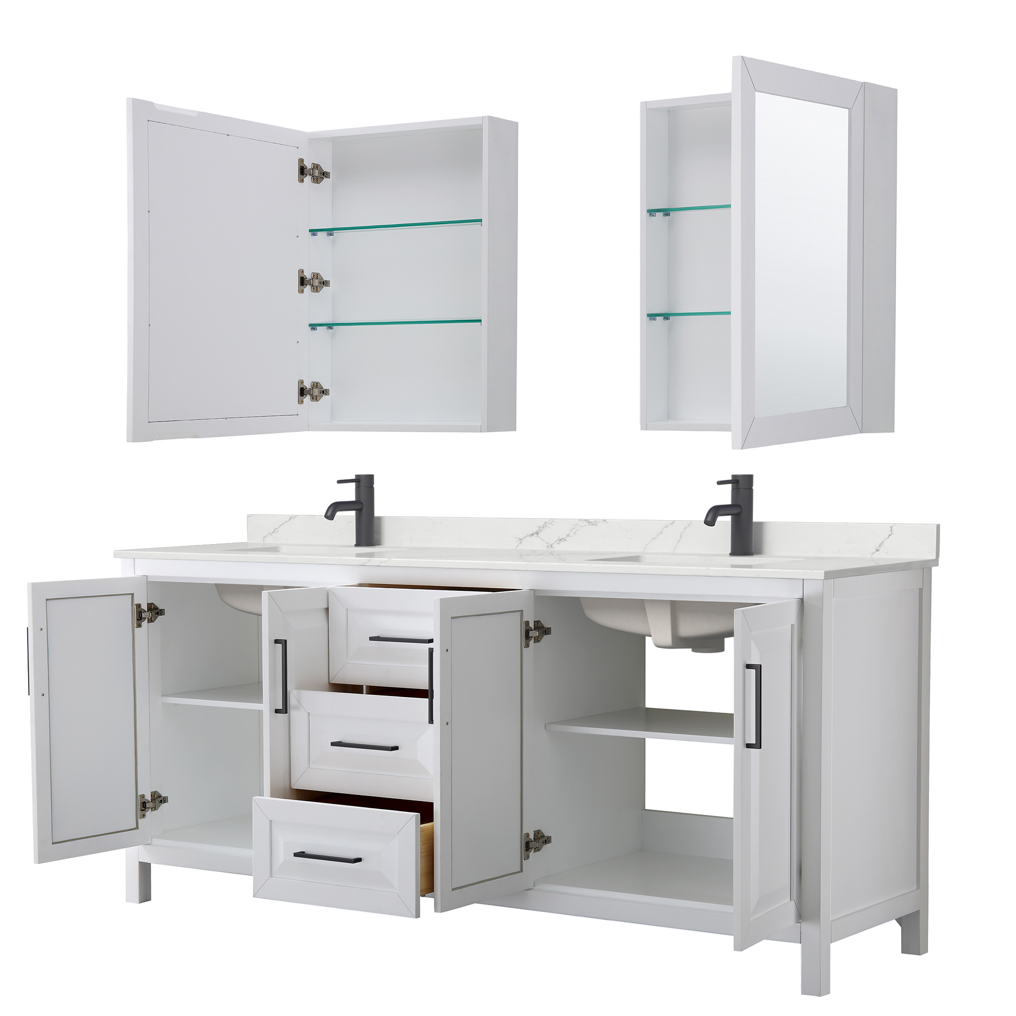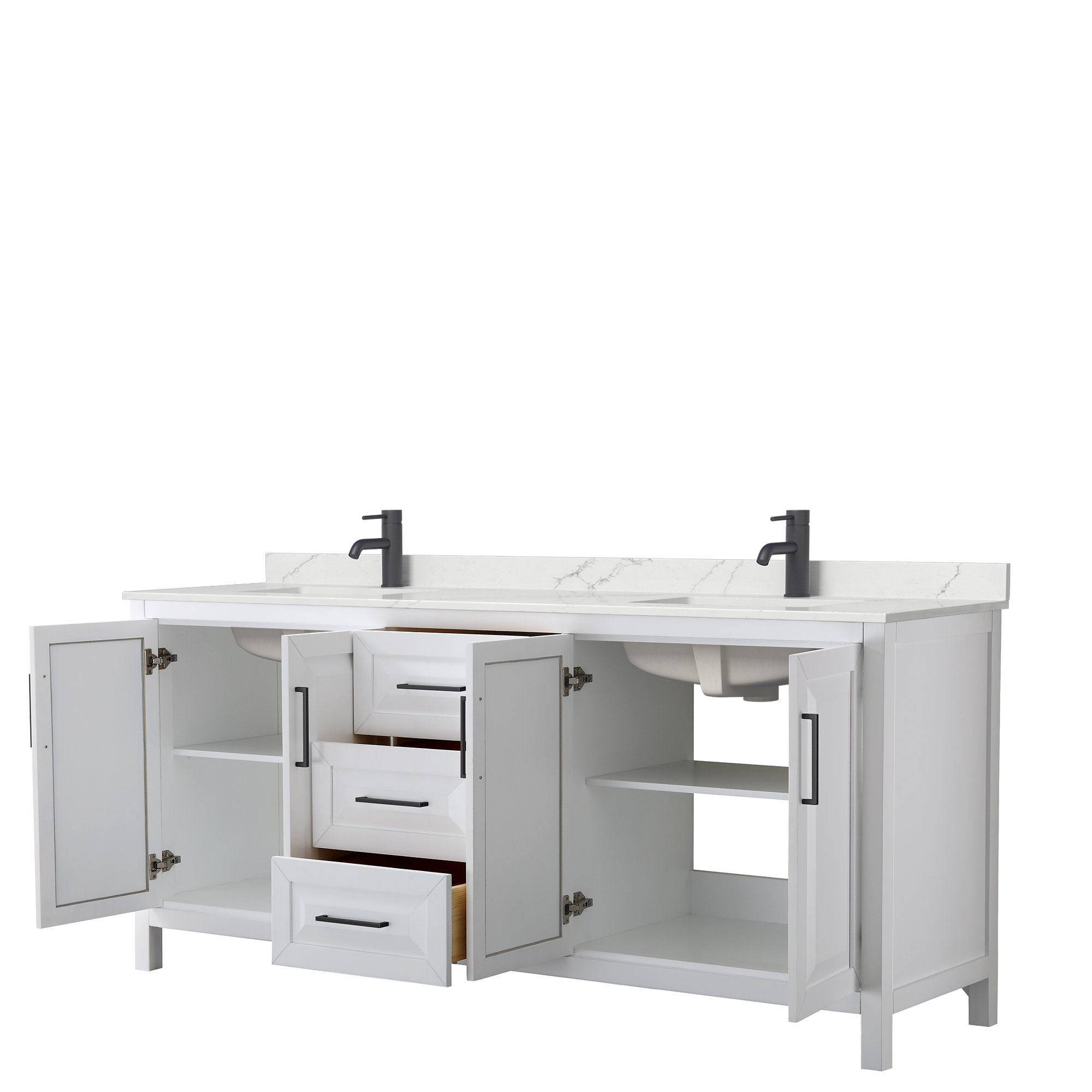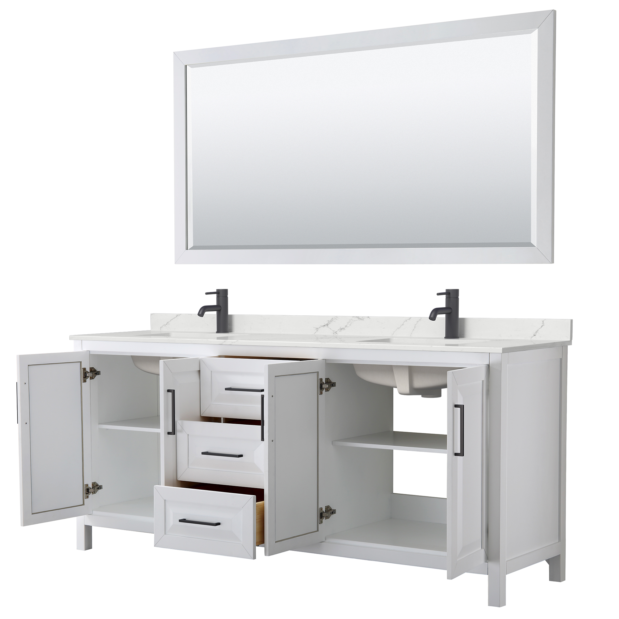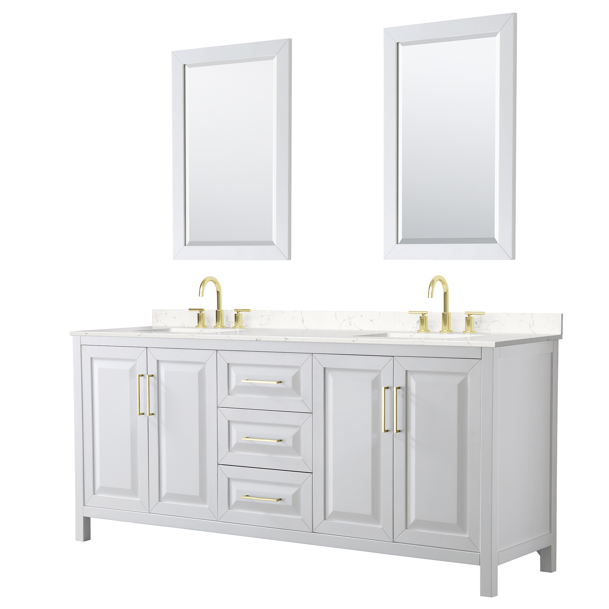 The beautiful Daria collection vanities stand out in any bathroom with strong, clean lines, raised panels and elegant counters with square sinks. There's plenty of cabinet space, the fully extending drawers are dovetail construction, and matte black, polised chrome, or brushed gold finish detailing completes the look. Daria vanities deftly combine the function of today with a nod to the elegance of the past. It's the new modern - classic styling with a contemporary twist.