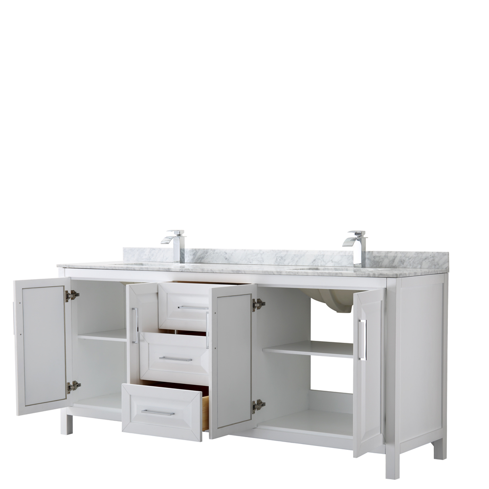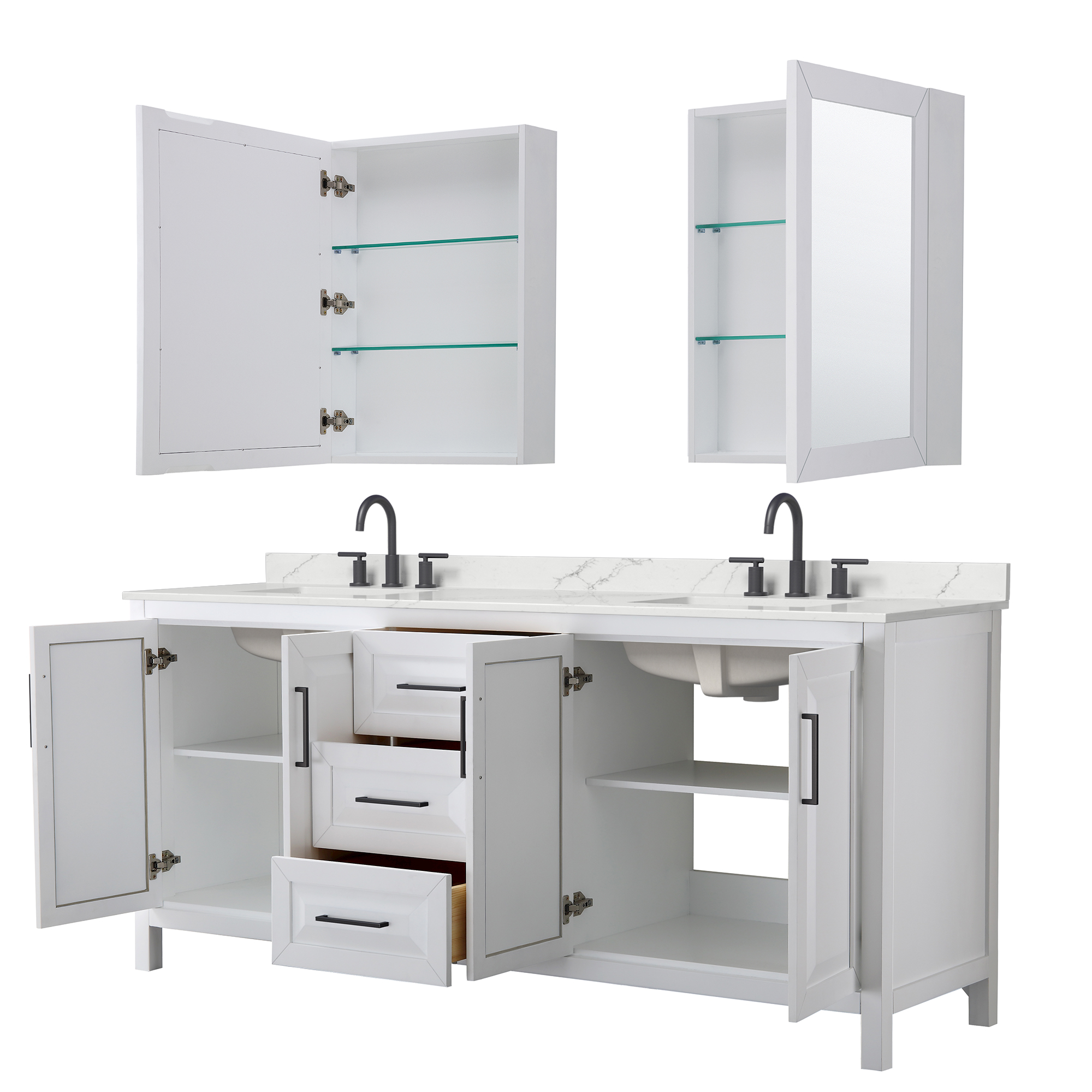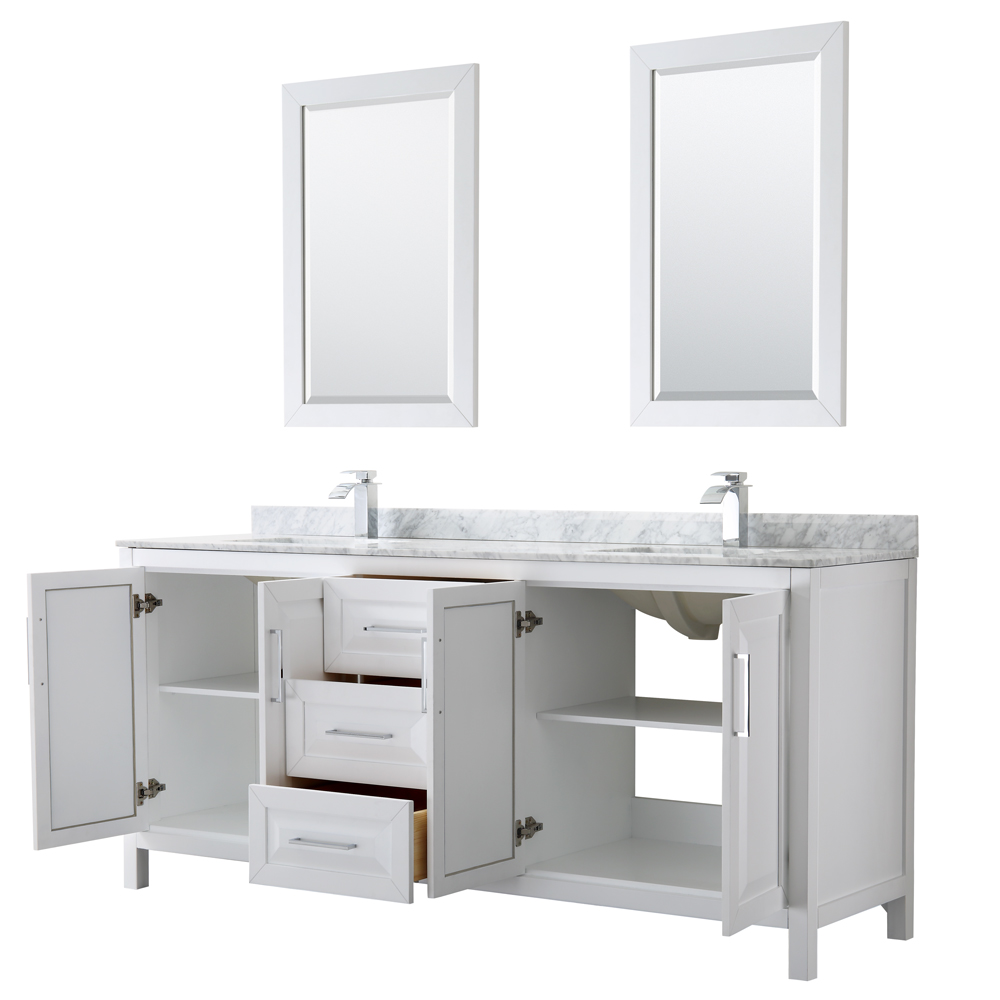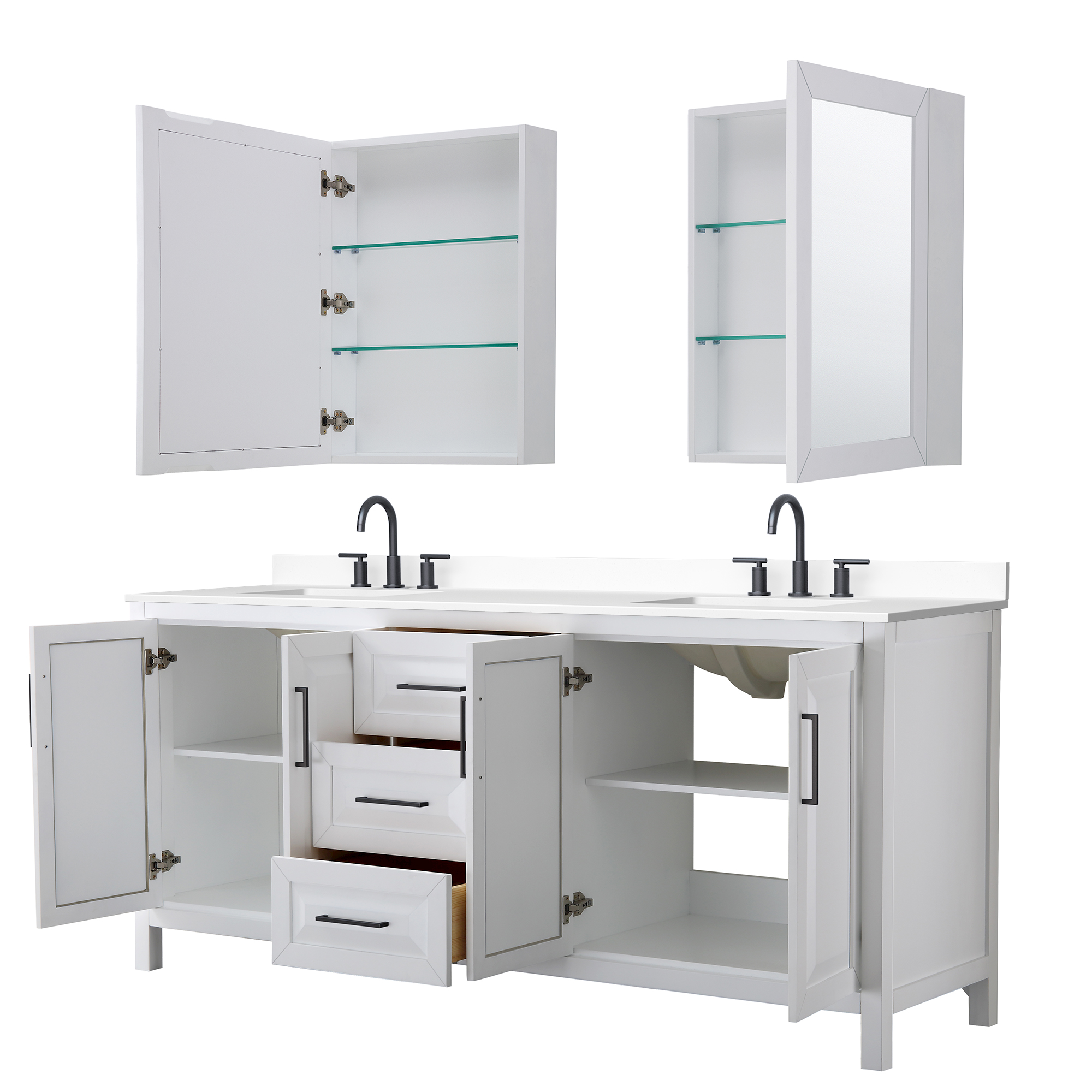The beautiful Daria collection vanities stand out in any bathroom with strong, clean lines, raised panels and elegant counters with square sinks. There's plenty of cabinet space, the fully extending drawers are dovetail construction, and matte black, polised chrome, or brushed gold finish detailing completes the look. Daria vanities deftly combine the function of today with a nod to the elegance of the past. It's the new modern - classic styling with a contemporary twist.