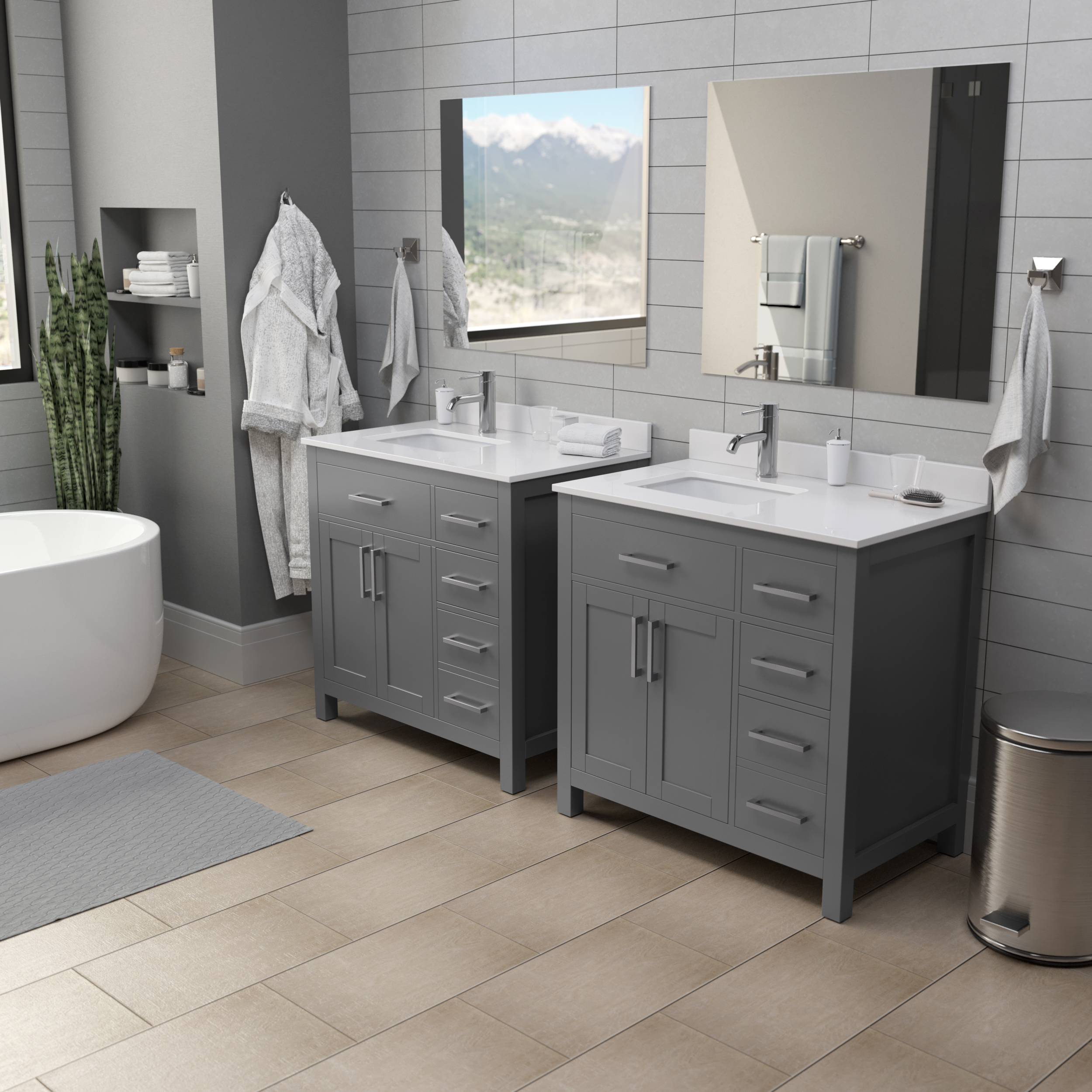 Fantastic value and classic design. The elegant Beckett vanity has it all, with quality touches like brushed nickel, brushed gold, or matte black accents, dove-tailed drawers, and soft-close doors and drawers. Ample storage and a double-depth lower drawer give you plenty of room for those bathroom necessities. Do your bathroom right, with the beautiful Beckett vanity series.