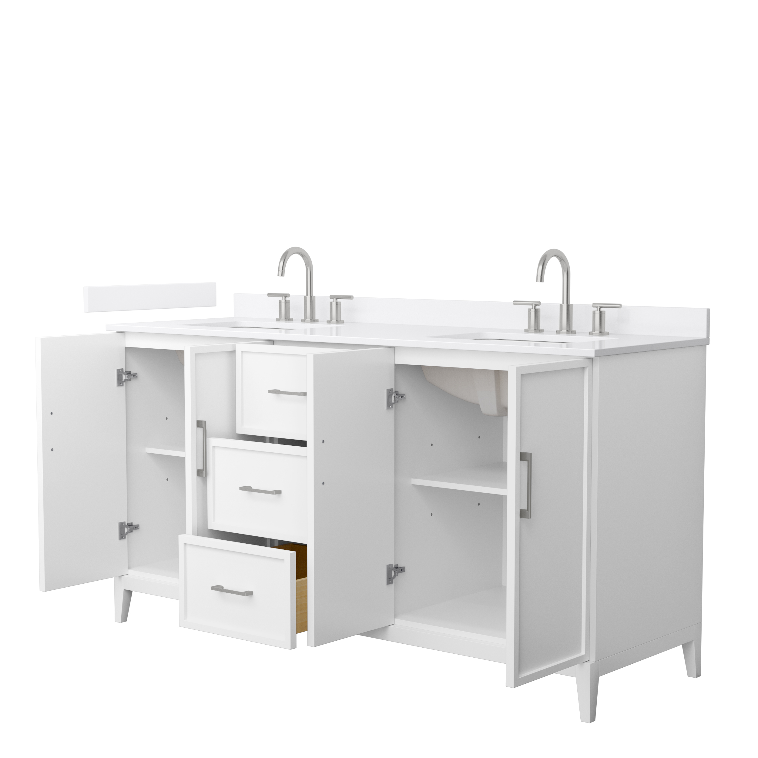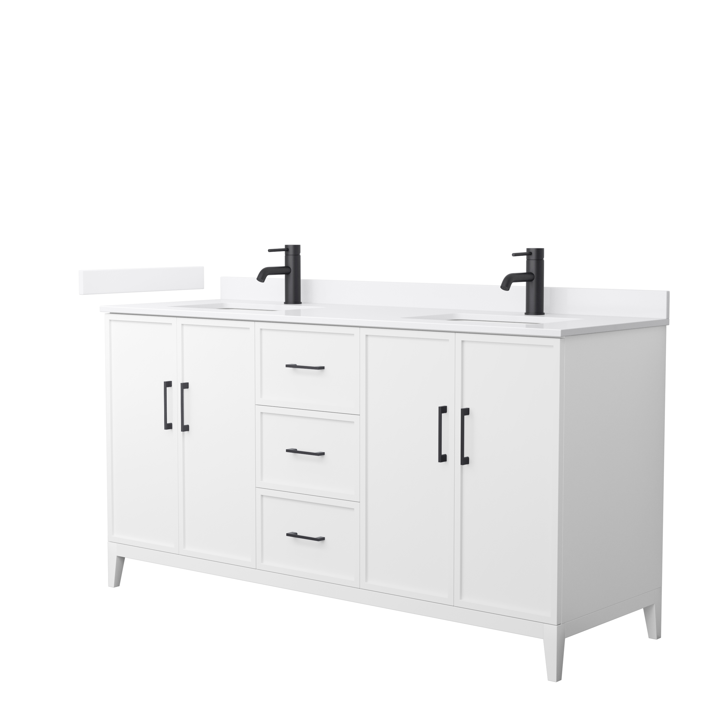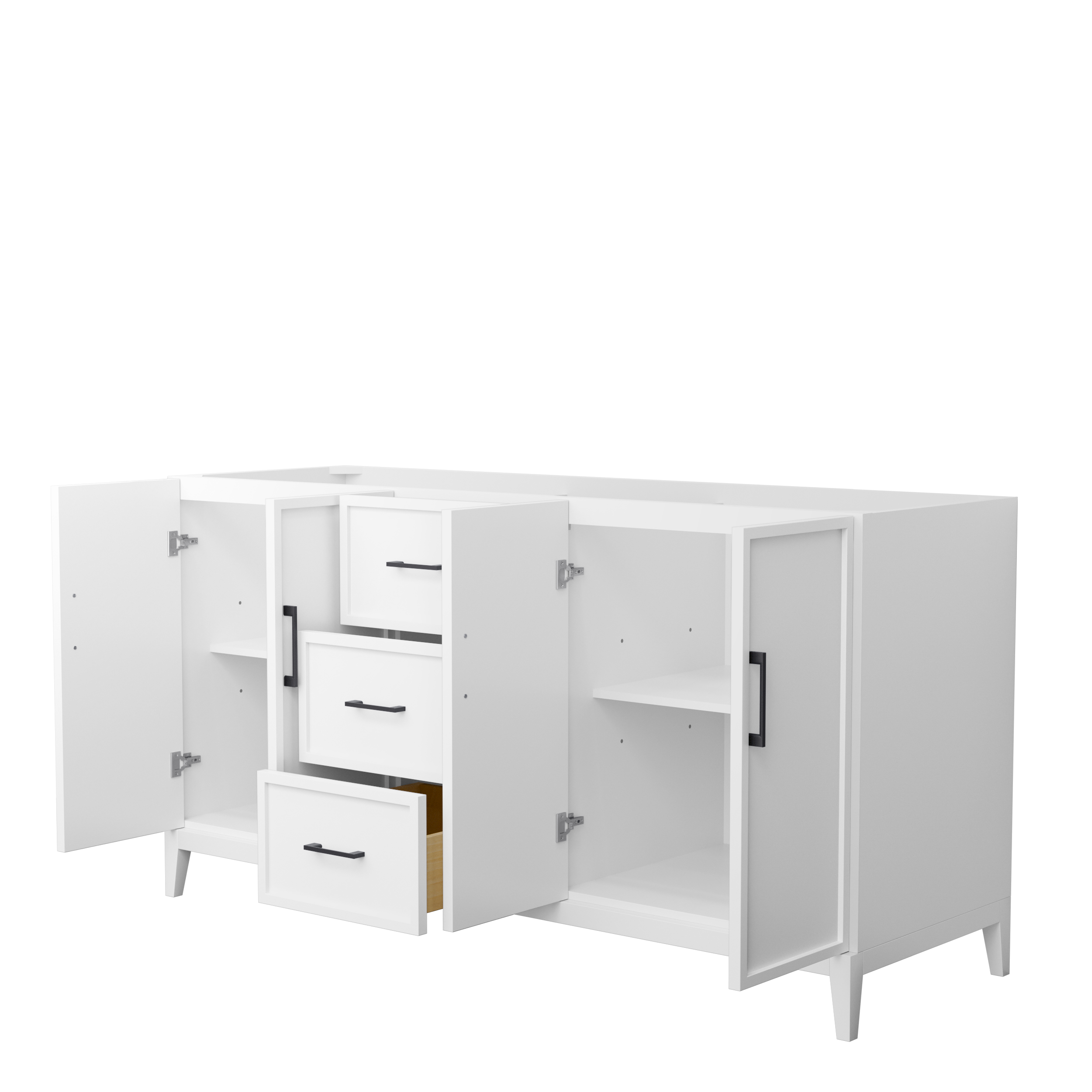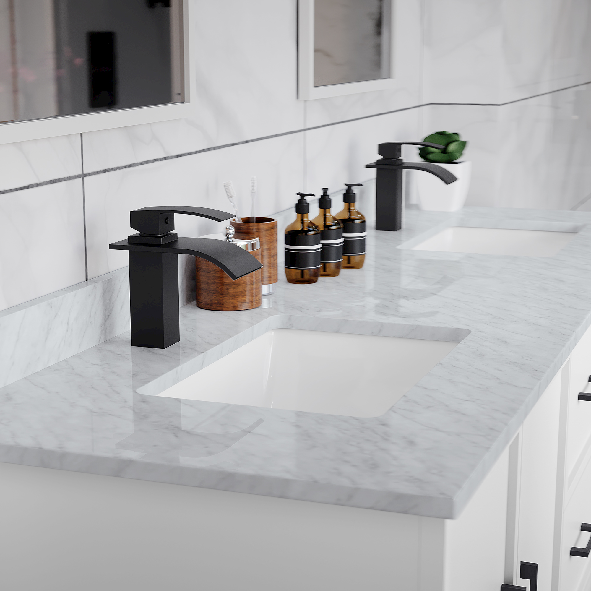 This transitional bathroom vanity exudes sleek sophistication with its clean lines and minimalist slim shaker design. The Elan vanity is crafted from high-quality materials like solid wood and plywood, with counters in multiple material options. Quartz and cultured stone counters include a back-and side-splash. Finished painted or in rift-cut white oak veneer, it seamlessly combines beauty and real-life usefulness. Its integrated, soft-closing drawers (featuring 3D adjustable glides) and doors offer ample storage space for toiletries, towels, and other essentials, keeping the space clutter-free. The sleek, angular hardware contributes to the overall aesthetic, creating a stylish focal point in the bathroom. Elevate your bathroom haven without compromising form or function.