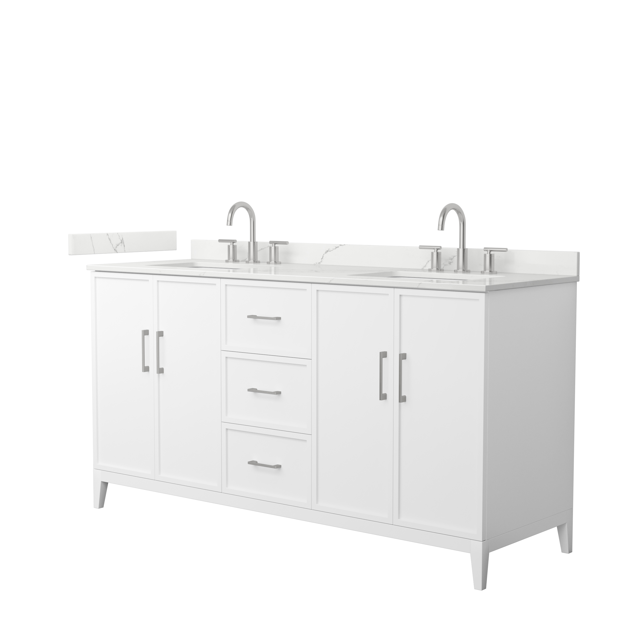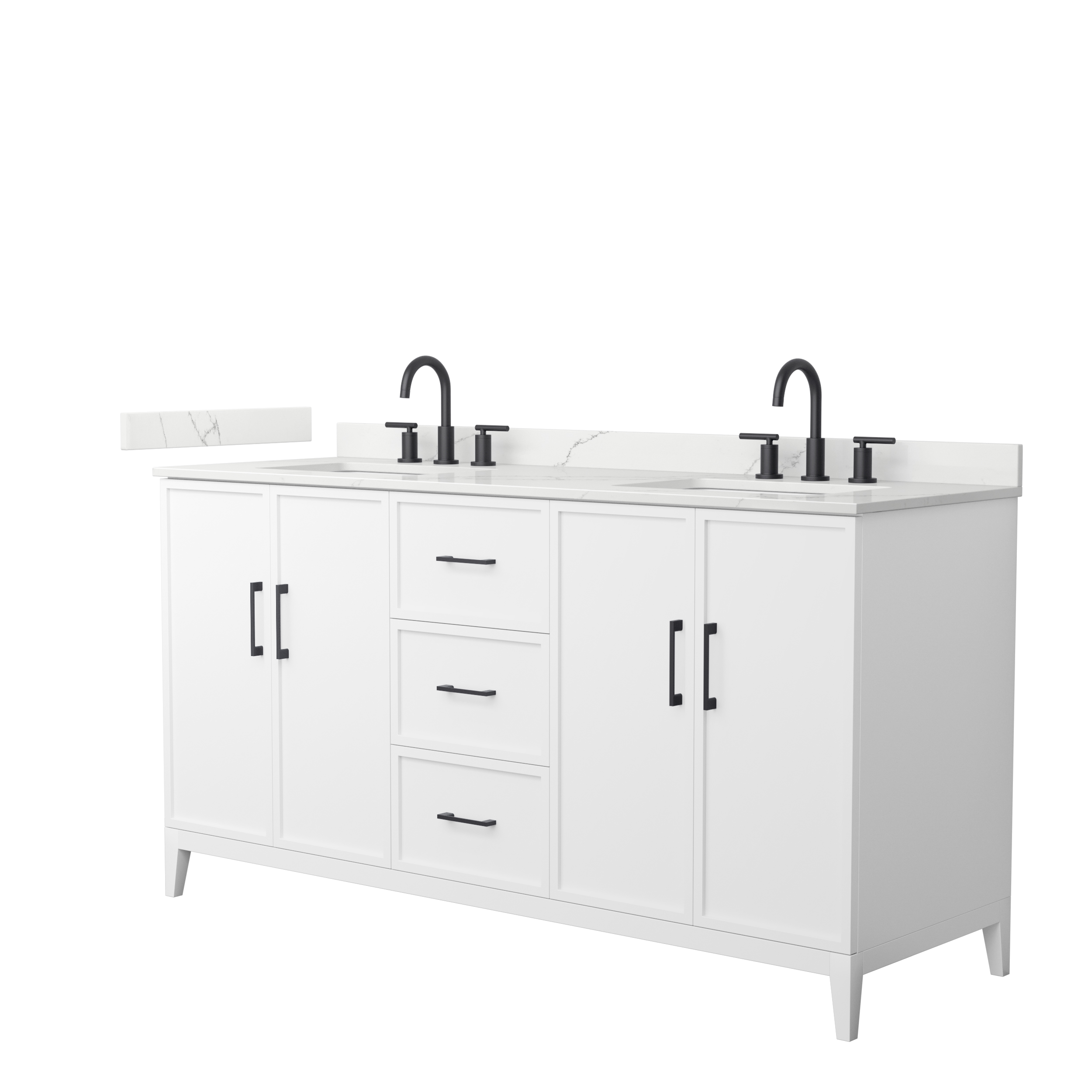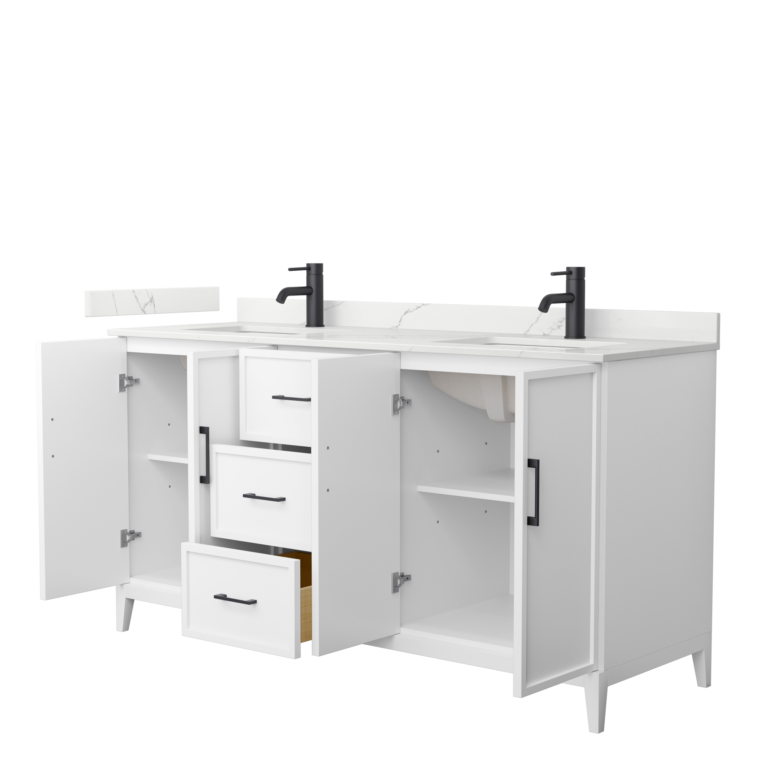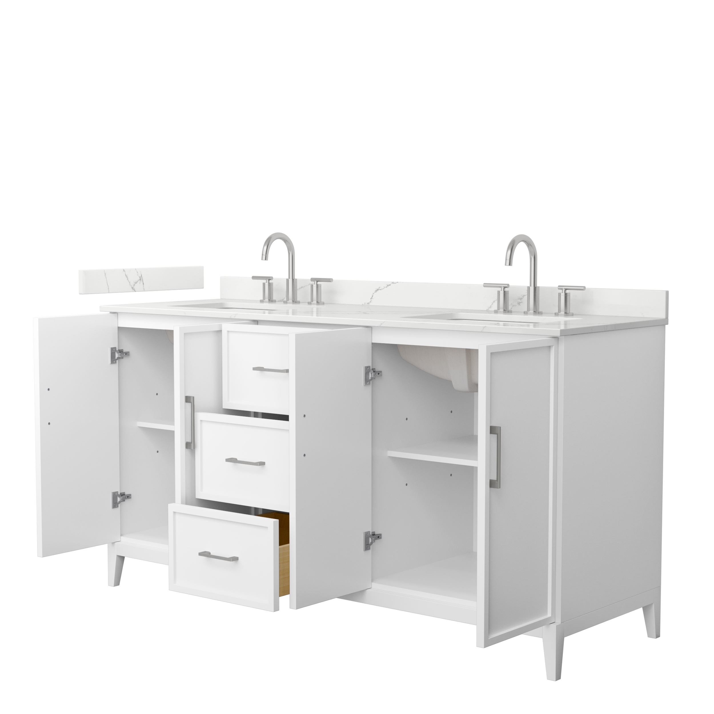 This transitional bathroom vanity exudes sleek sophistication with its clean lines and minimalist slim shaker design. The Elan vanity is crafted from high-quality materials like solid wood and plywood, with counters in multiple material options. Quartz and cultured stone counters include a back-and side-splash. Finished painted or in rift-cut white oak veneer, it seamlessly combines beauty and real-life usefulness. Its integrated, soft-closing drawers (featuring 3D adjustable glides) and doors offer ample storage space for toiletries, towels, and other essentials, keeping the space clutter-free. The sleek, angular hardware contributes to the overall aesthetic, creating a stylish focal point in the bathroom. Elevate your bathroom haven without compromising form or function.