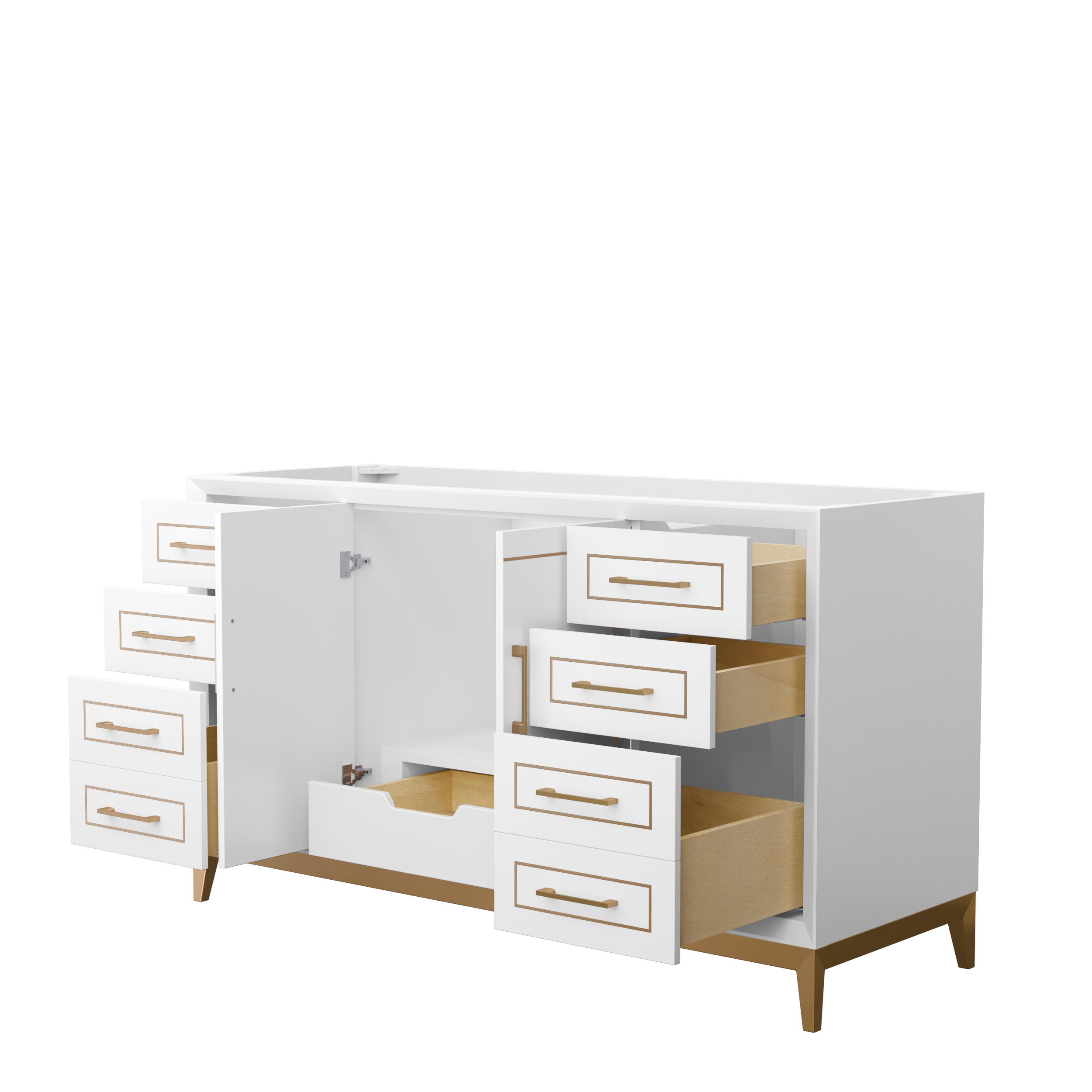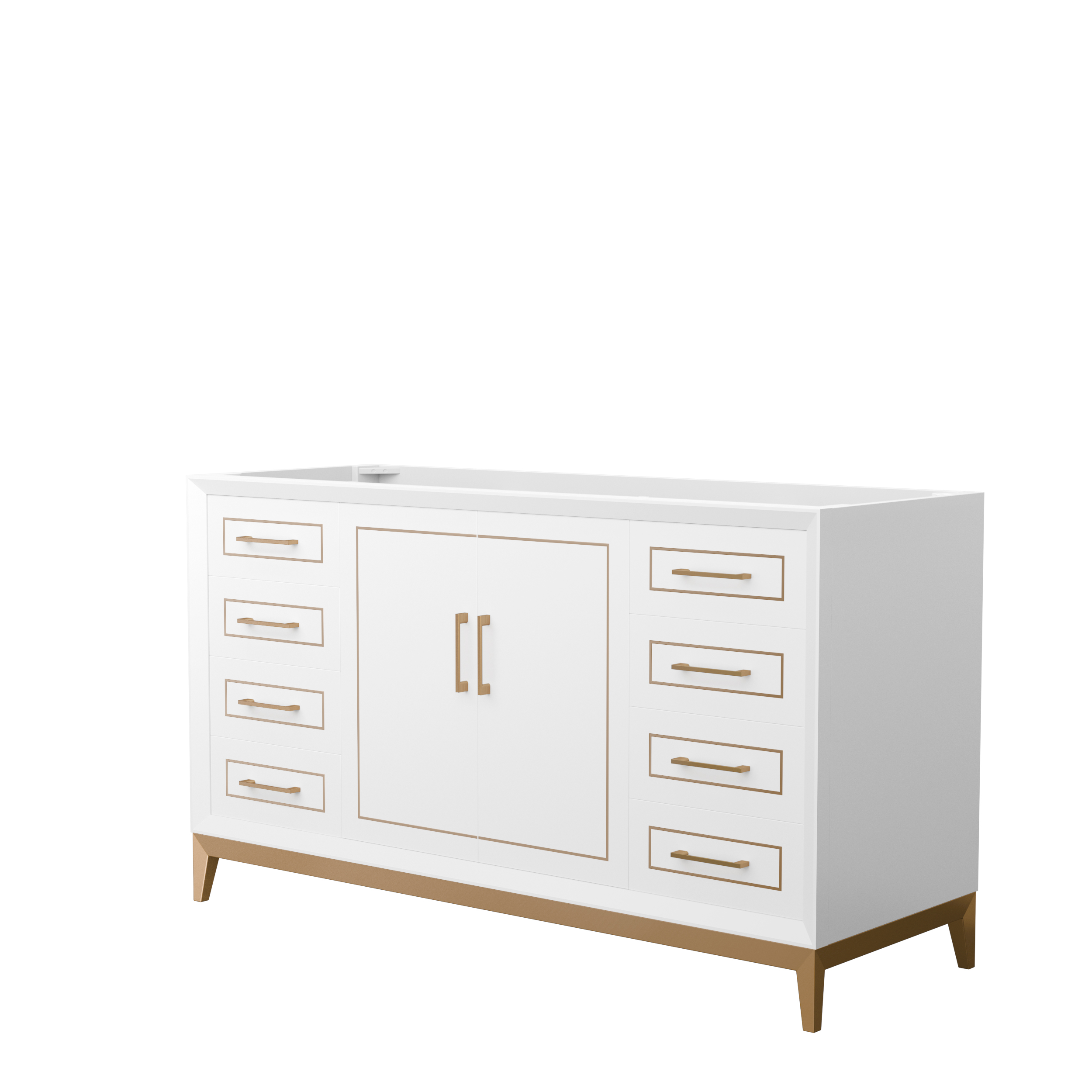 Classic luxurious elegance with clean and contemporary styling are the hallmarks of the beautiful Marlena vanity collection, perfect for most home decors. Offered in a range of sizes, cabinet colors and metal trim colors, you're sure to find the perfect fit. There's plenty of storage space, soft-close doors and drawers, internal drawers and the convenience of a 110v outlet and USB charger just inside the door. Offered with available Quartz, Carrara Marble, or Cultured Stone counters.