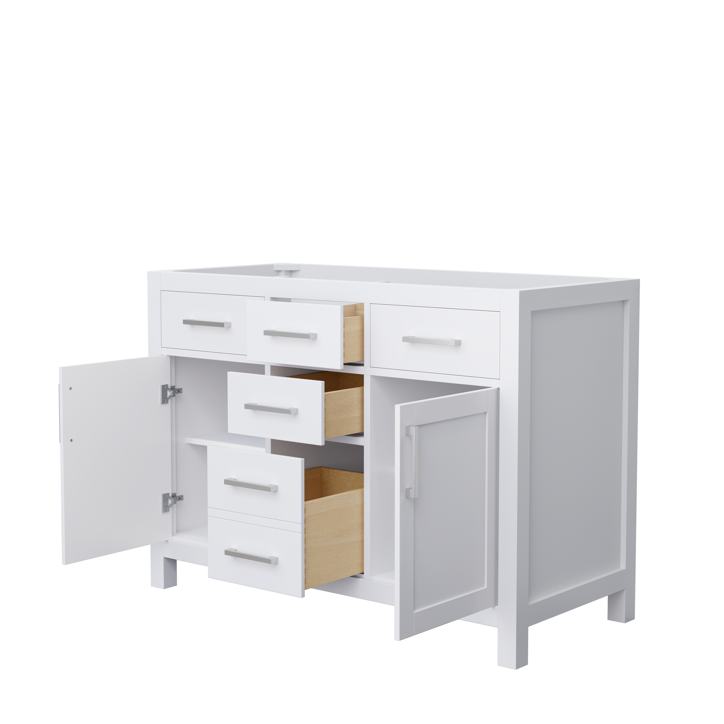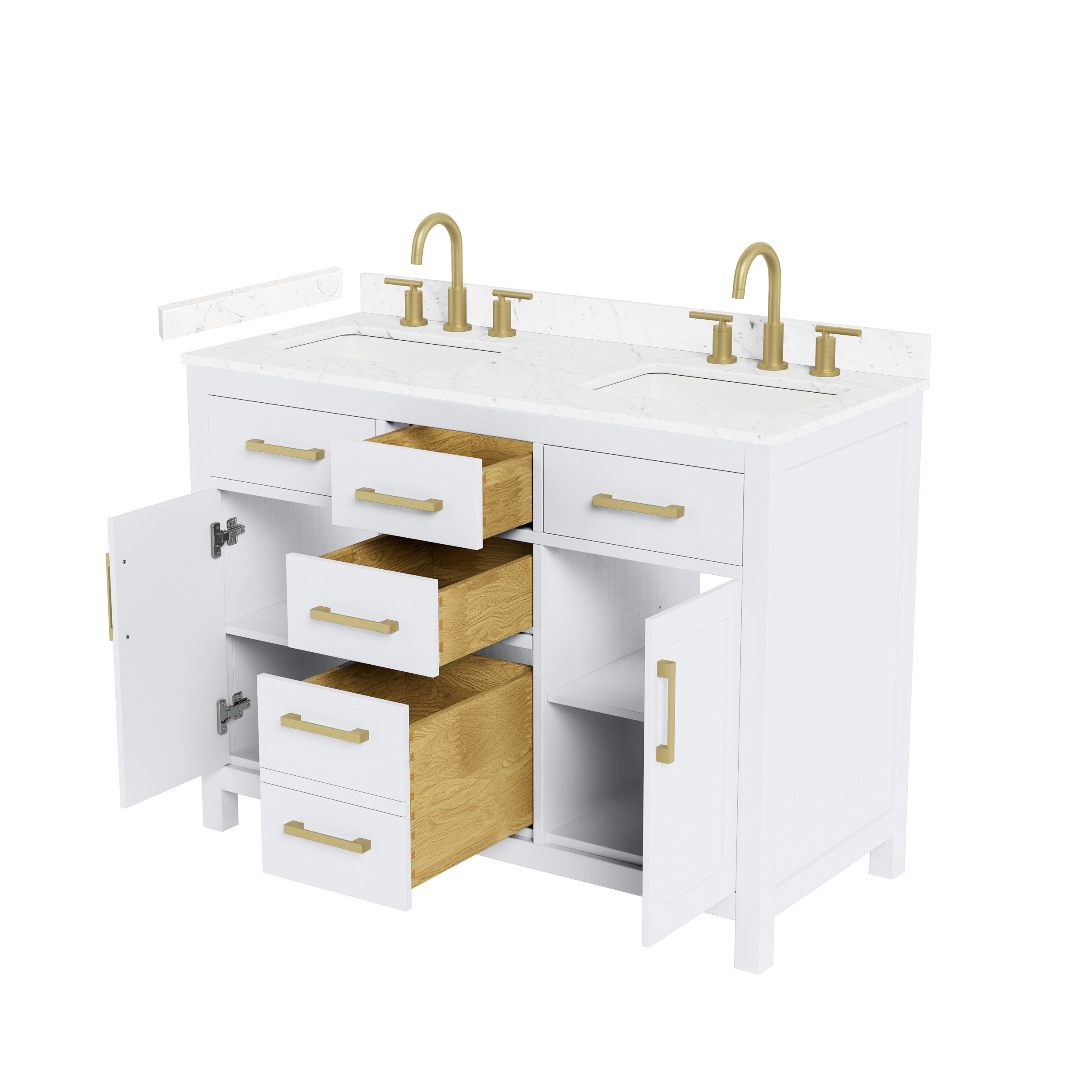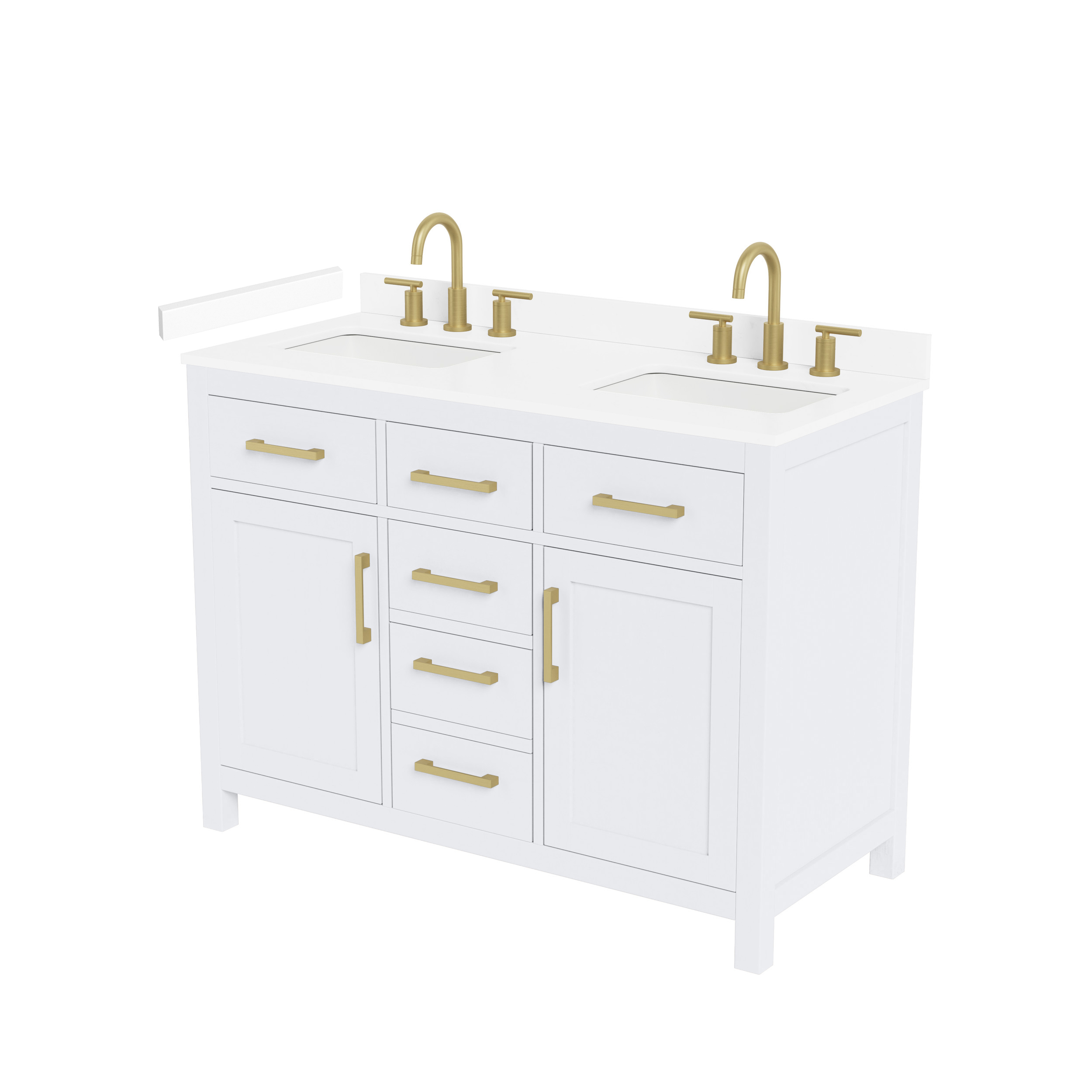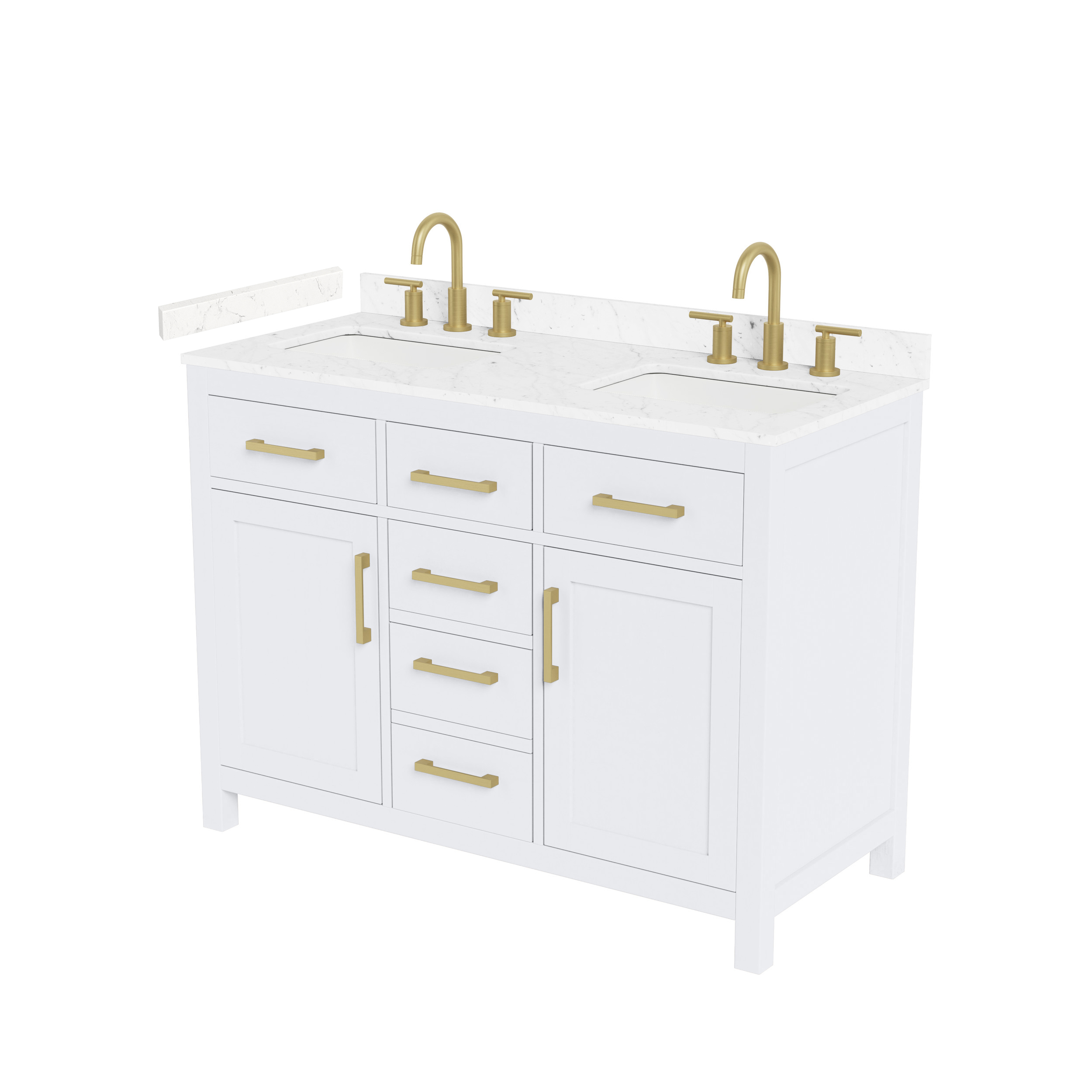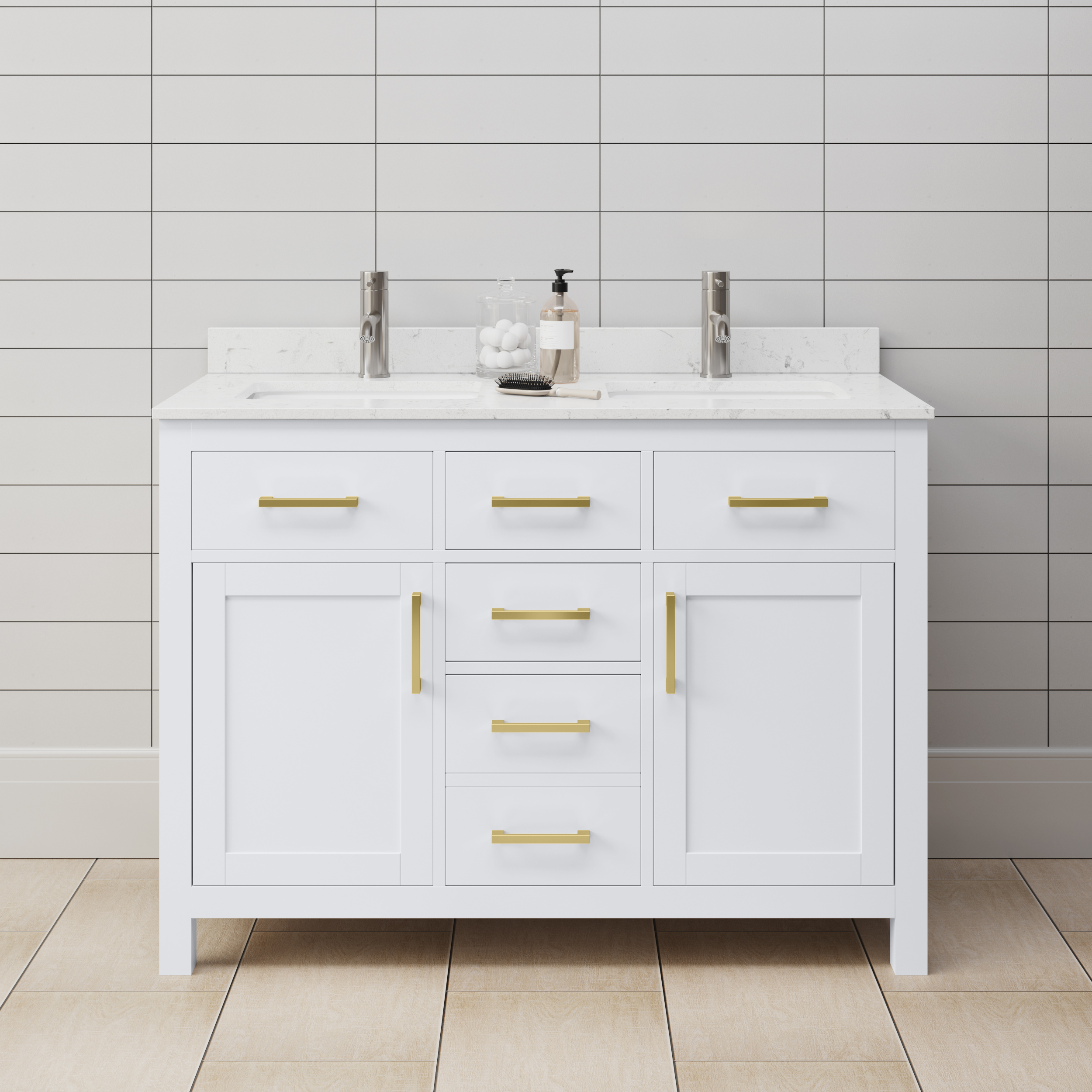 Fantastic value and classic design. The elegant Beckett vanity has it all, with quality touches like brushed nickel, brushed gold, or matte black accents, dove-tailed drawers, and soft-close doors and drawers. Ample storage and a double-depth lower drawer give you plenty of room for those bathroom necessities. Do your bathroom right, with the beautiful Beckett vanity series.