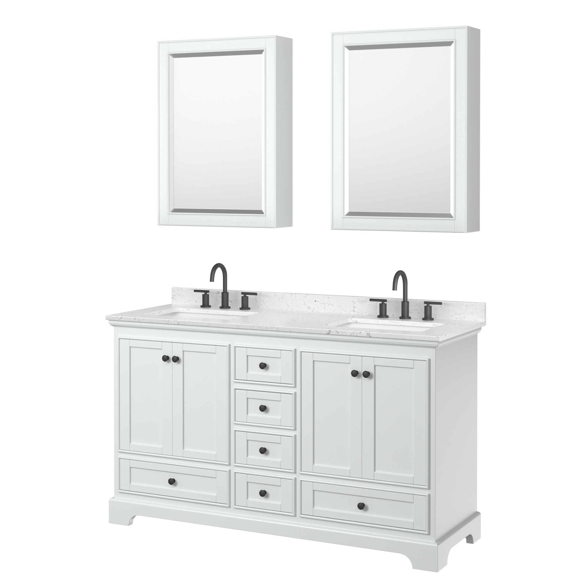 • White Carrara Marble Countertops are drilled for 8" Widespread 3-hole faucet mounts