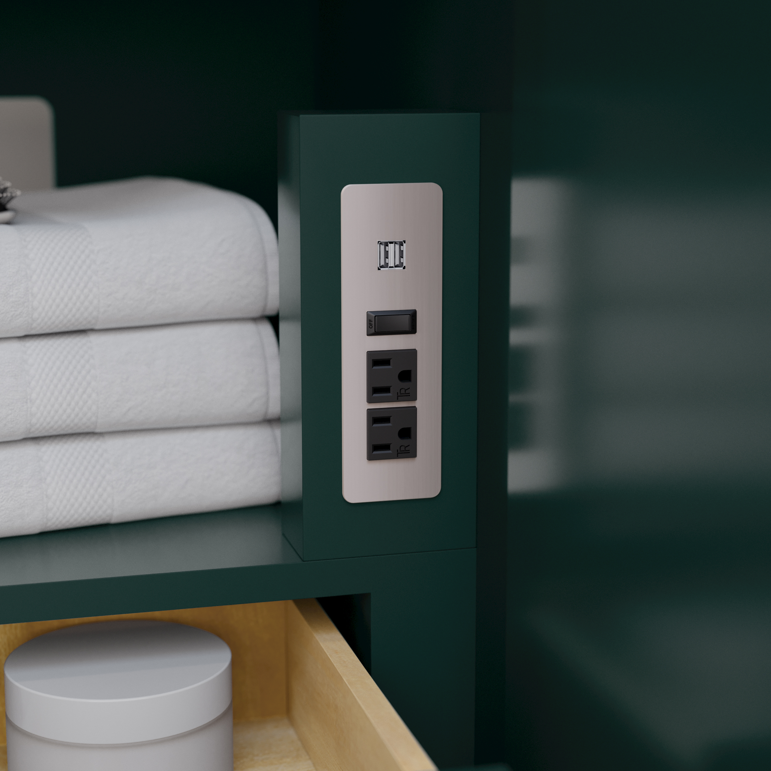 • Included integrated electrical outlet also comes with convenient USB Ports