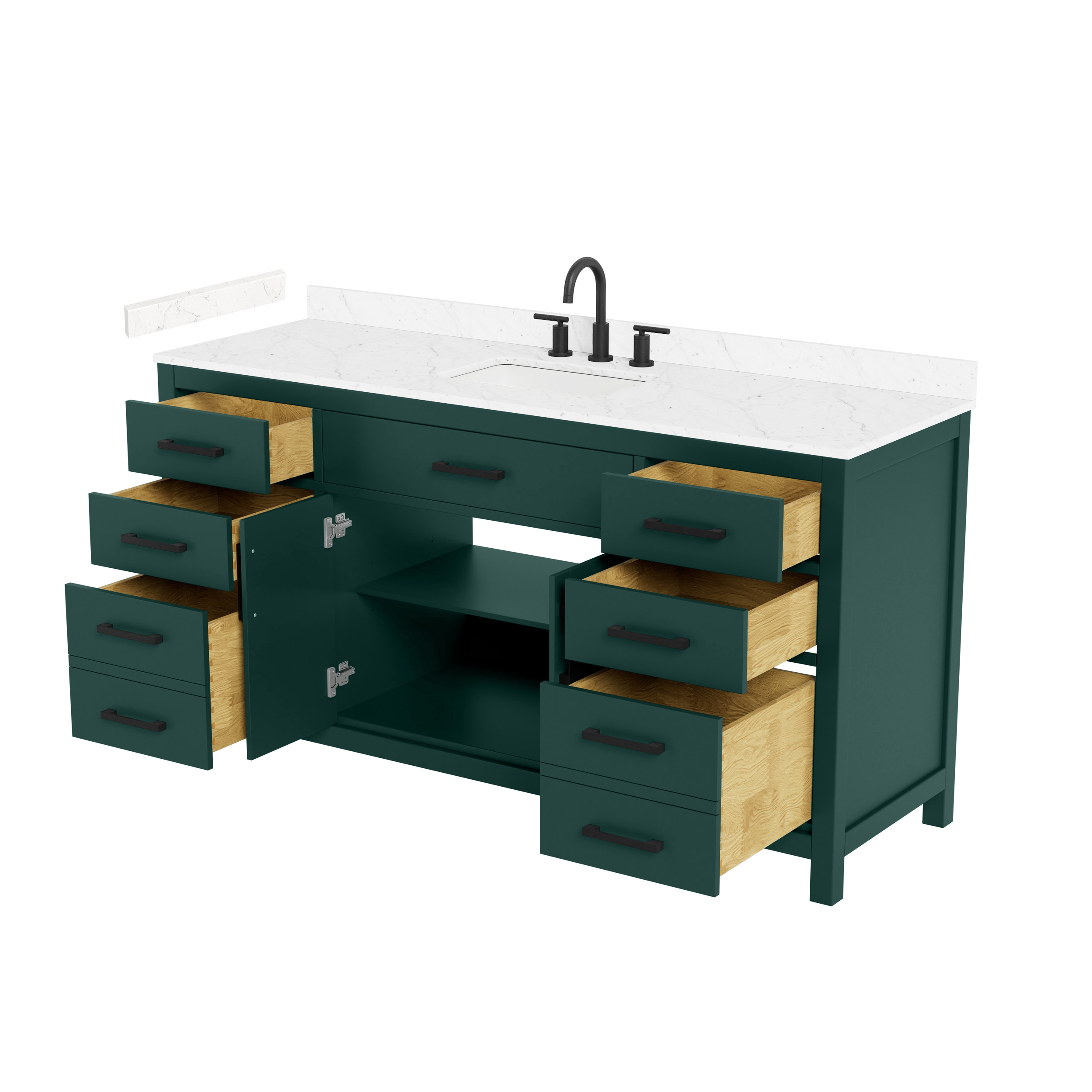 Fantastic value and classic design. The elegant Beckett vanity has it all, with quality touches like brushed nickel, brushed gold, or matte black accents, dove-tailed drawers, and soft-close doors and drawers. Ample storage and a double-depth lower drawer give you plenty of room for those bathroom necessities. Do your bathroom right, with the beautiful Beckett vanity series.